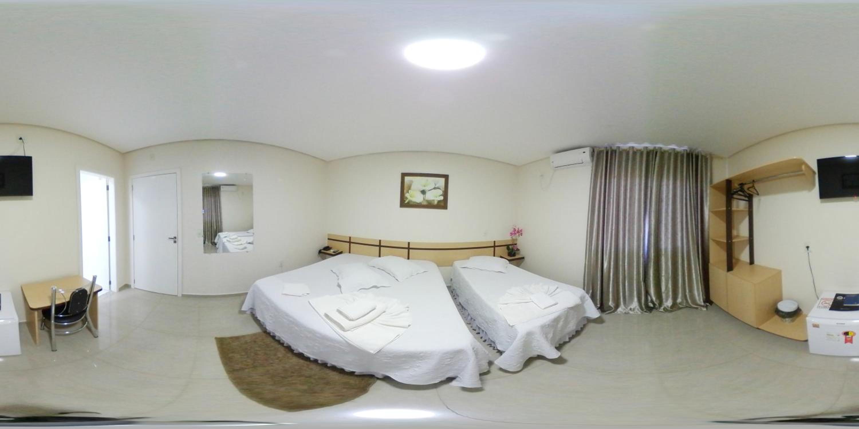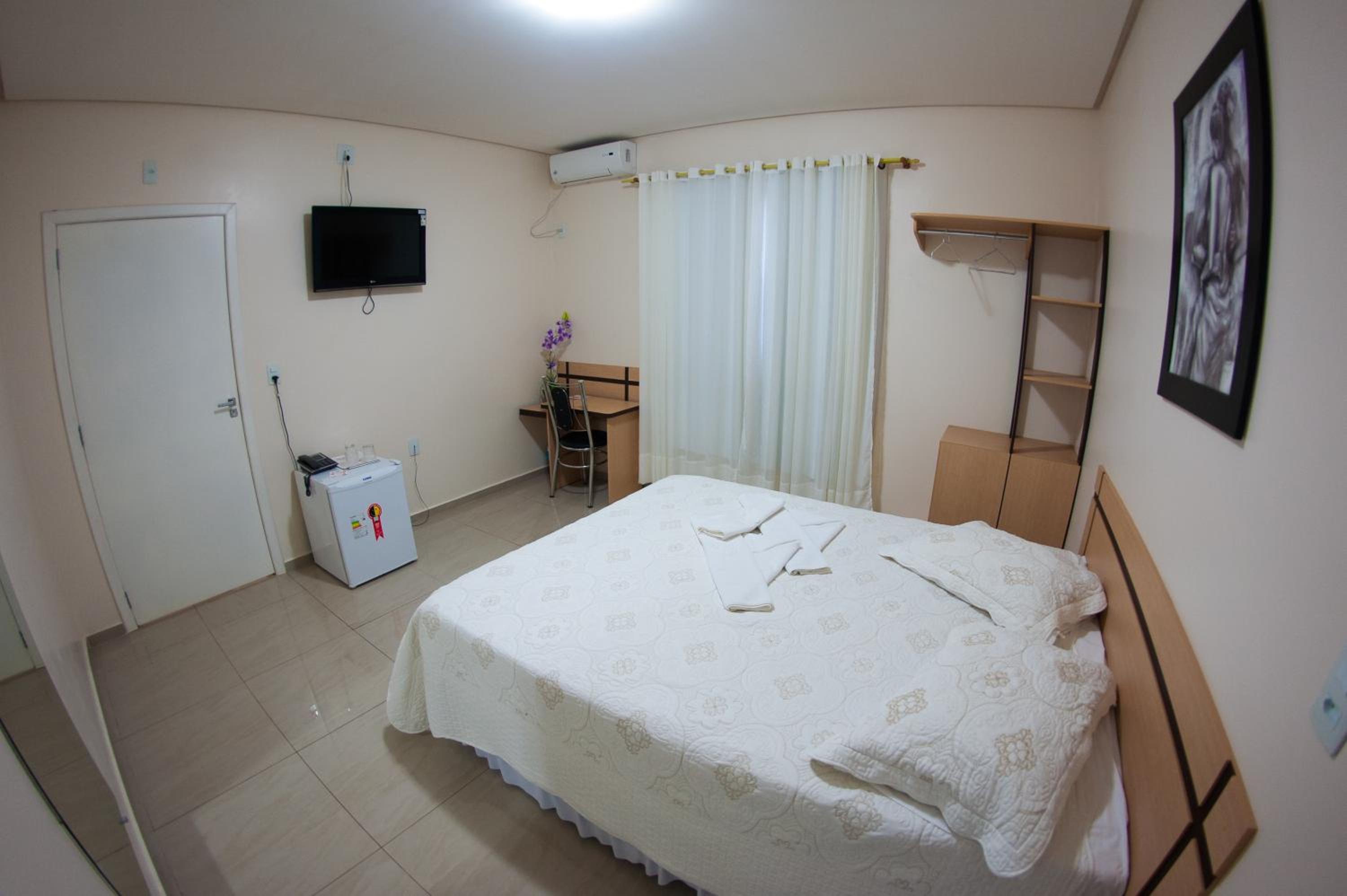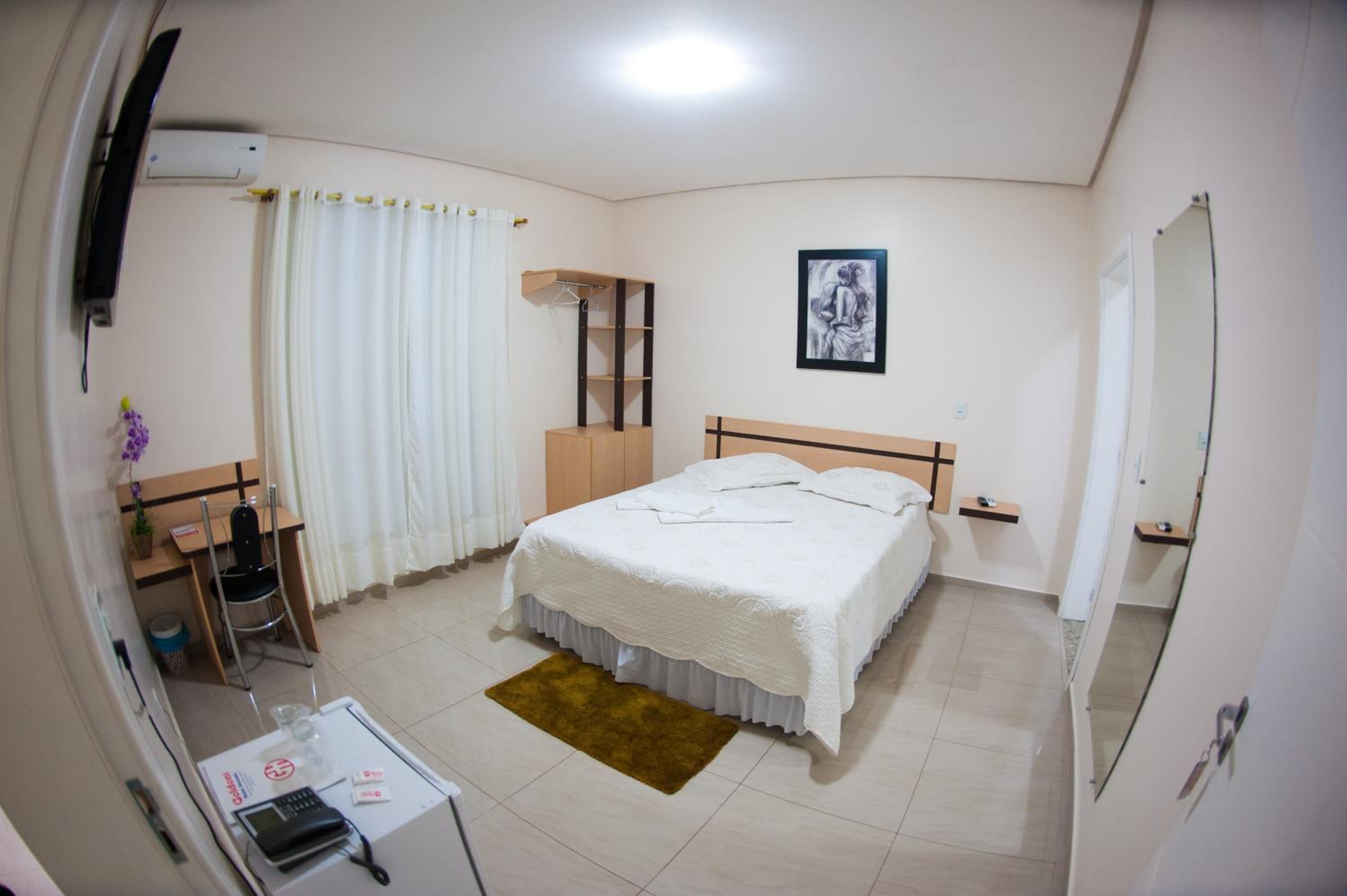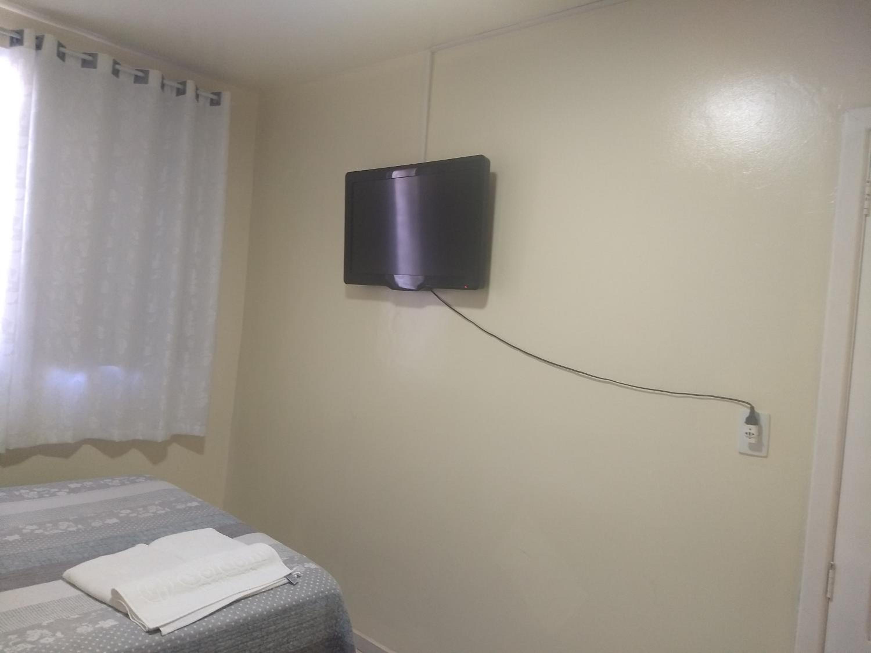 Poucas tomadas disponíveis no quarto.