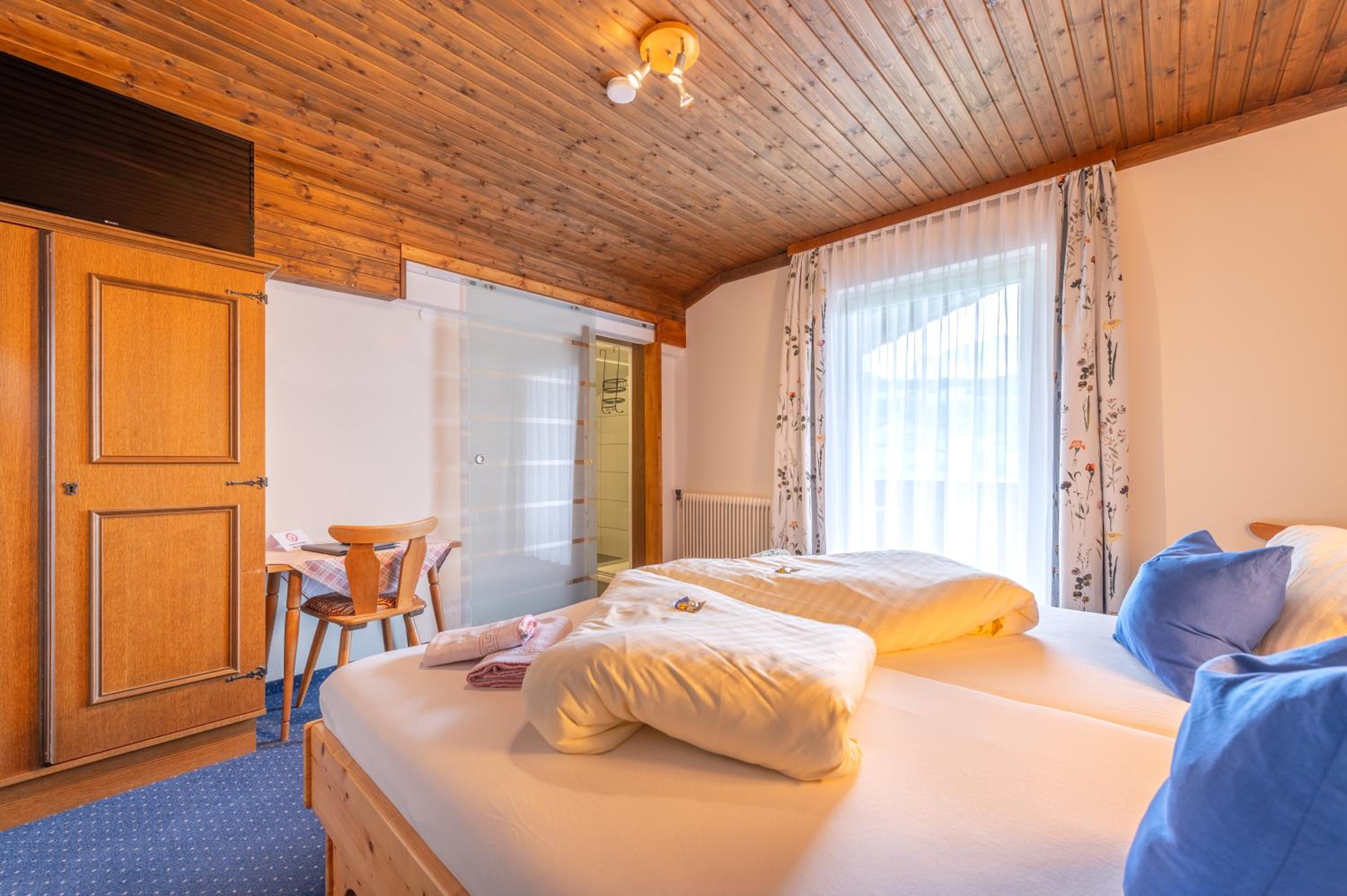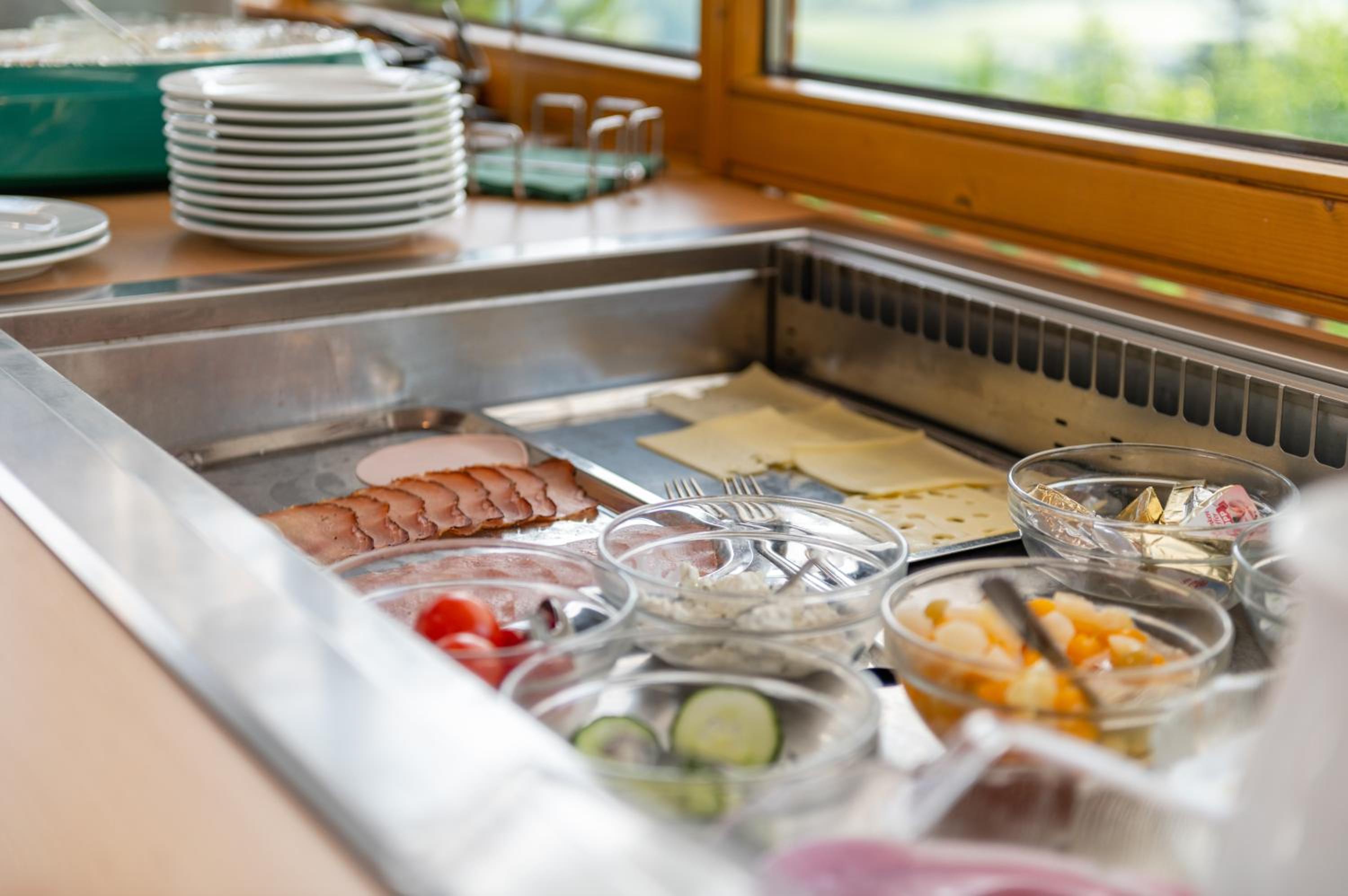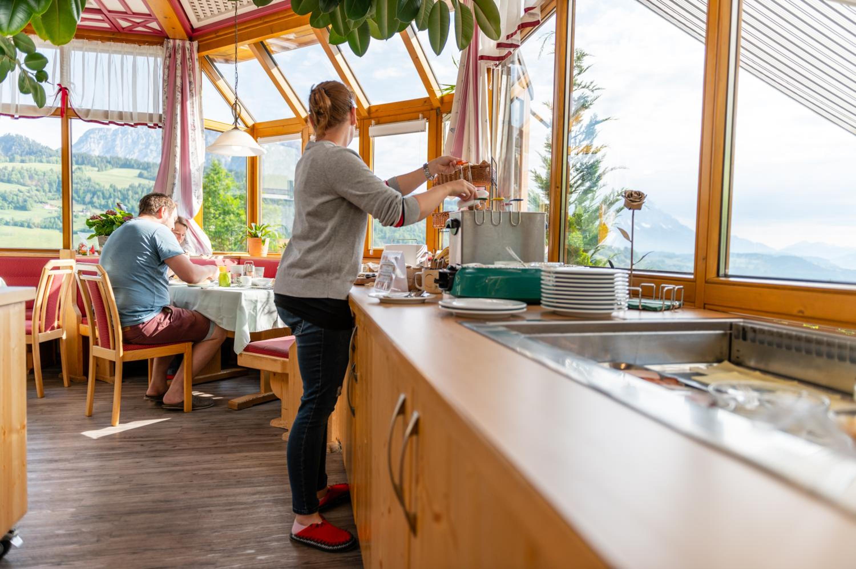 Prachtig uitzicht vanuit het restaurant; sauna met bv ook massagematras; lekker eten rekening houdend met mijn lactose intolerantie; vriendelijk personeel; ruime kamer met uitzicht; uitstekende ligging op rand van Pruggern op weg naar skigebied.