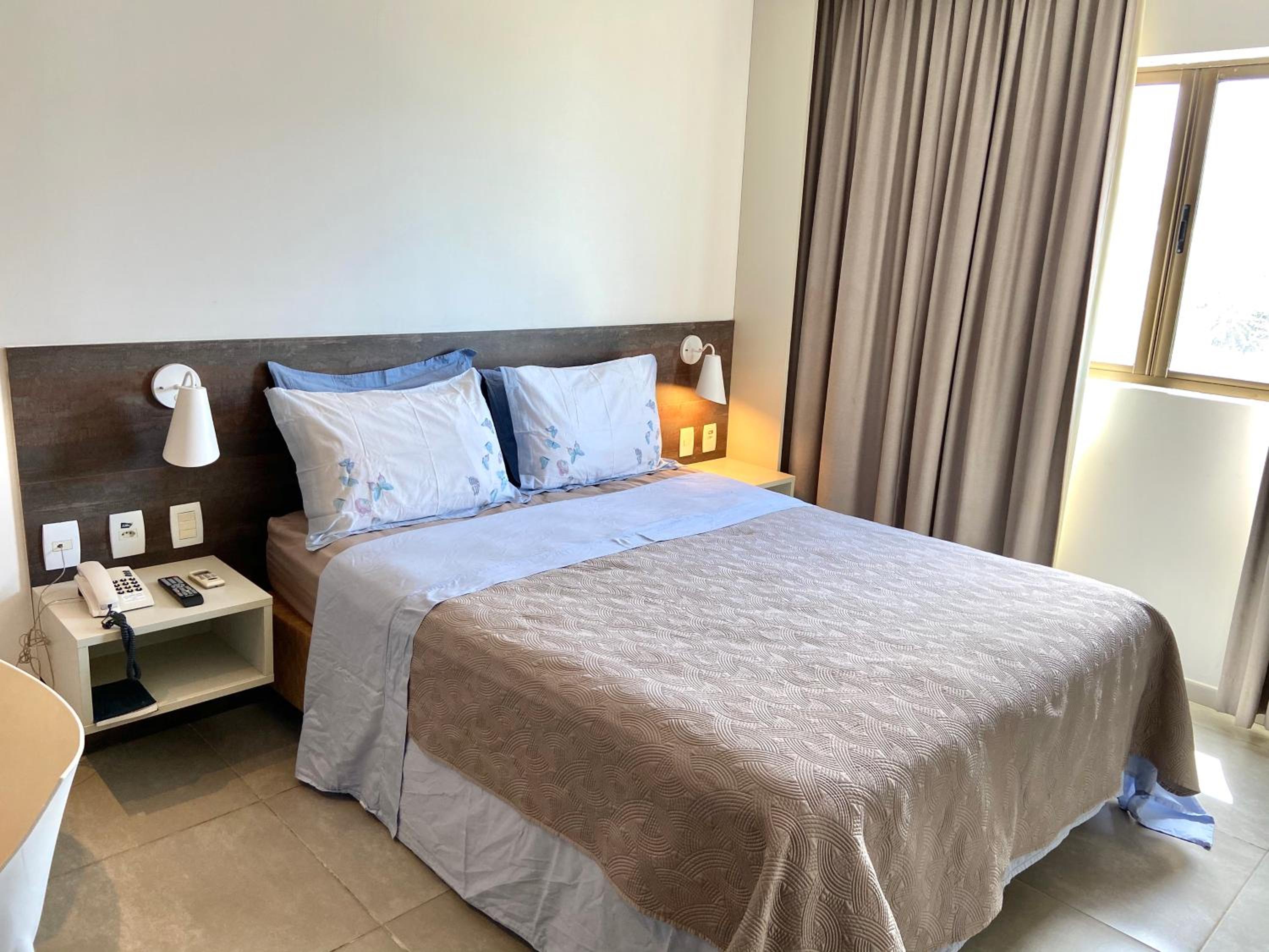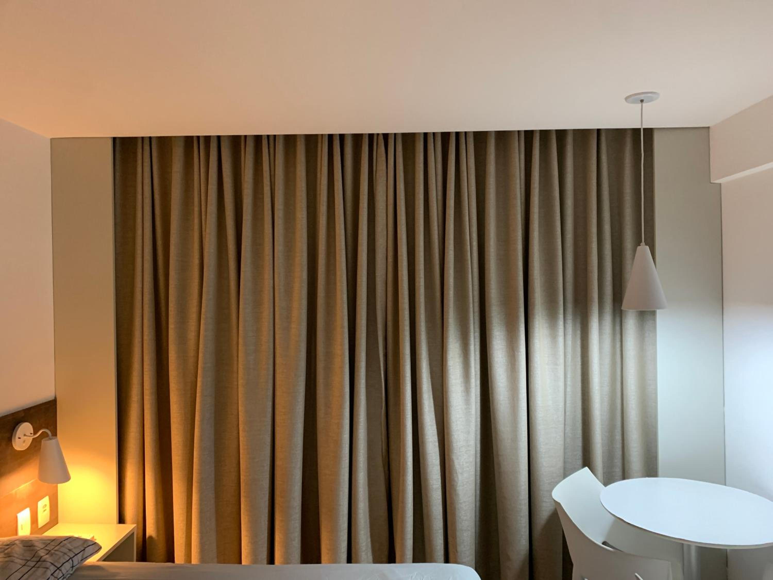 Além disso, o enxoval é limitado, com apenas dois travesseiros disponíveis. A cortina não é blackout, o que permite a entrada intensa de luz logo ao amanhecer.