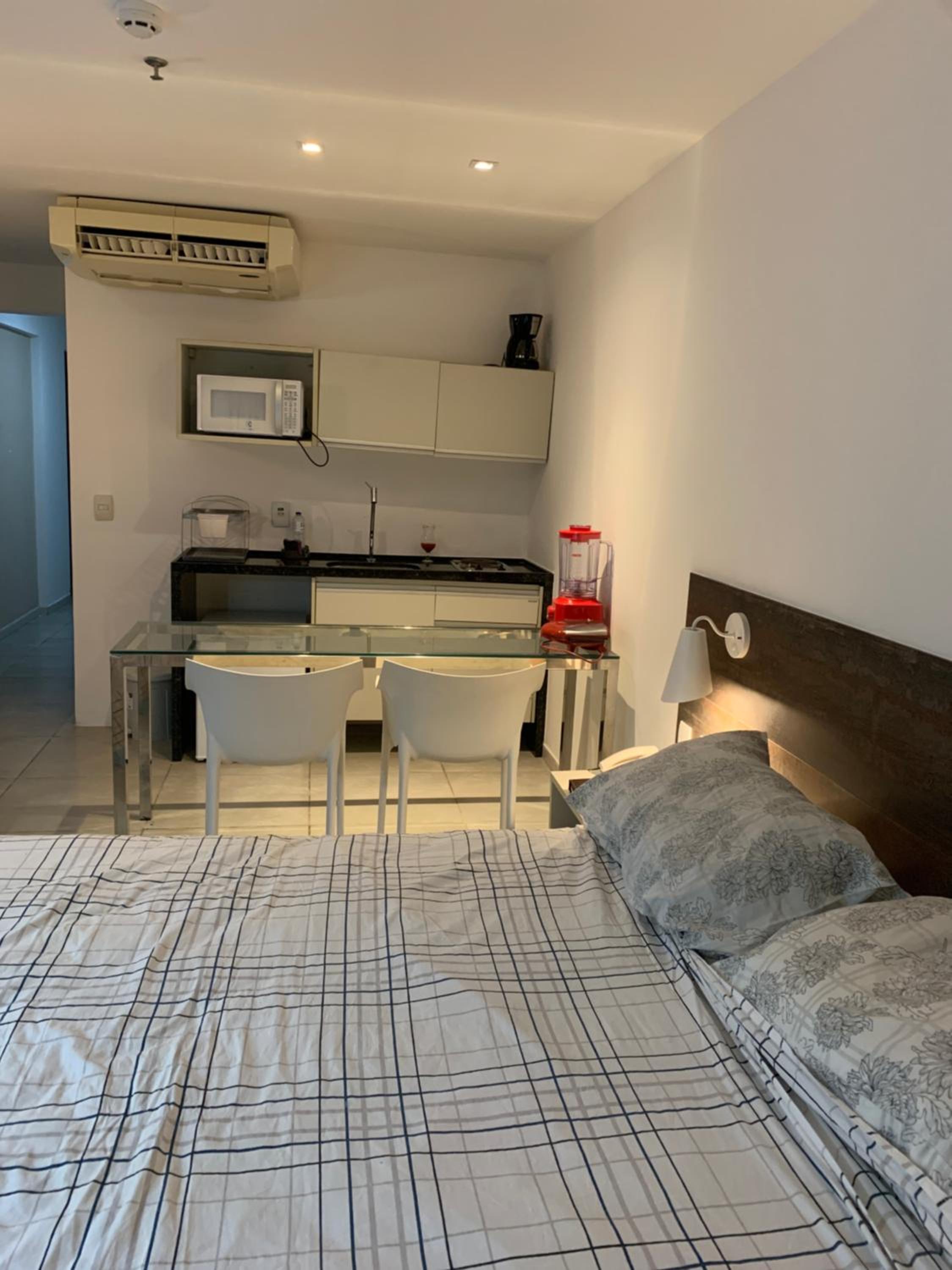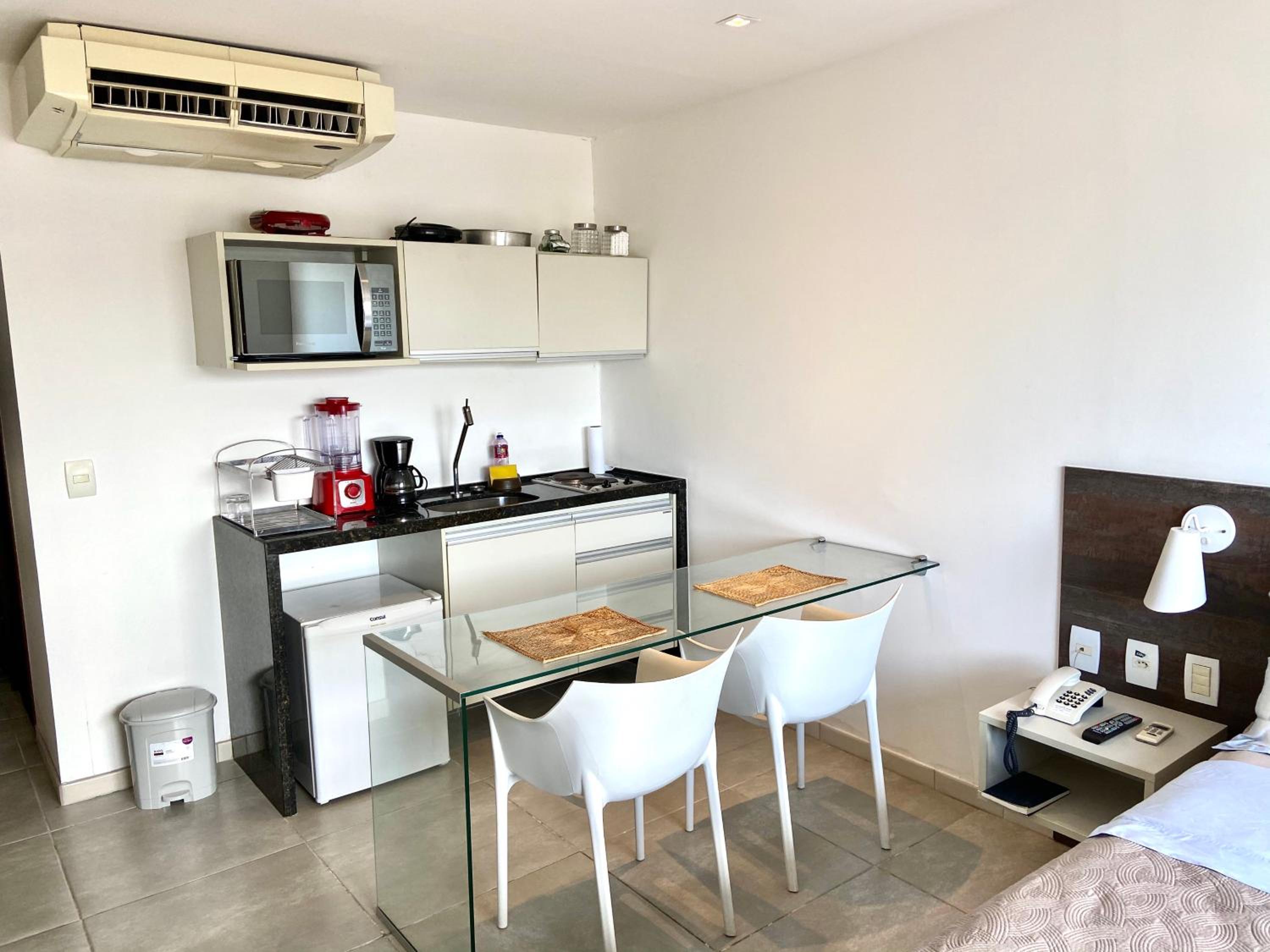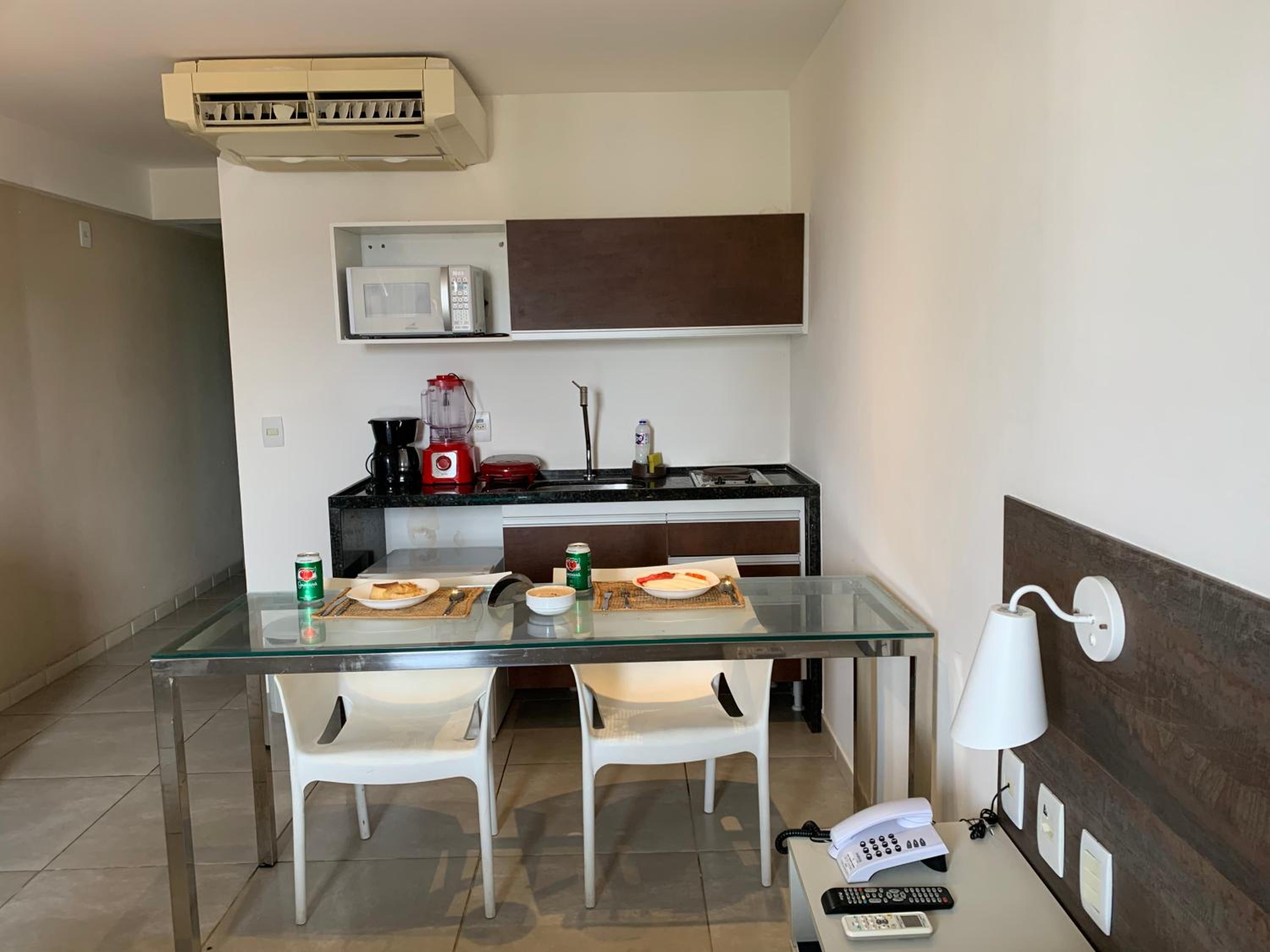 A estrutura do apartamento deixa a desejar: acendedores de fogão antigos, panelas desgastadas e já apresentando sinais de ferrugem. O ar-condicionado também é antigo e bastante barulhento, comprometendo o conforto da estadia.