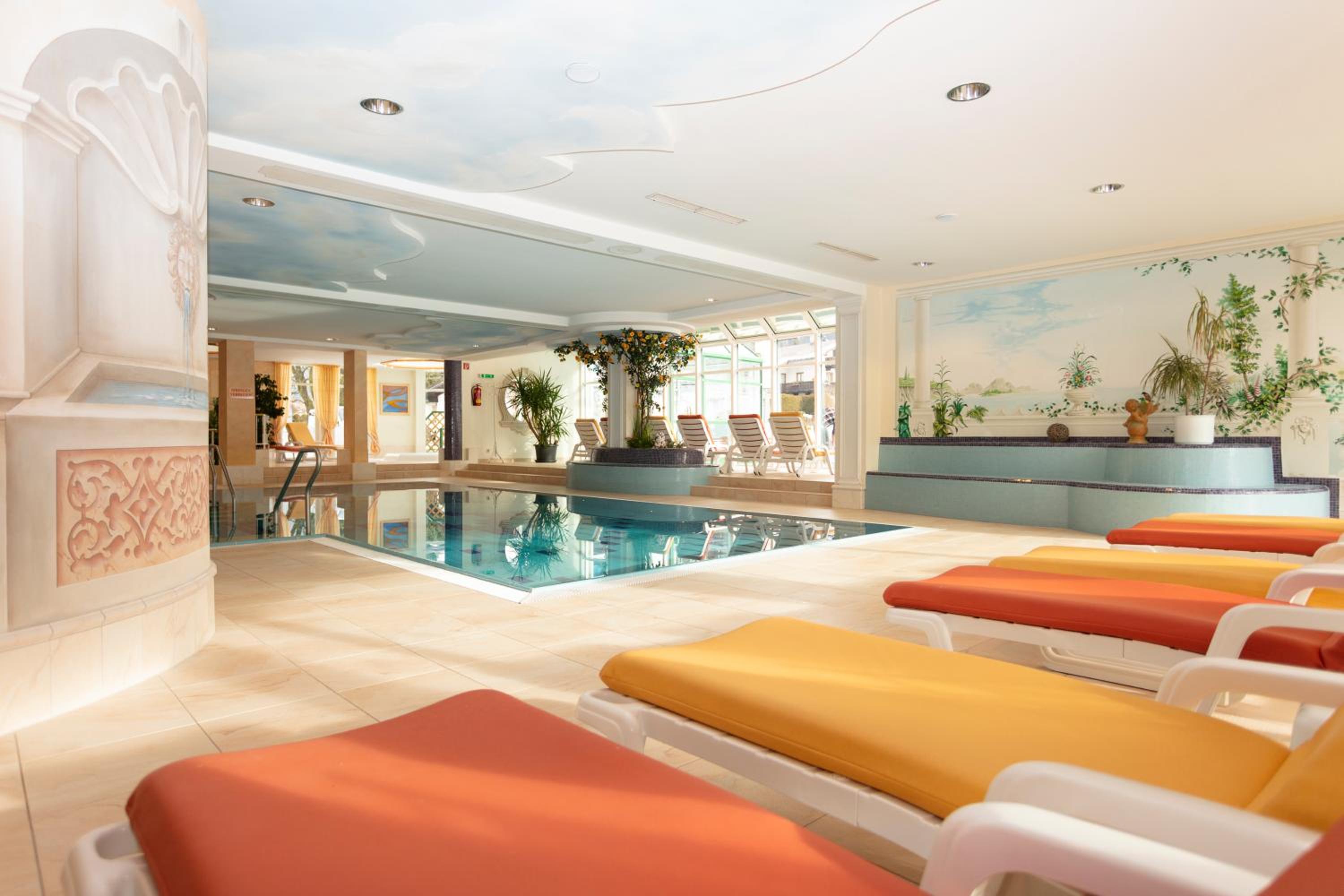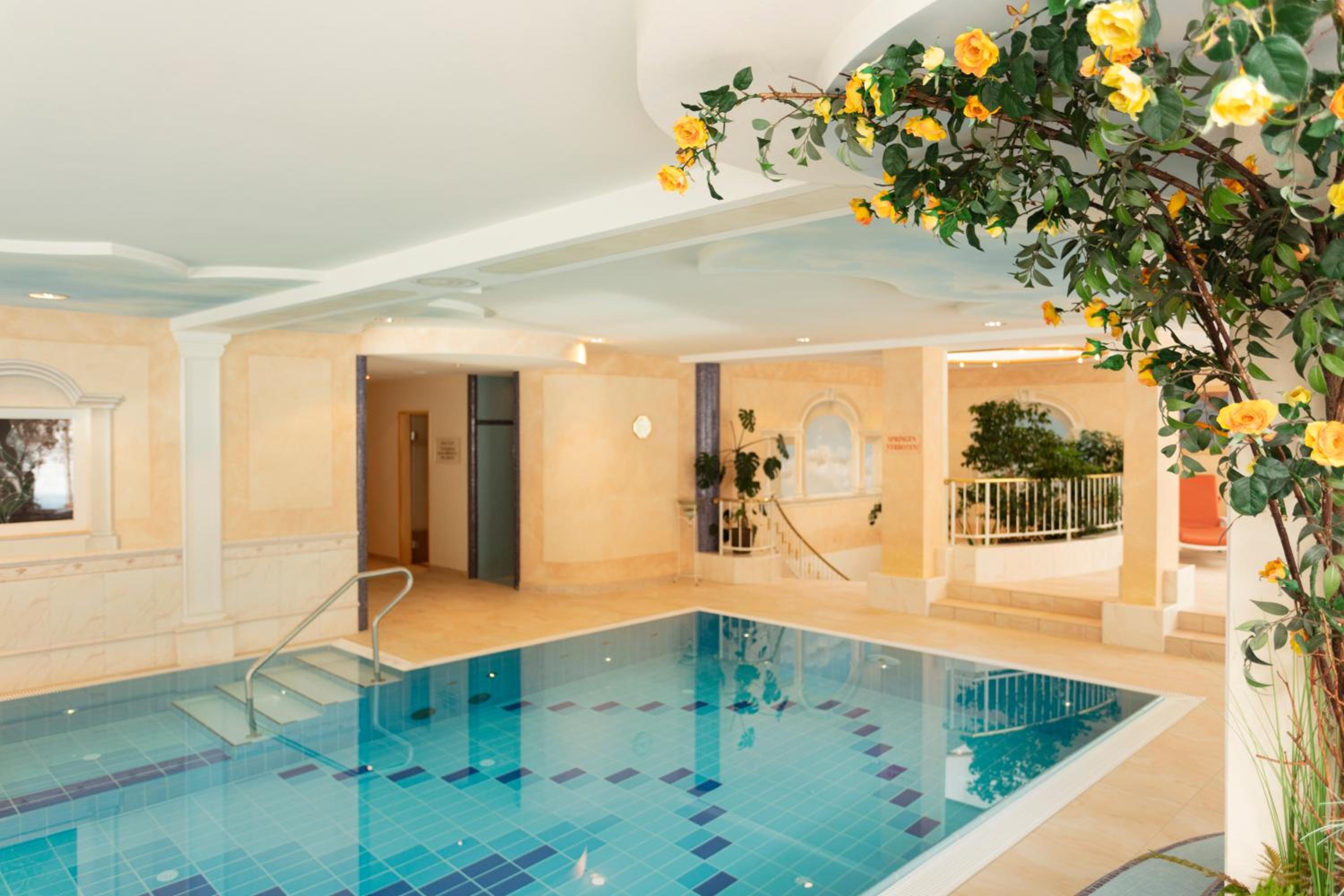 Indulge in relaxation at Unser Berghof's wellness area, featuring a heated outdoor and indoor pool, sauna, steam bath, hot tub, and sun bed. Treat yourself to rejuvenating massage services and cosmetic treatments for the ultimate pampering experience.