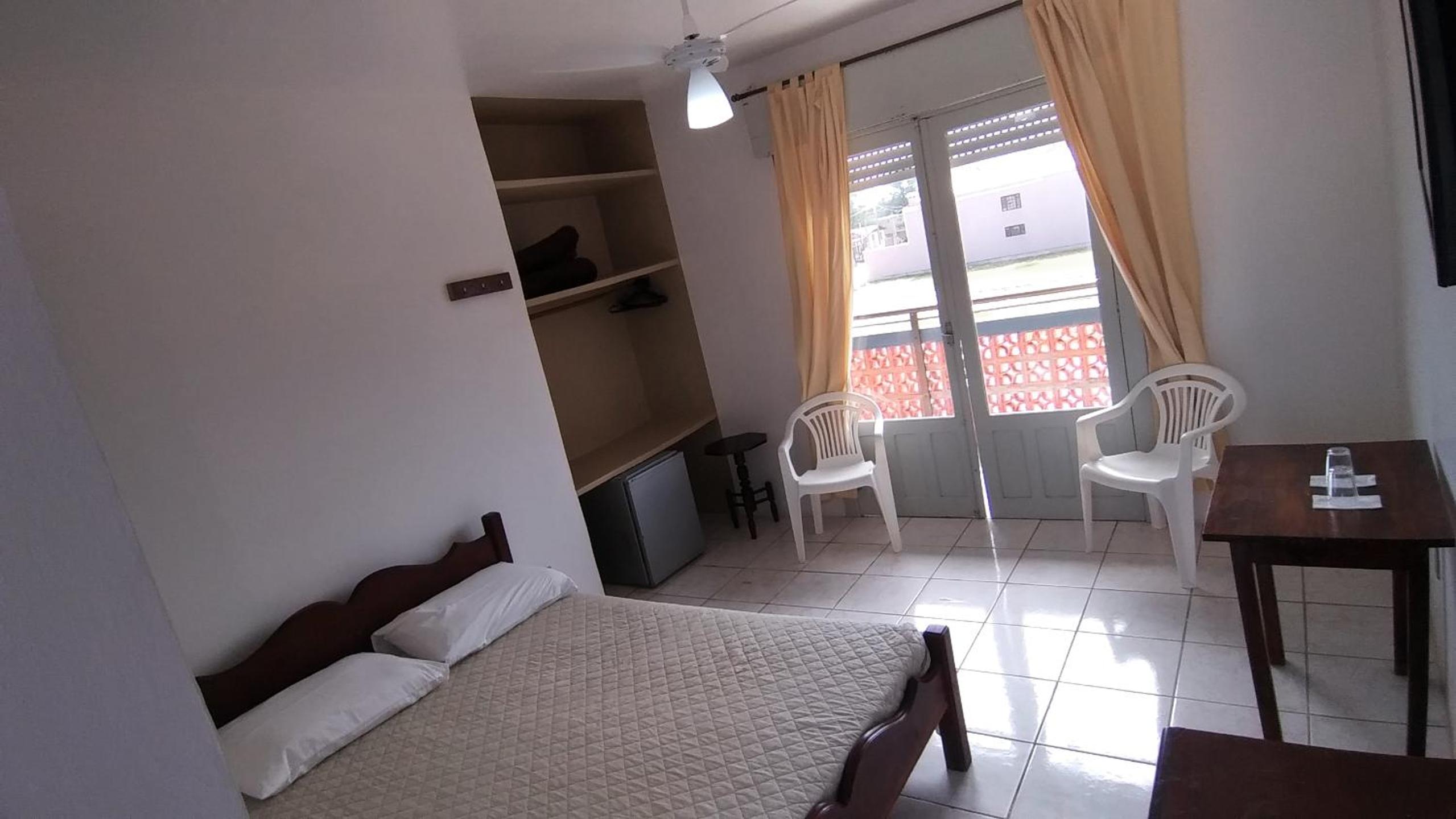 Os colchões poderiam melhorar. O banheiro tinha um acabamento precisando de atenção e o ventilador de teto era barulhento.