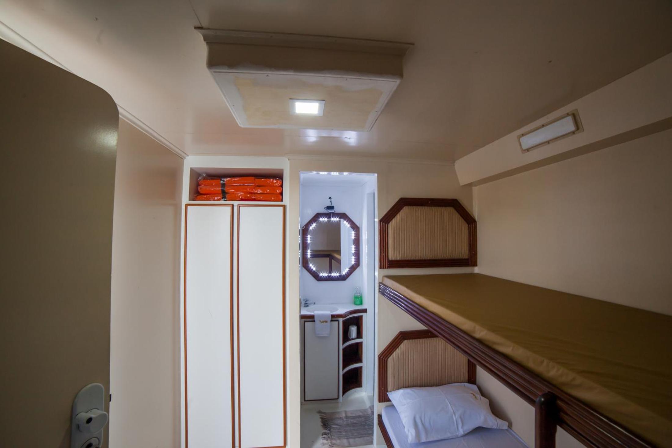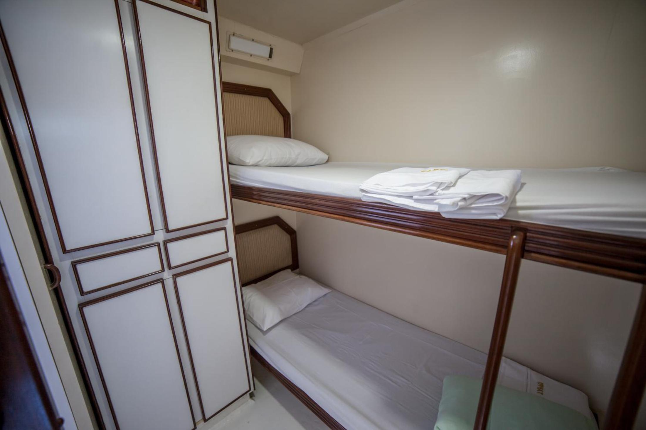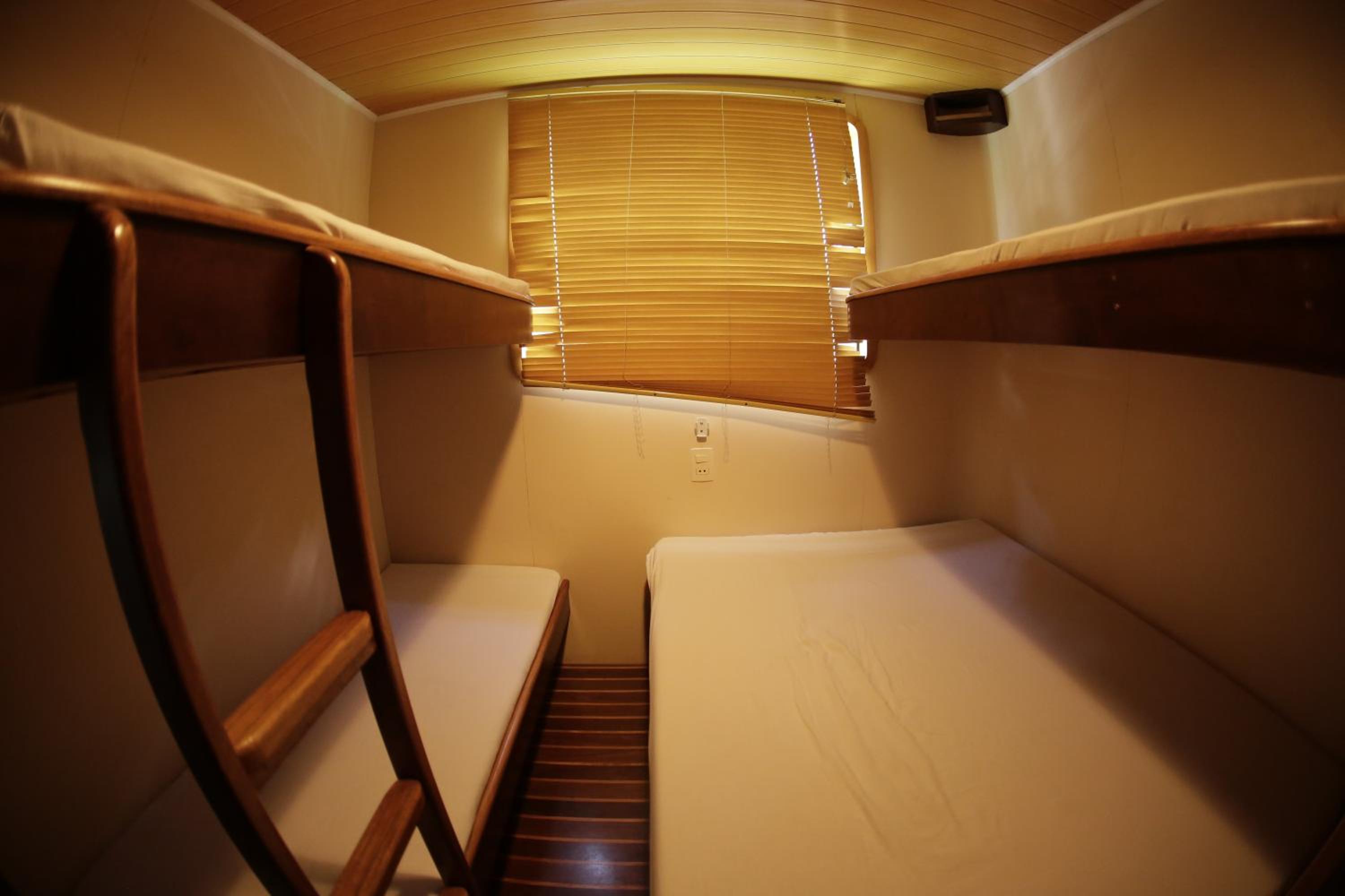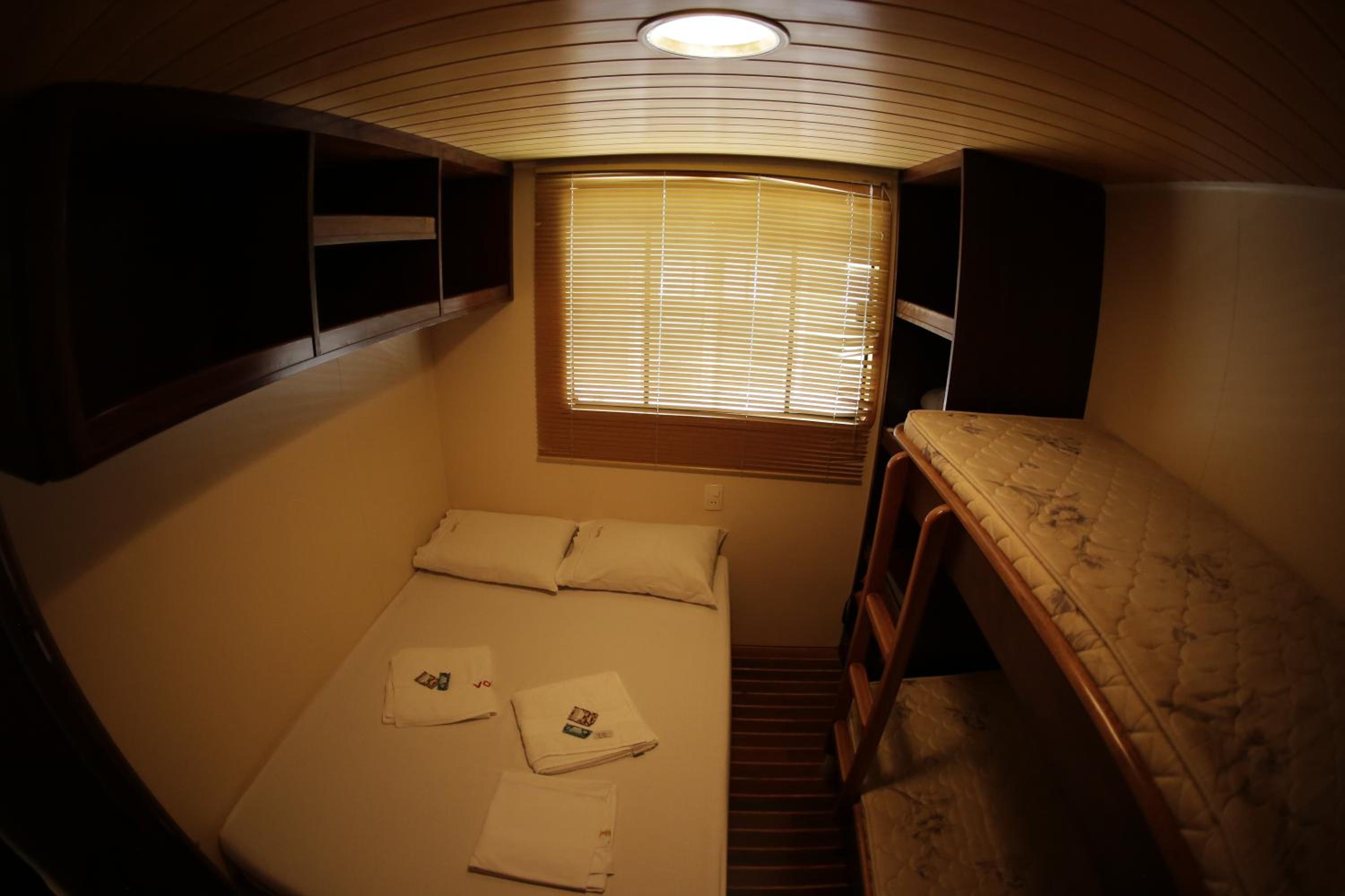 A cabine bem apertada e com beliche sendo bem complicado subir na cama de cima quem já tem mais idade.
