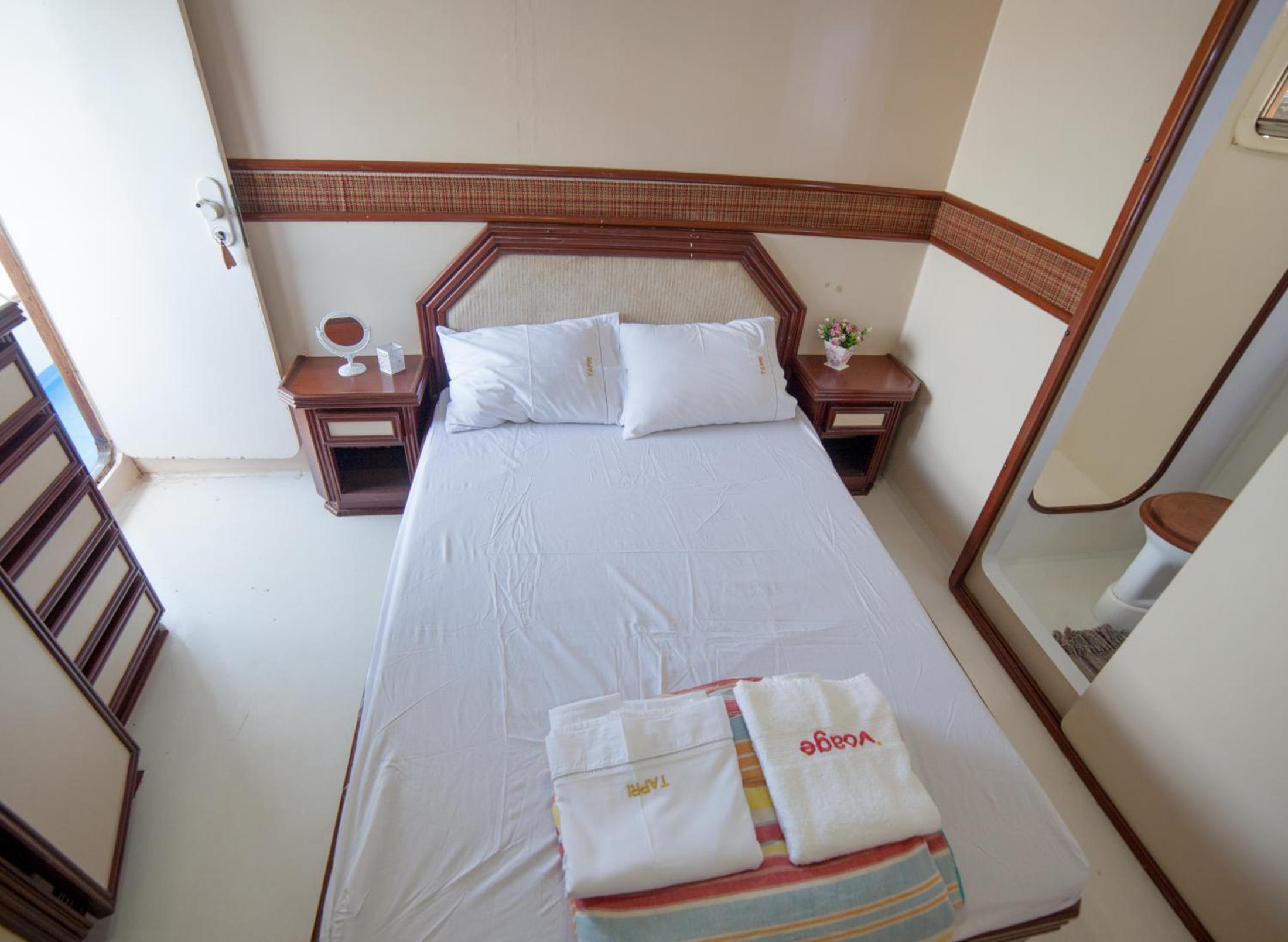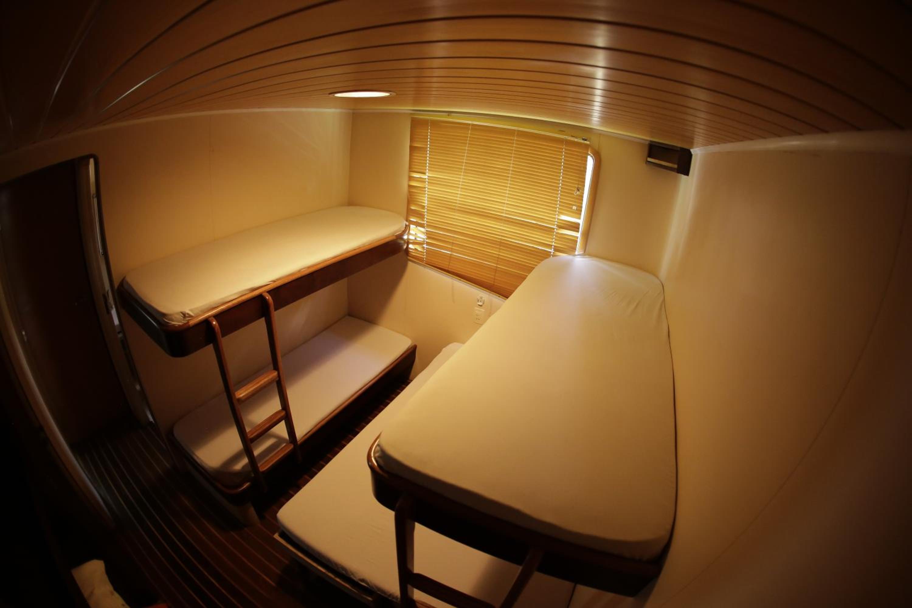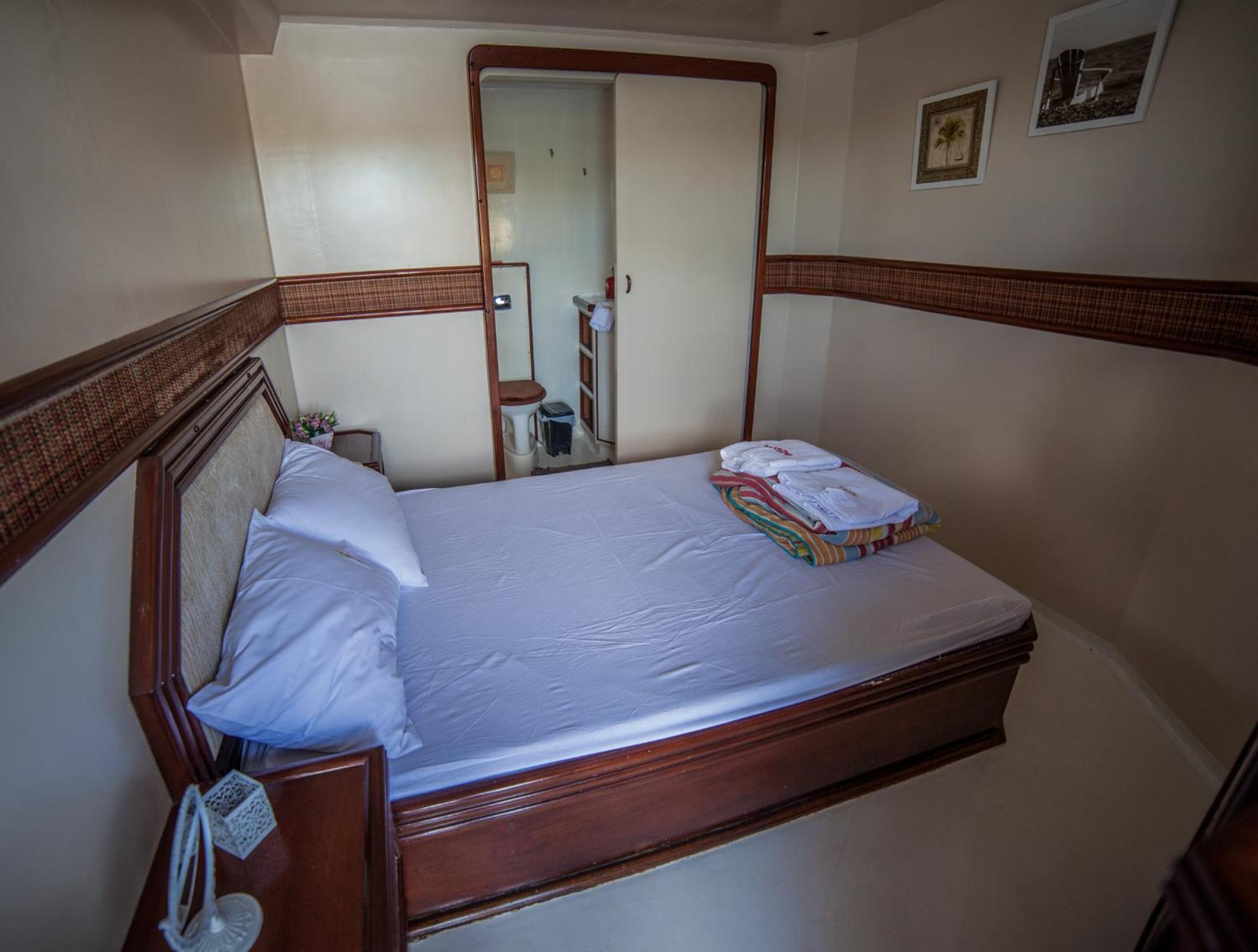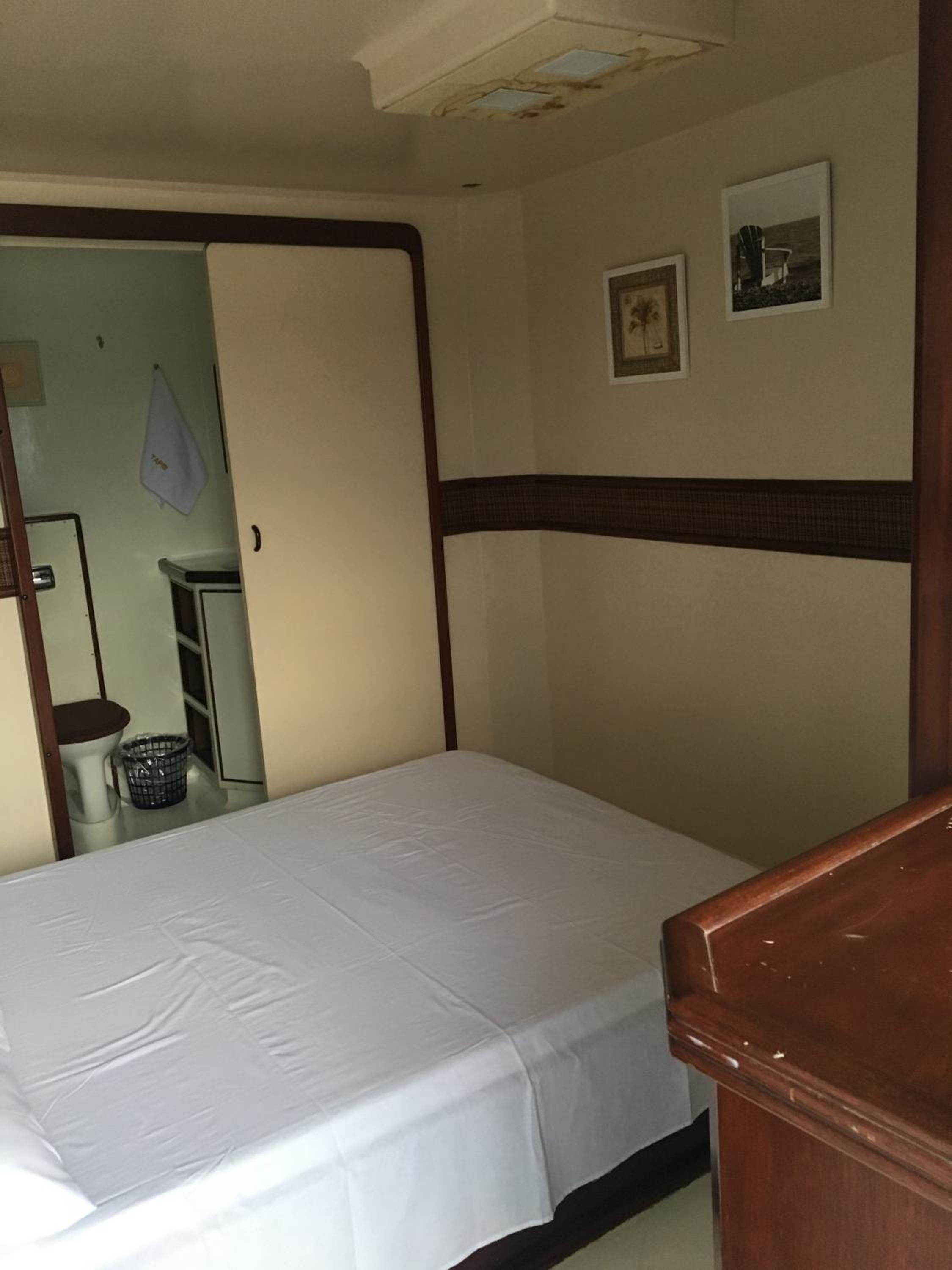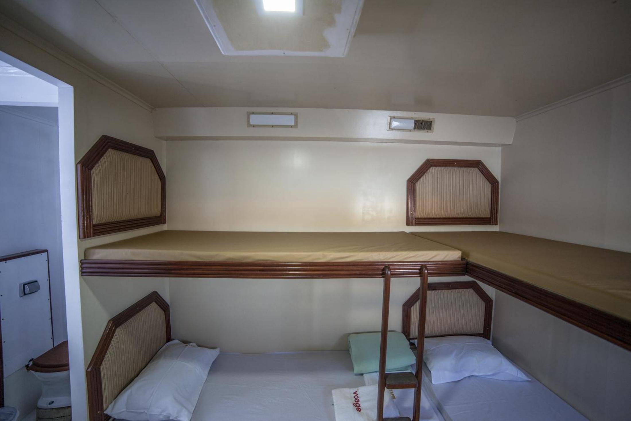 A cabine bem apertada e com beliche sendo bem complicado subir na cama de cima quem já tem mais idade.