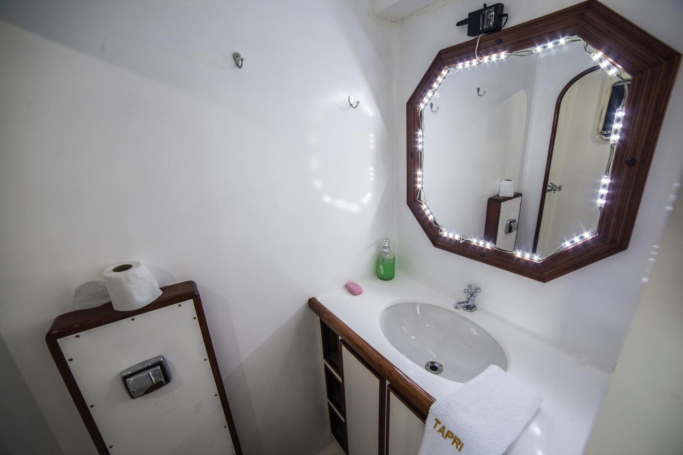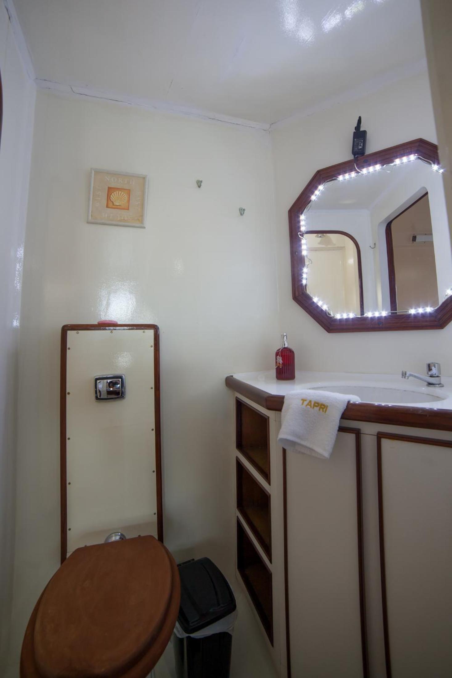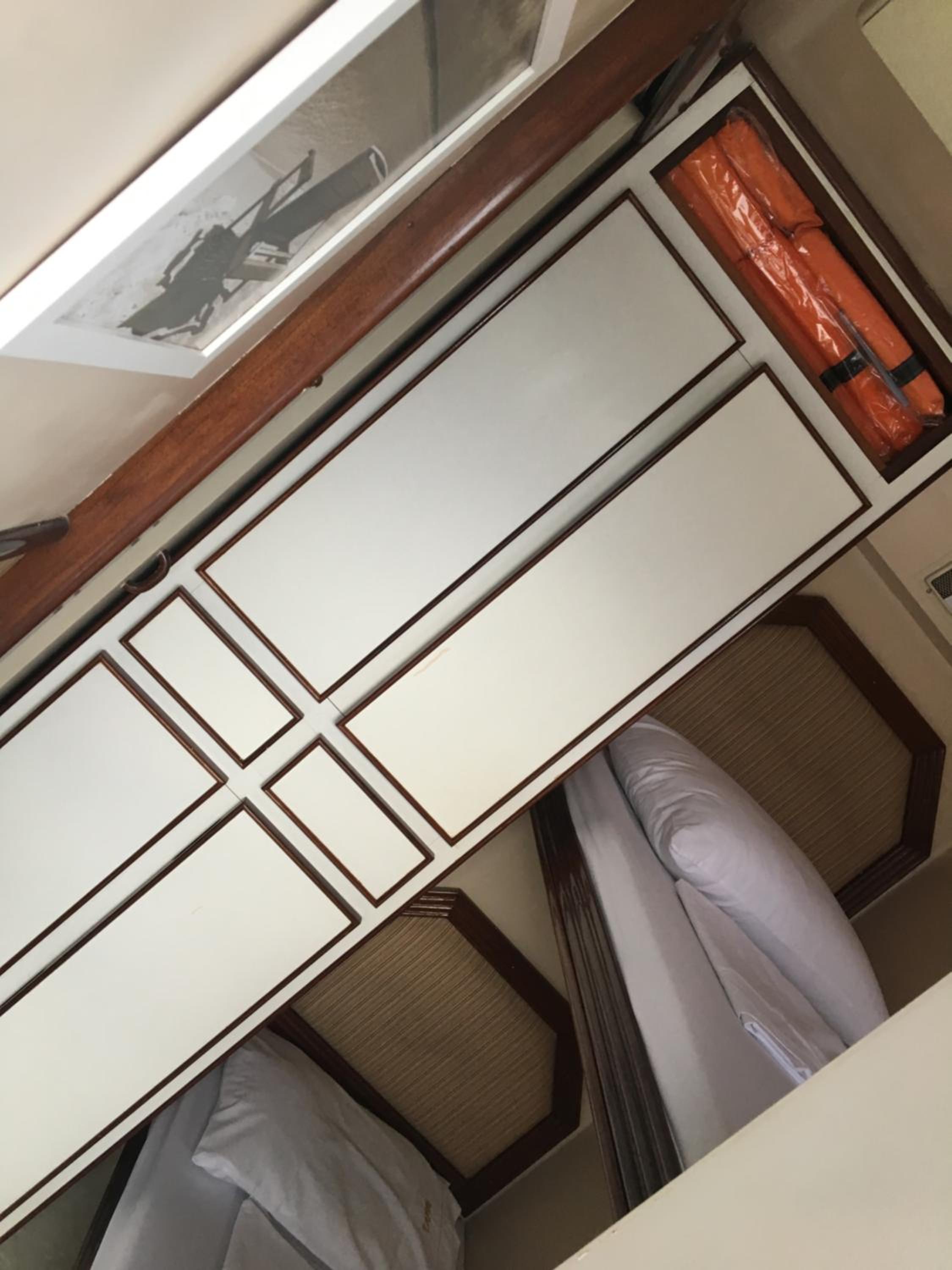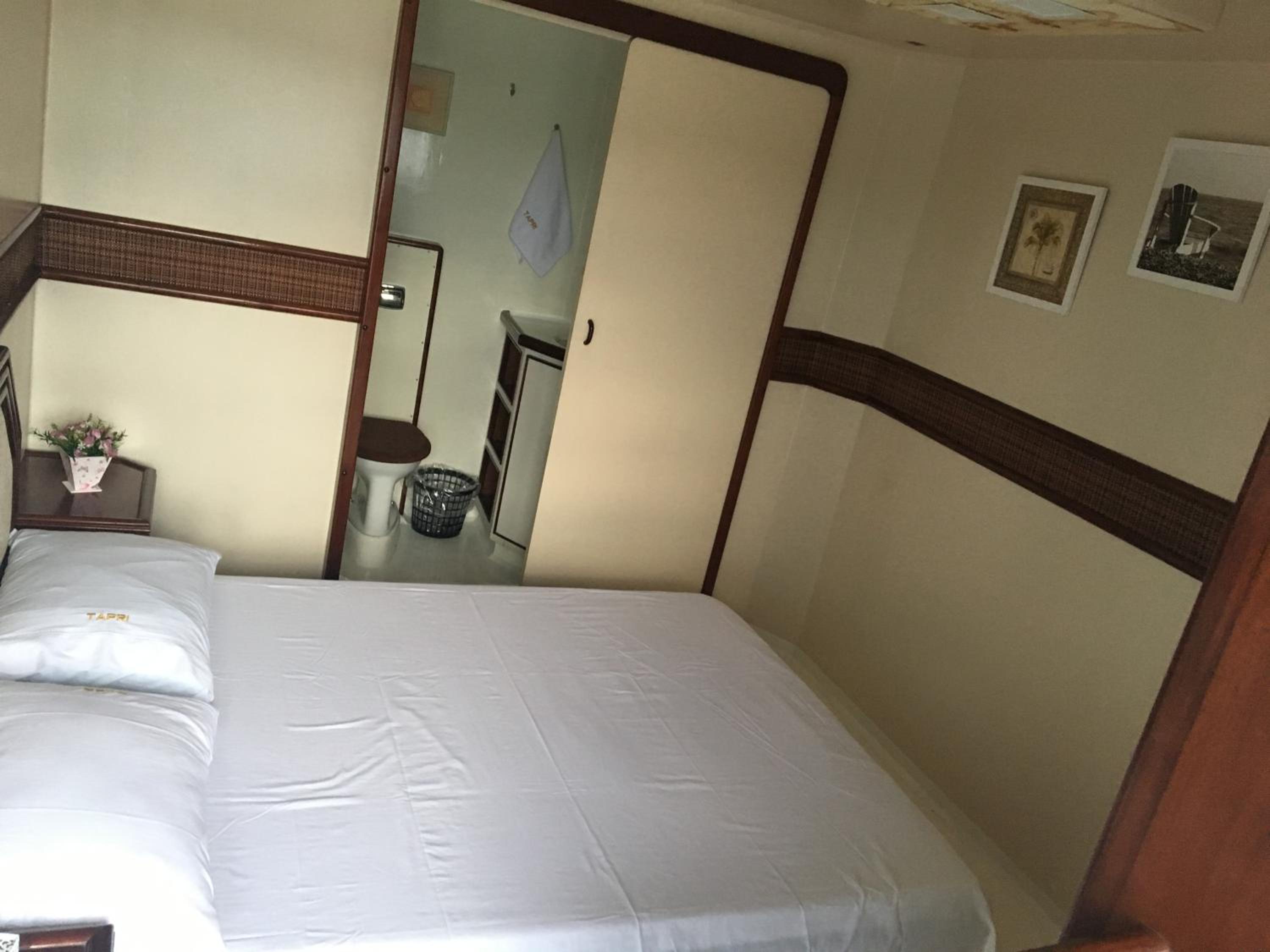 A cabine bem apertada e com beliche sendo bem complicado subir na cama de cima quem já tem mais idade.