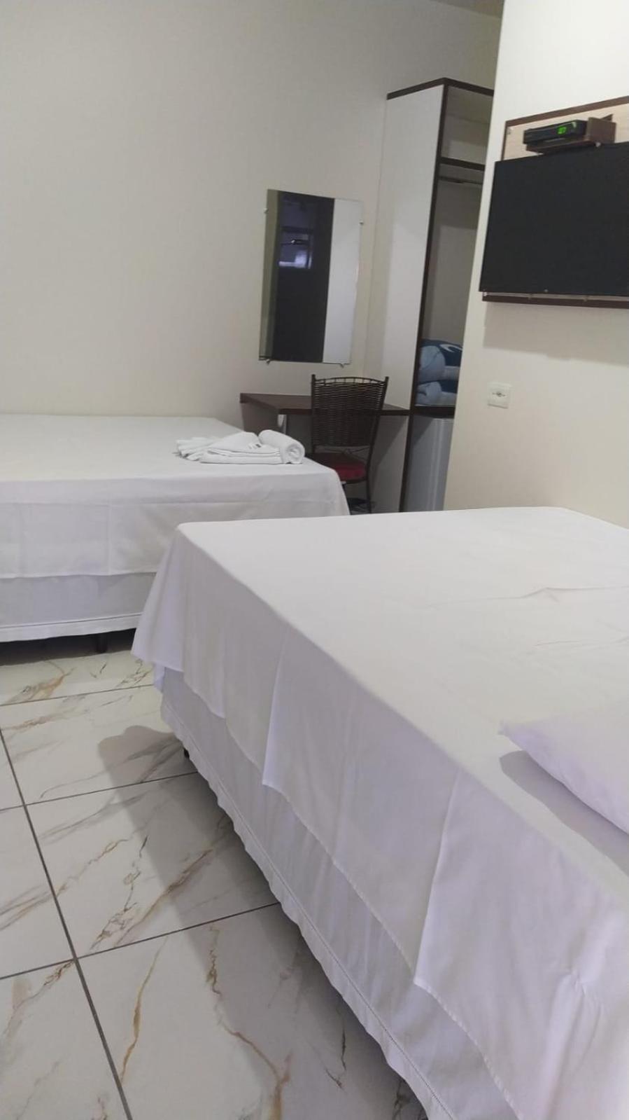 O quarto em si não é tão grande mas isso não incomoda, as camas são bem durinhas do jeito que eu gosto e os travesseiros são bem macios, tudo tava bem limpinho, as toalhas são macias e grandes, o banheiro tava limpinho e saia bastante água do chuveiro e eles dão até minis barrinha de sabonete achei bem legalzinho kkkkk, o ar condicionado gela bem, tem um frigobar no quarto ele é bem pequeno mas serviu bem pra mim, o café da manhã tem o básico mas é o básico bem feito tava muito bom e as funcionárias iam repondo toda hora. Os funcionários também são bem gnt boa e a localização atendeu perfeitamente as minhas necessidades, ela é perto do centro e na saída da rodovia que vai em direção ao Paraguai. Veredito: perfeito, ótimo custo benefício comparado com outros hotéis da região, se eu for pra Guaíra novamente com certeza irei escolher esse hotel!