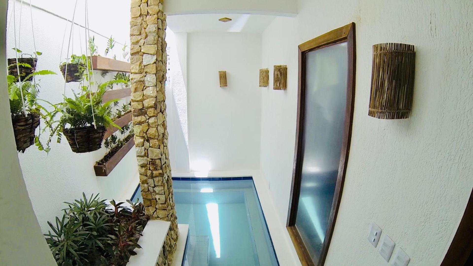 A piscina tem hidro aquecida.