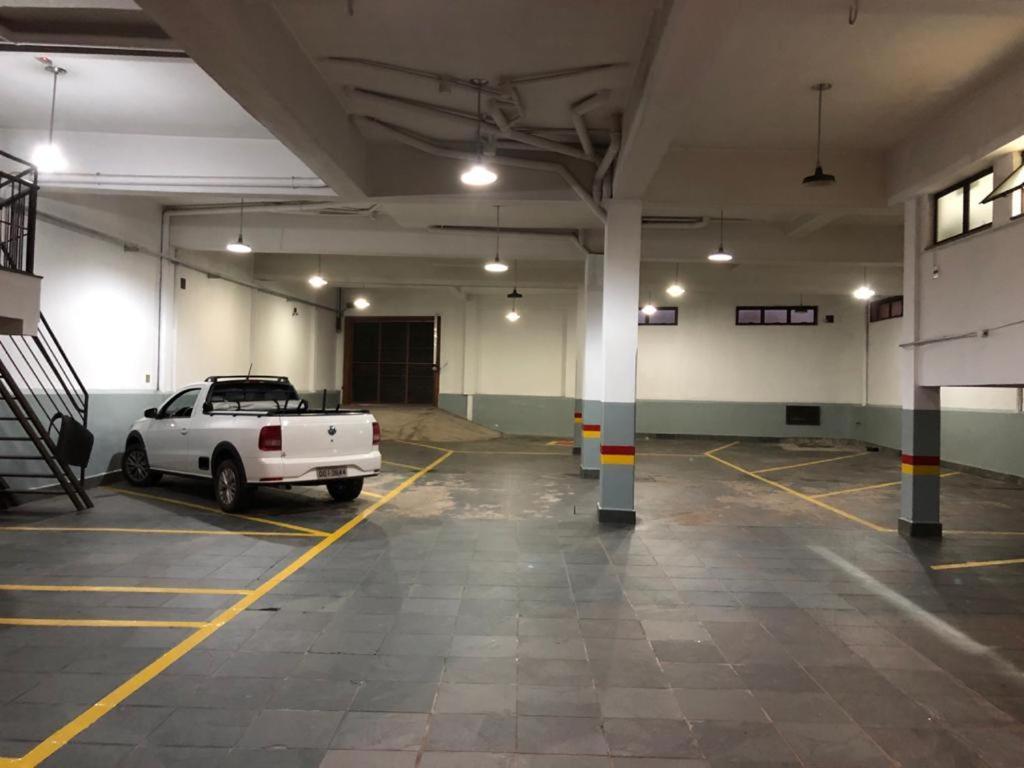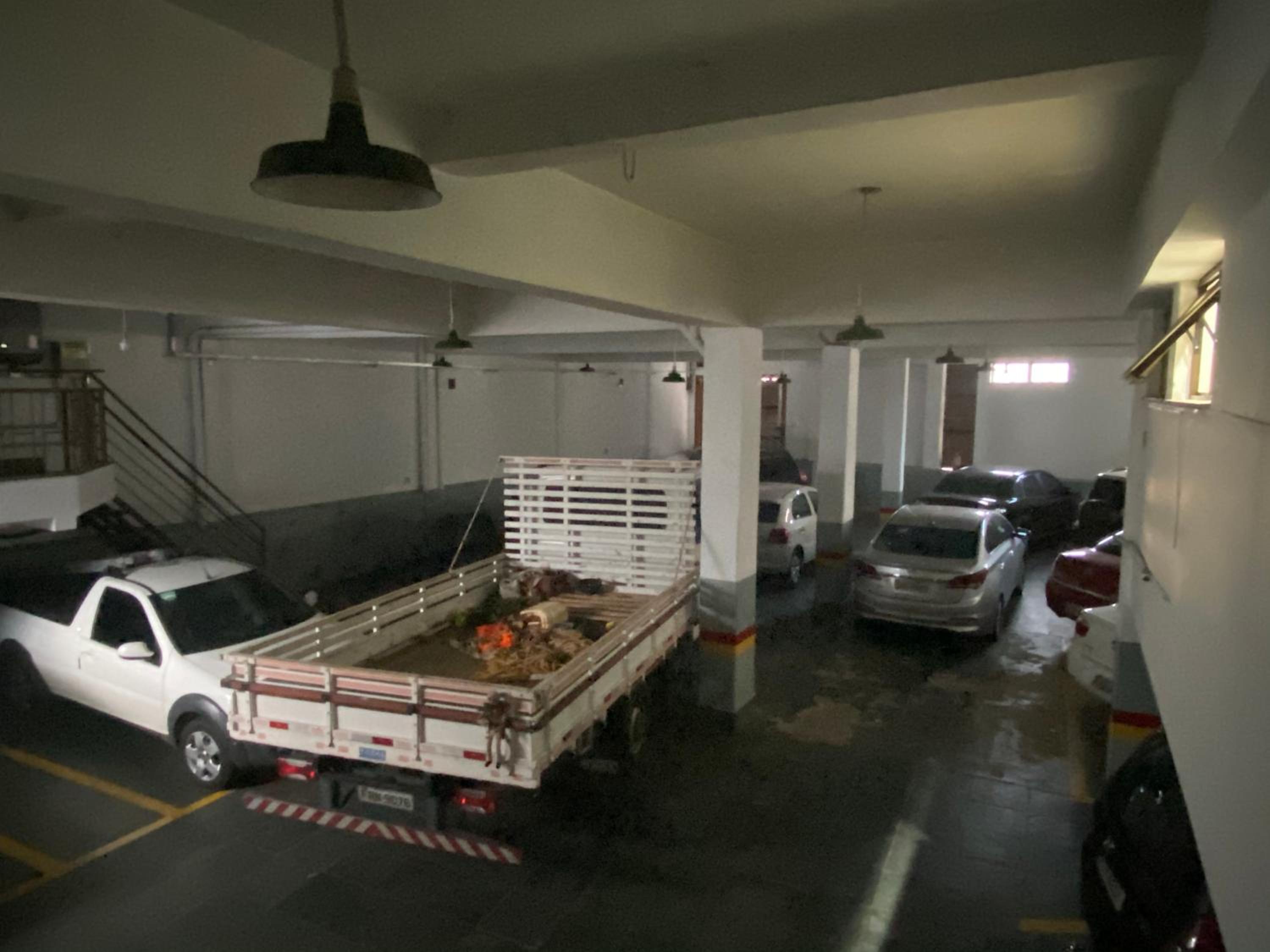 Não tinha vaga de garagem. Estacionamos na frente do hotel.