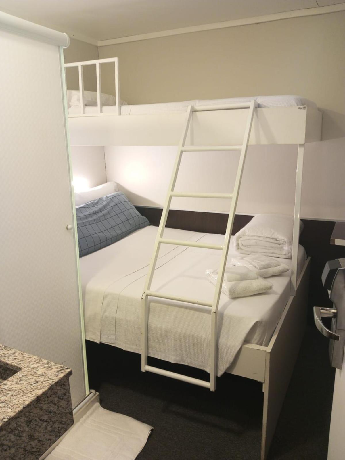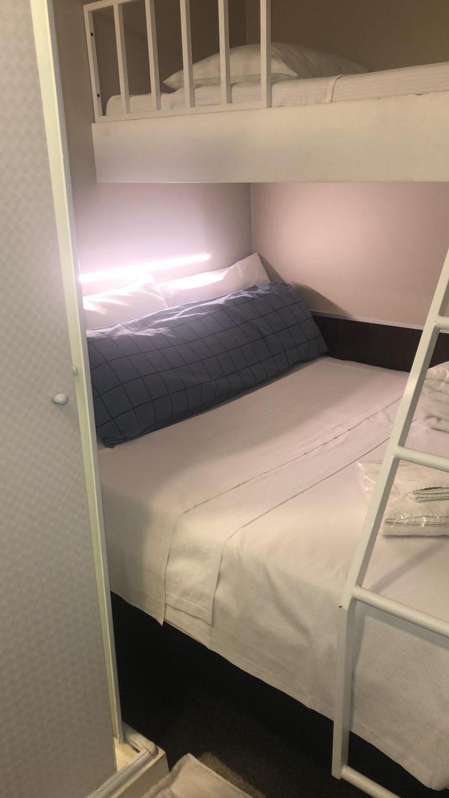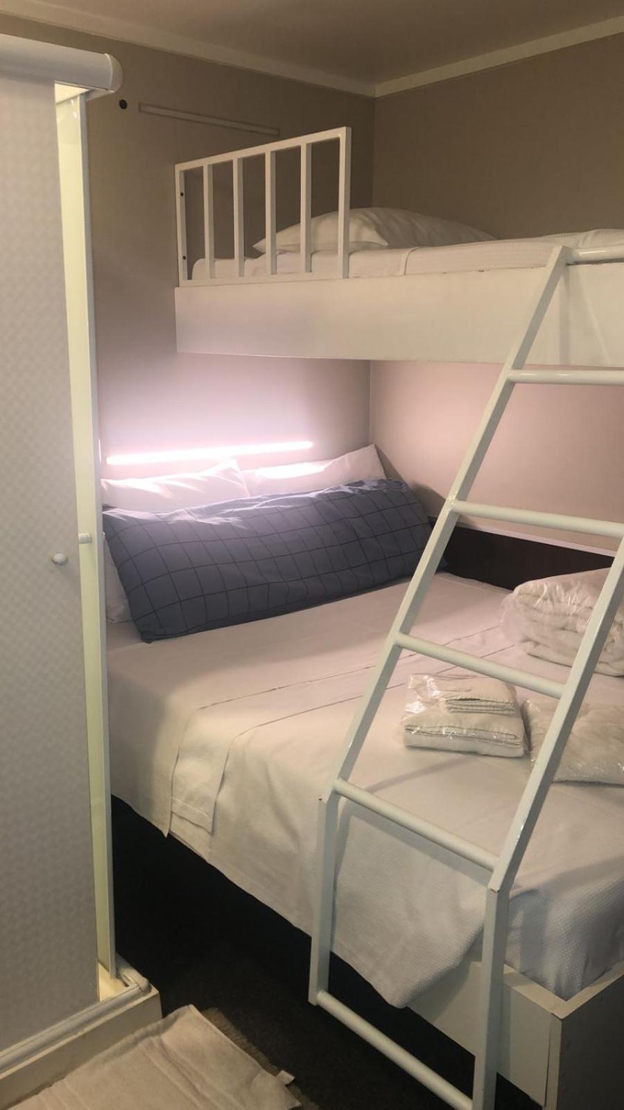 É uma cabine e não um quarto. É uma cama que no cabem as malas dentro.