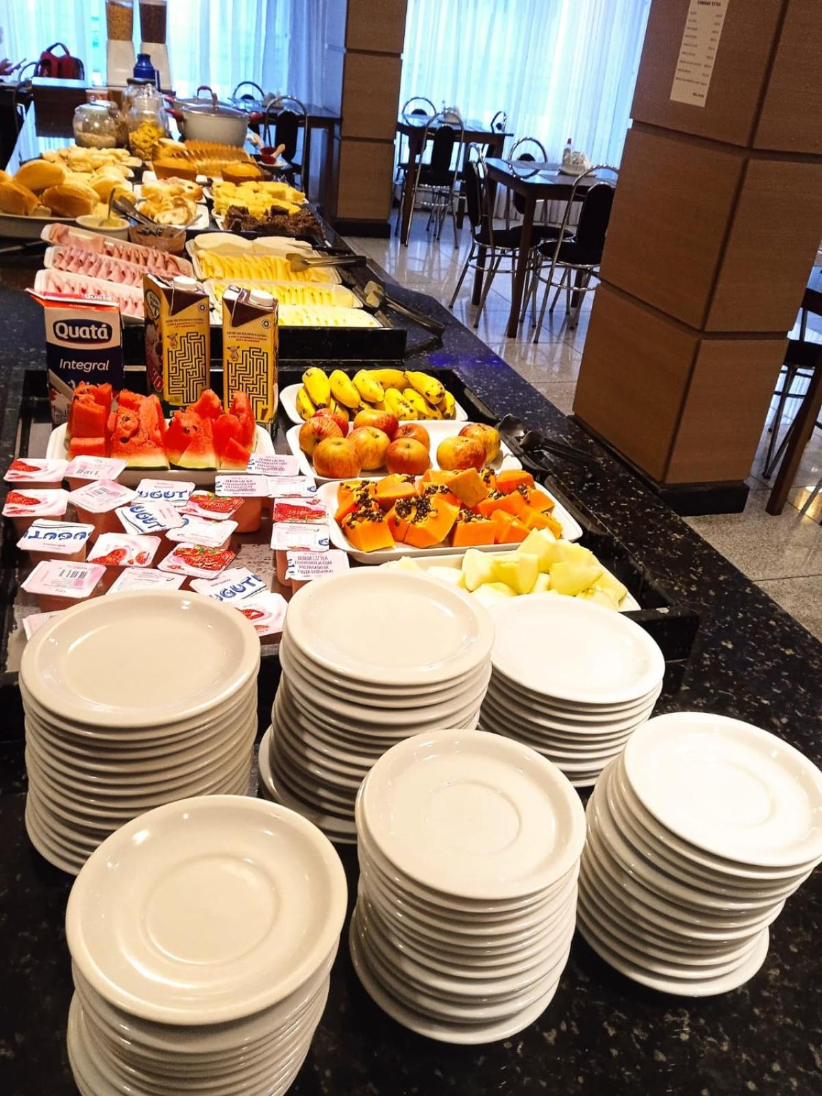 Café da manhã com variedades e muito bem servido.