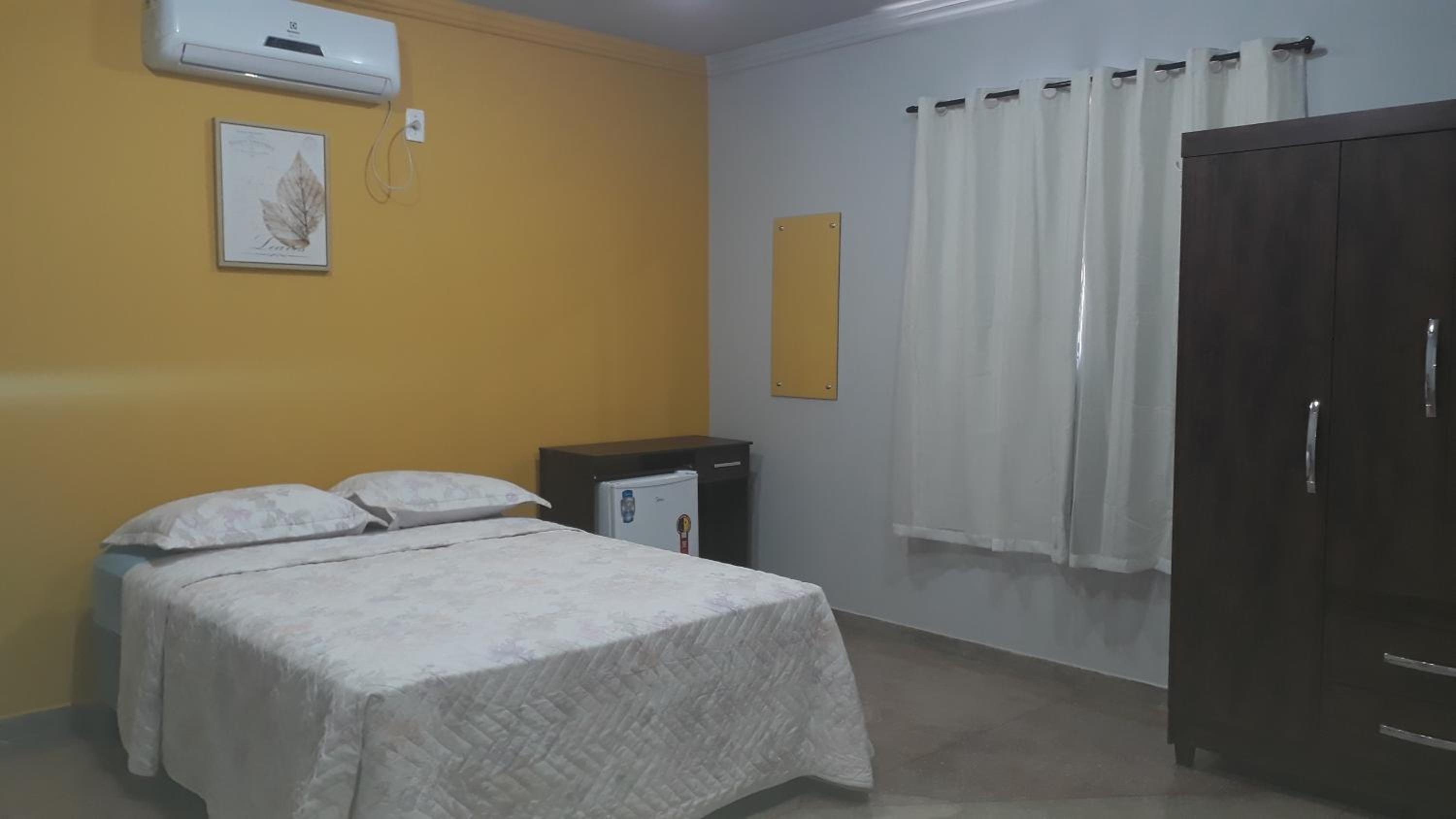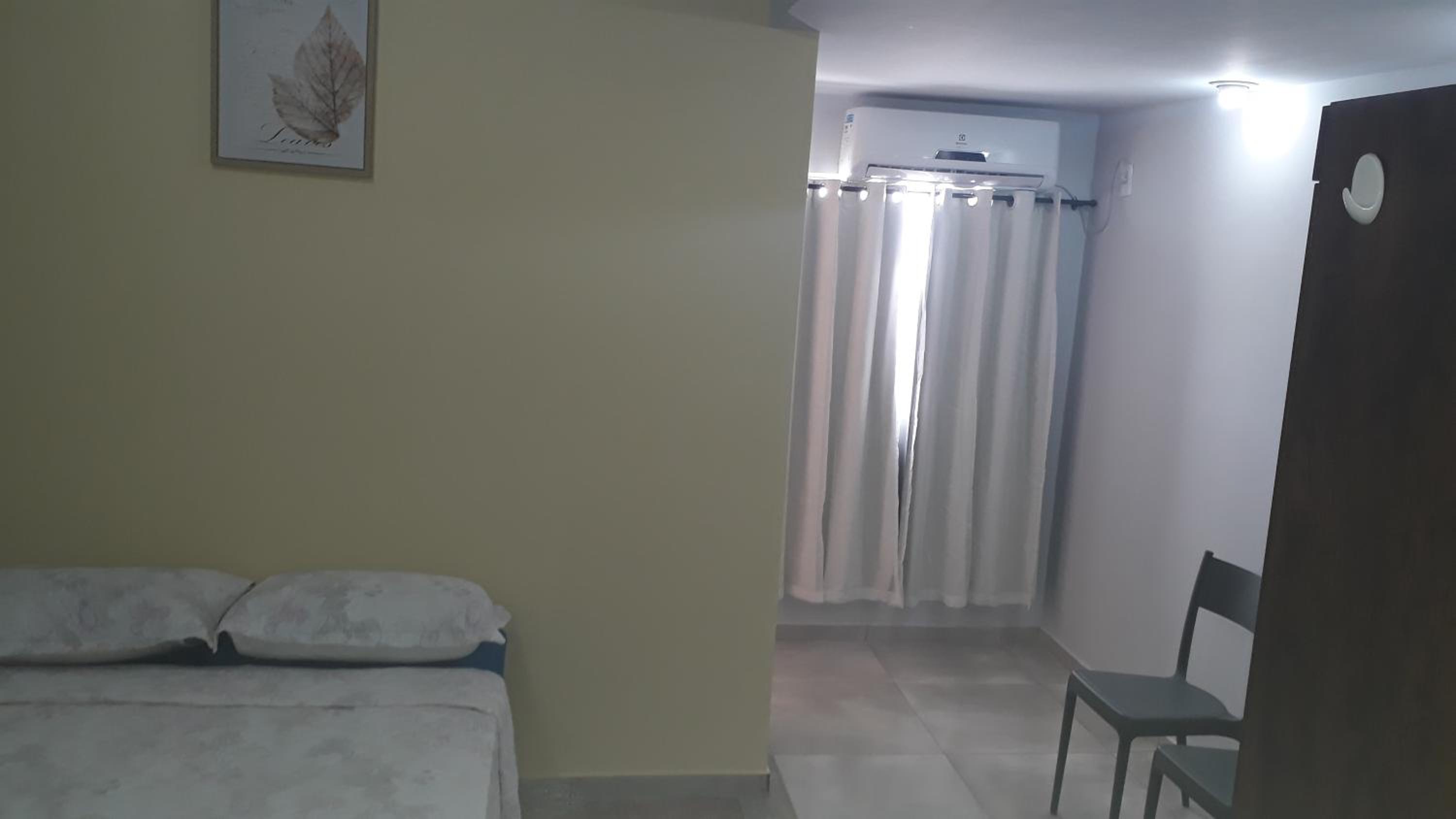 Falta cortina blecaute nas janelas.