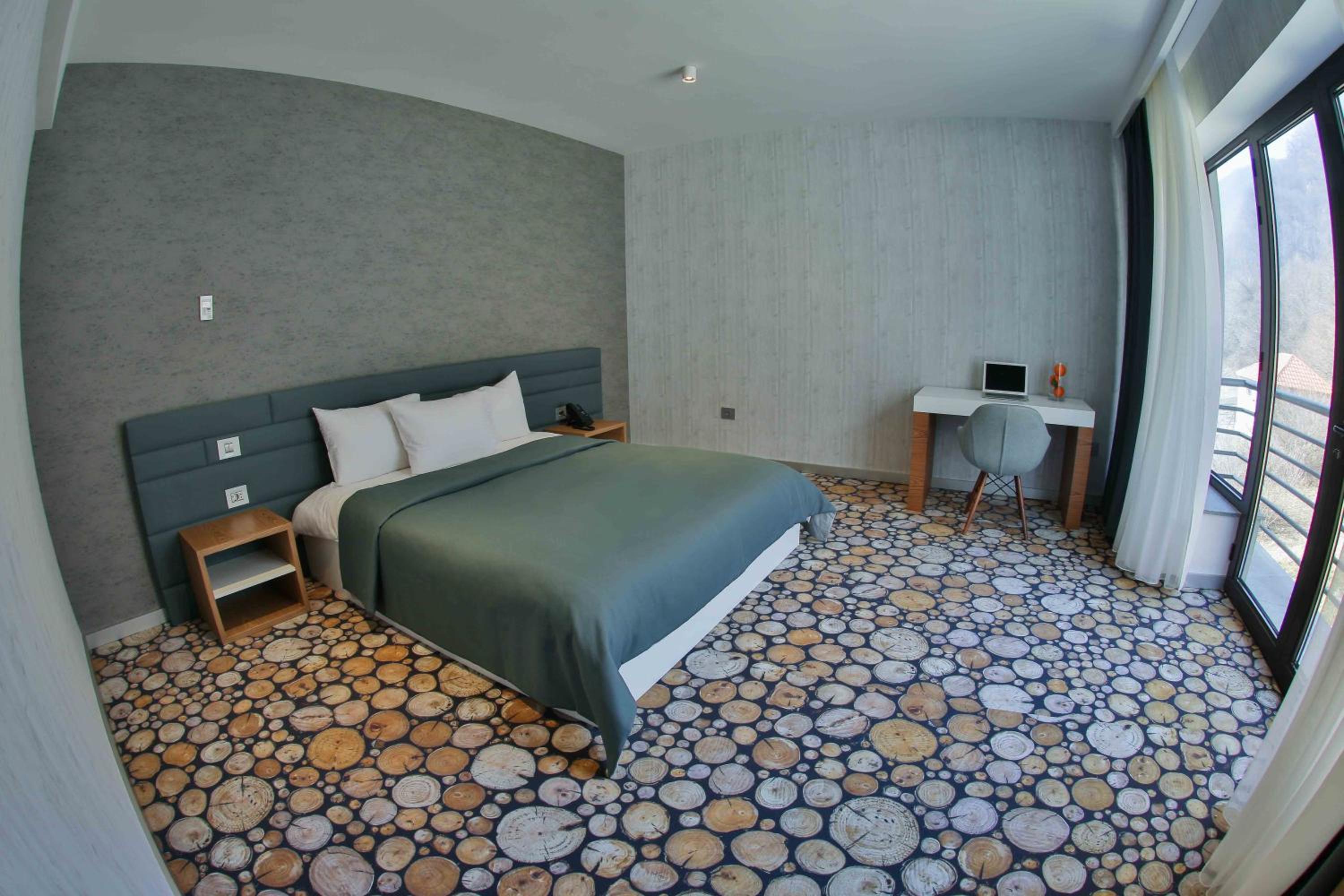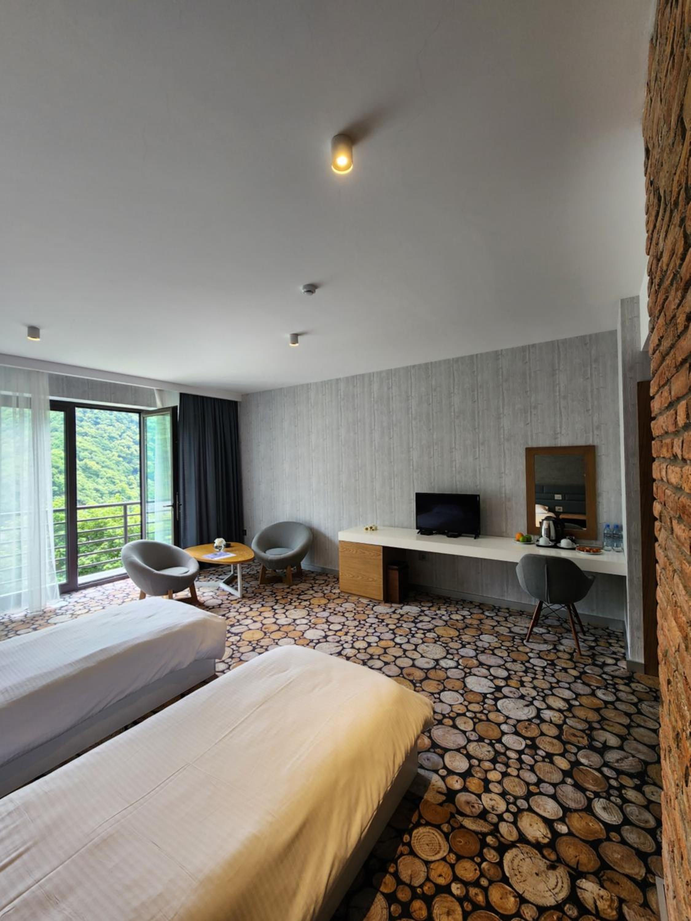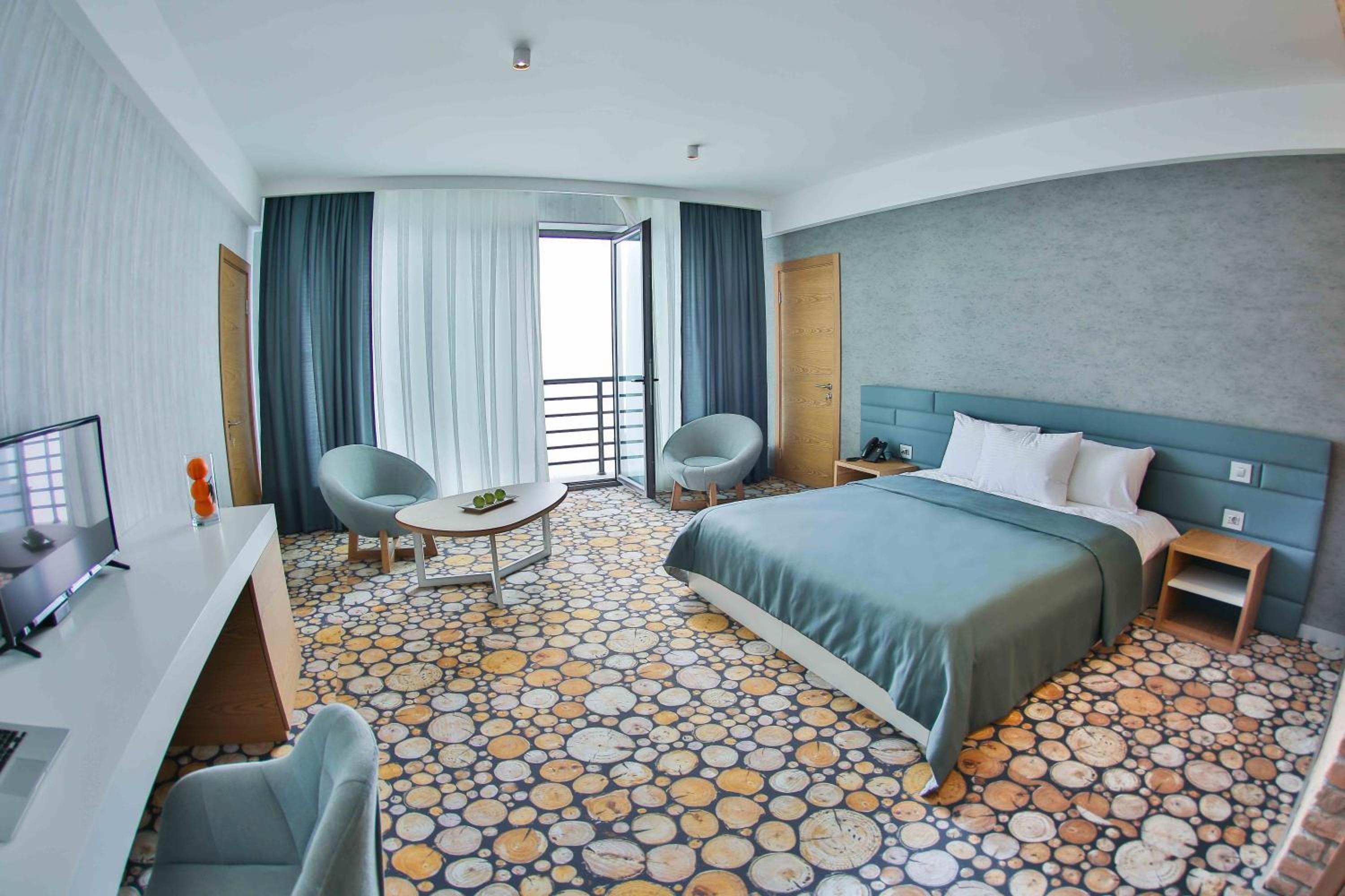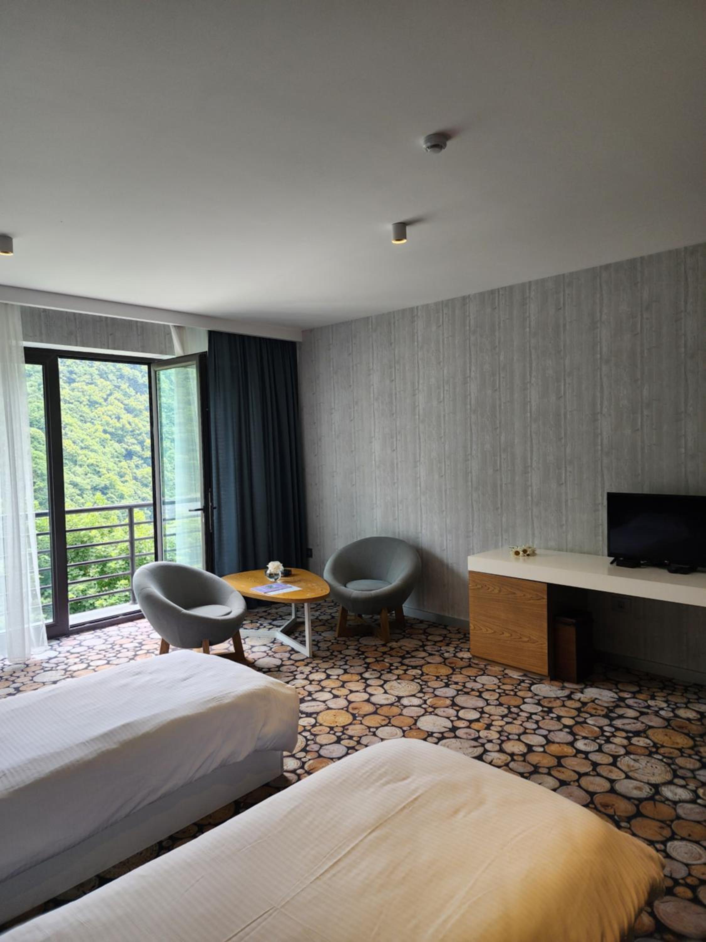Yurd Hotel in Qax offers a 4-star experience with modern amenities including air conditioning, flat-screen TV, and a safety deposit box. Each room is equipped with a private bathroom and comfortable seating area for a relaxing stay.