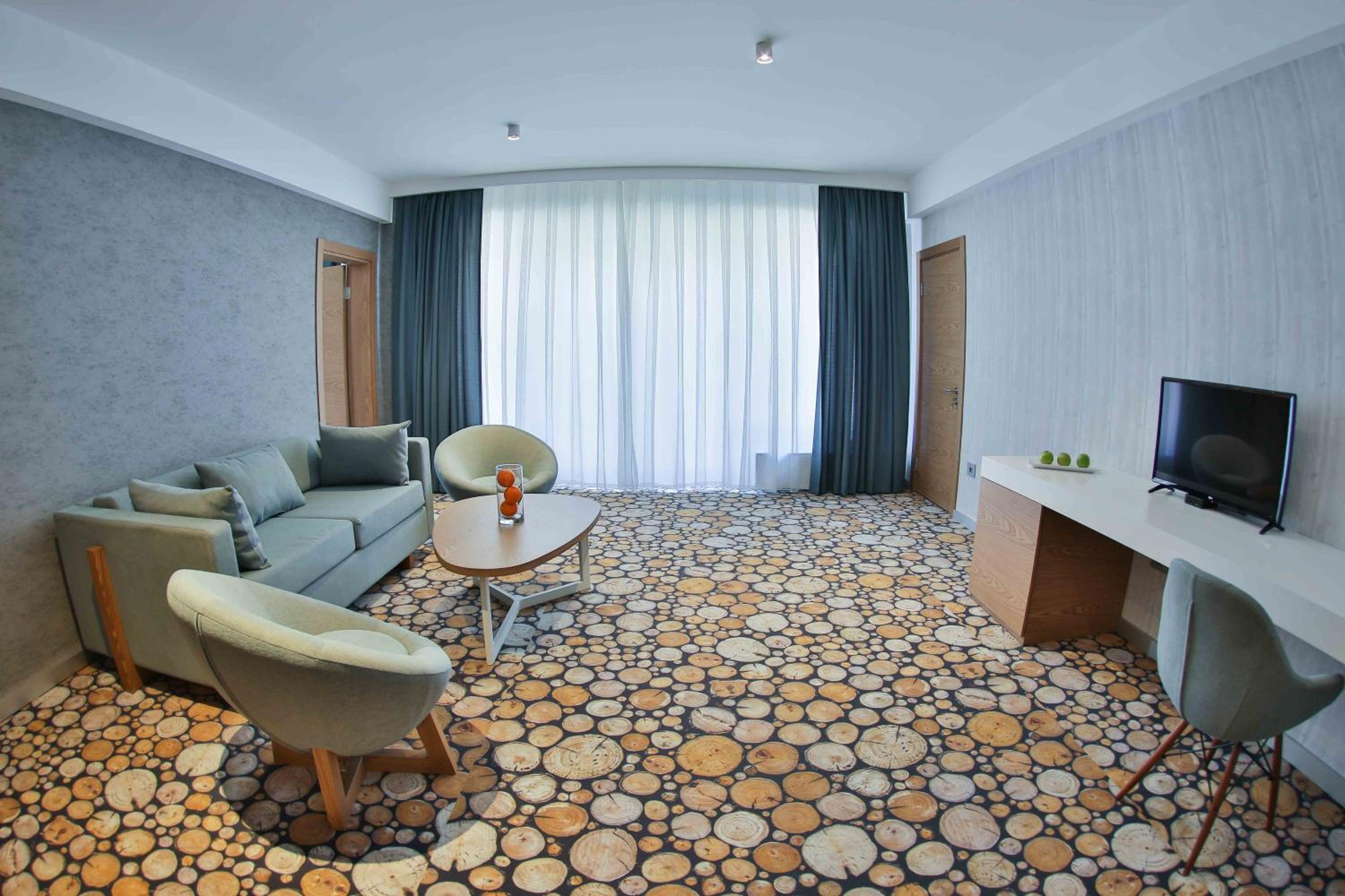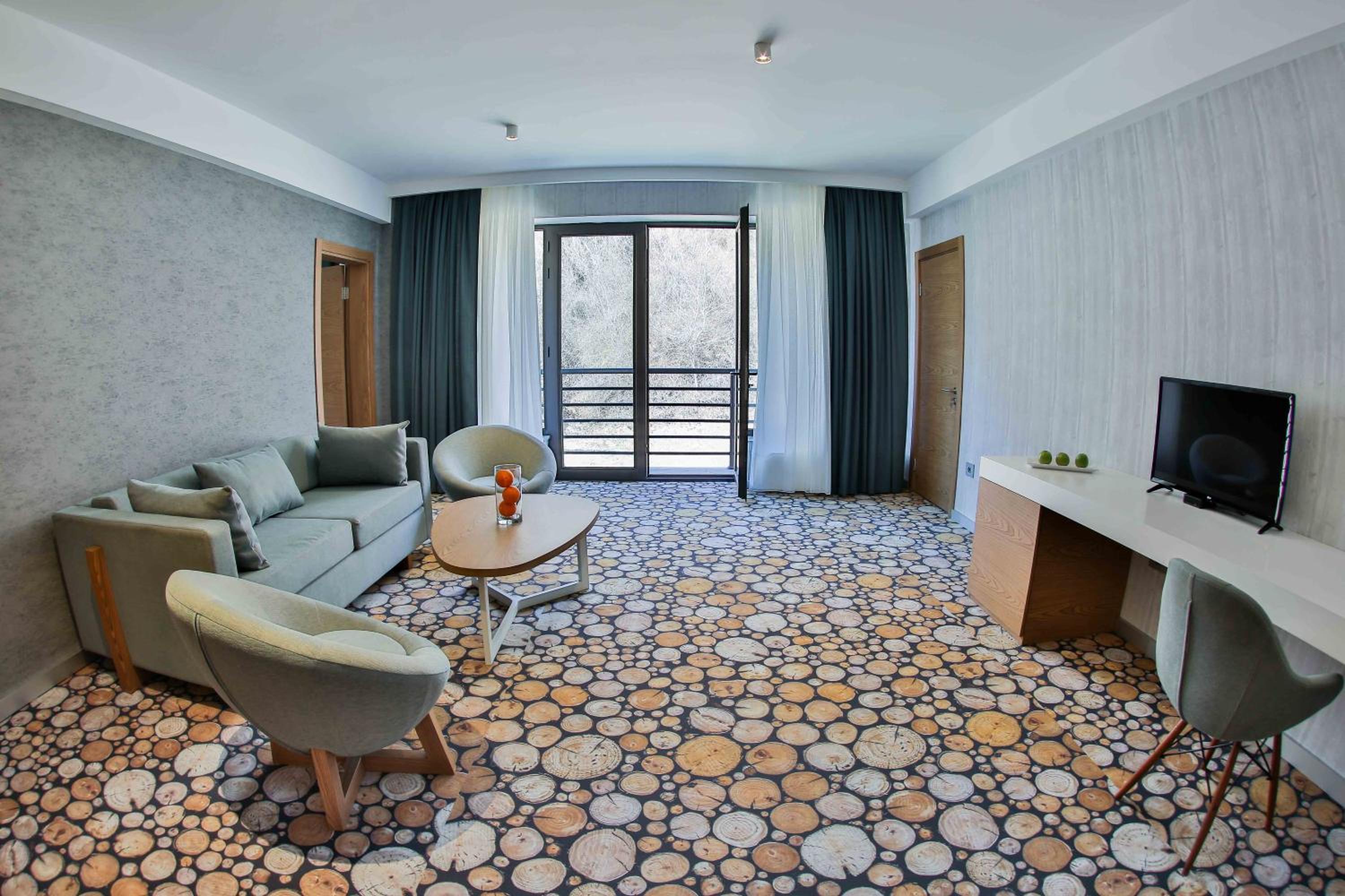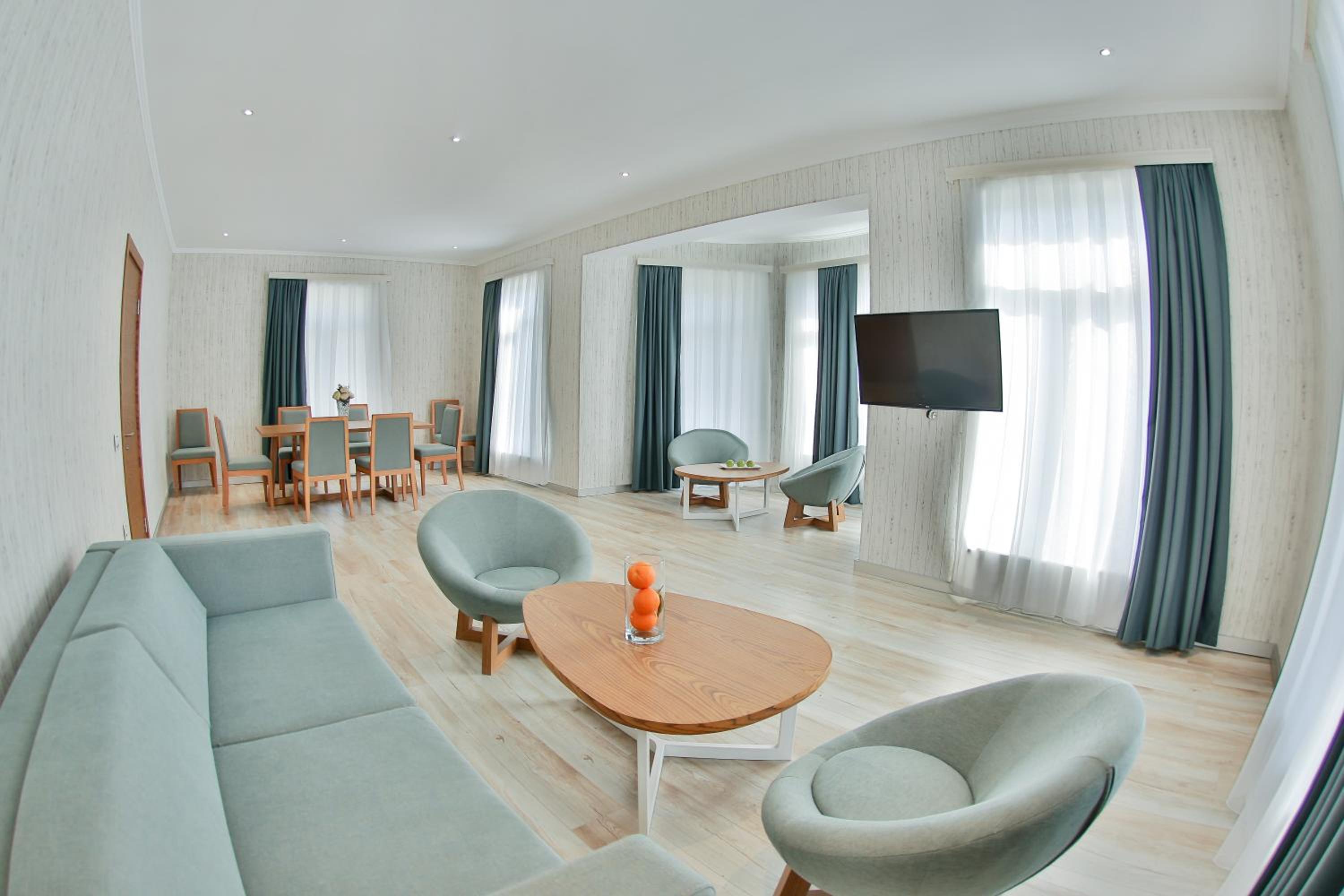 Yurd Hotel in Qax offers a 4-star experience with modern amenities including air conditioning, flat-screen TV, and a safety deposit box. Each room is equipped with a private bathroom and comfortable seating area for a relaxing stay.