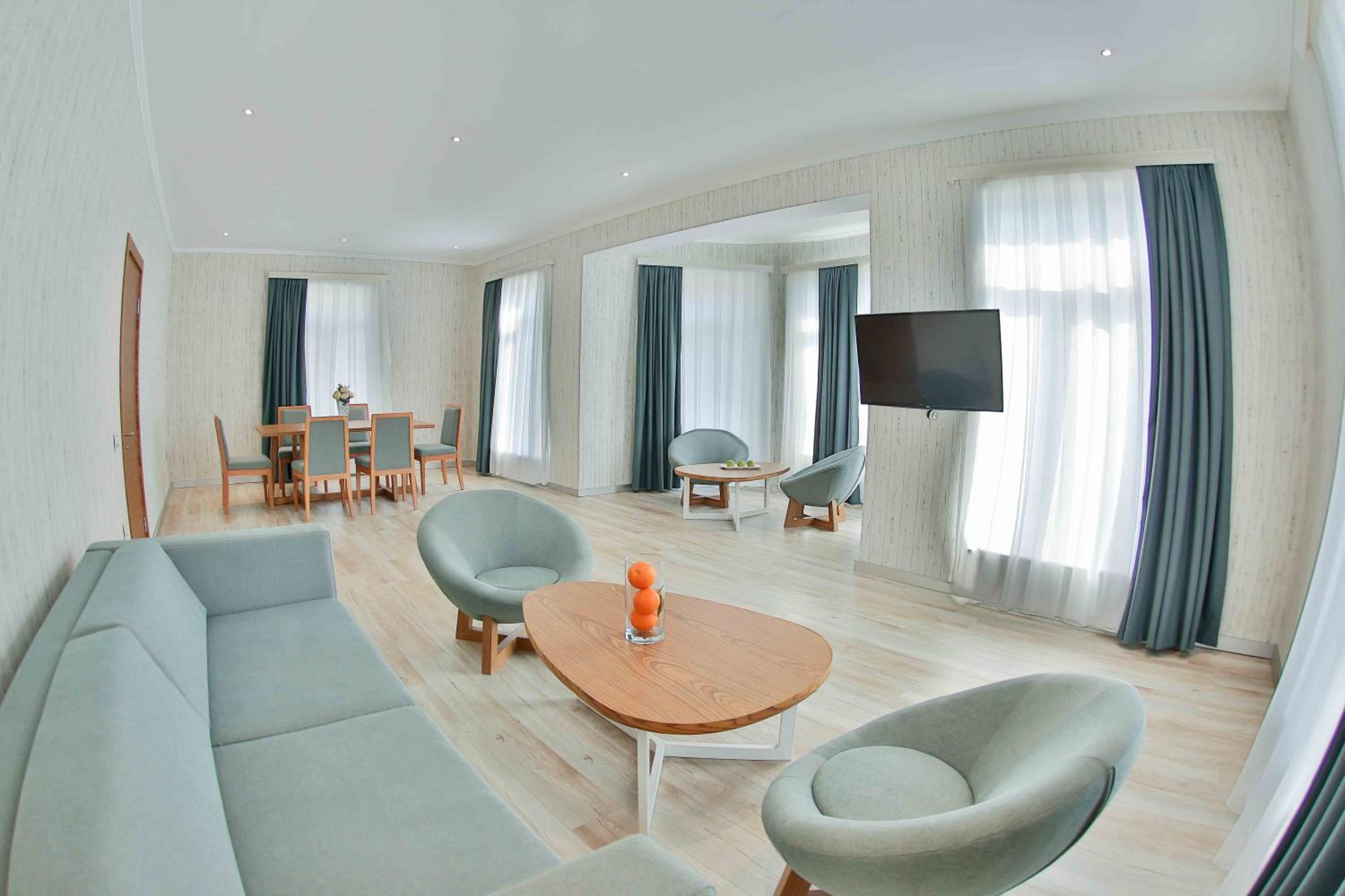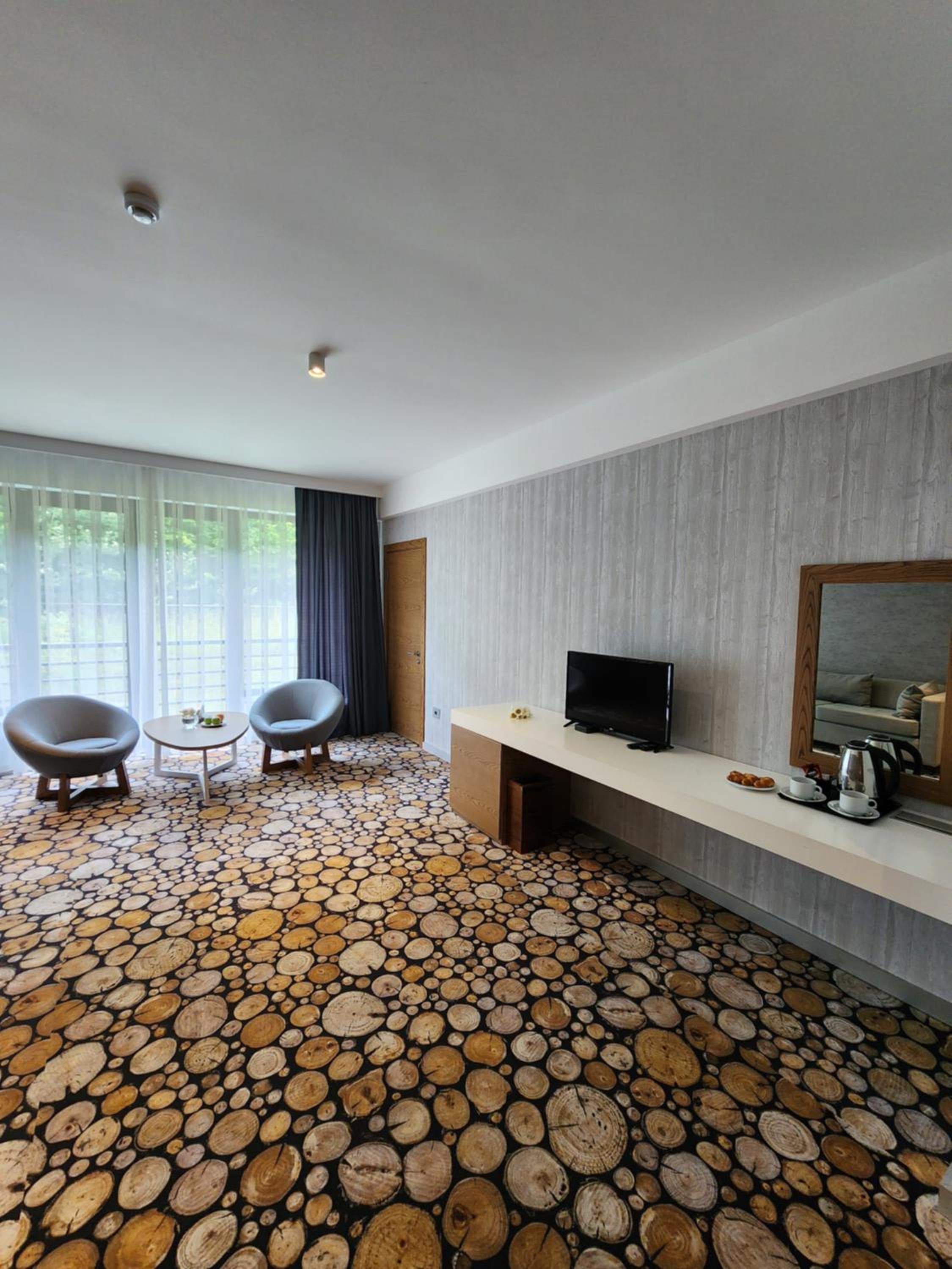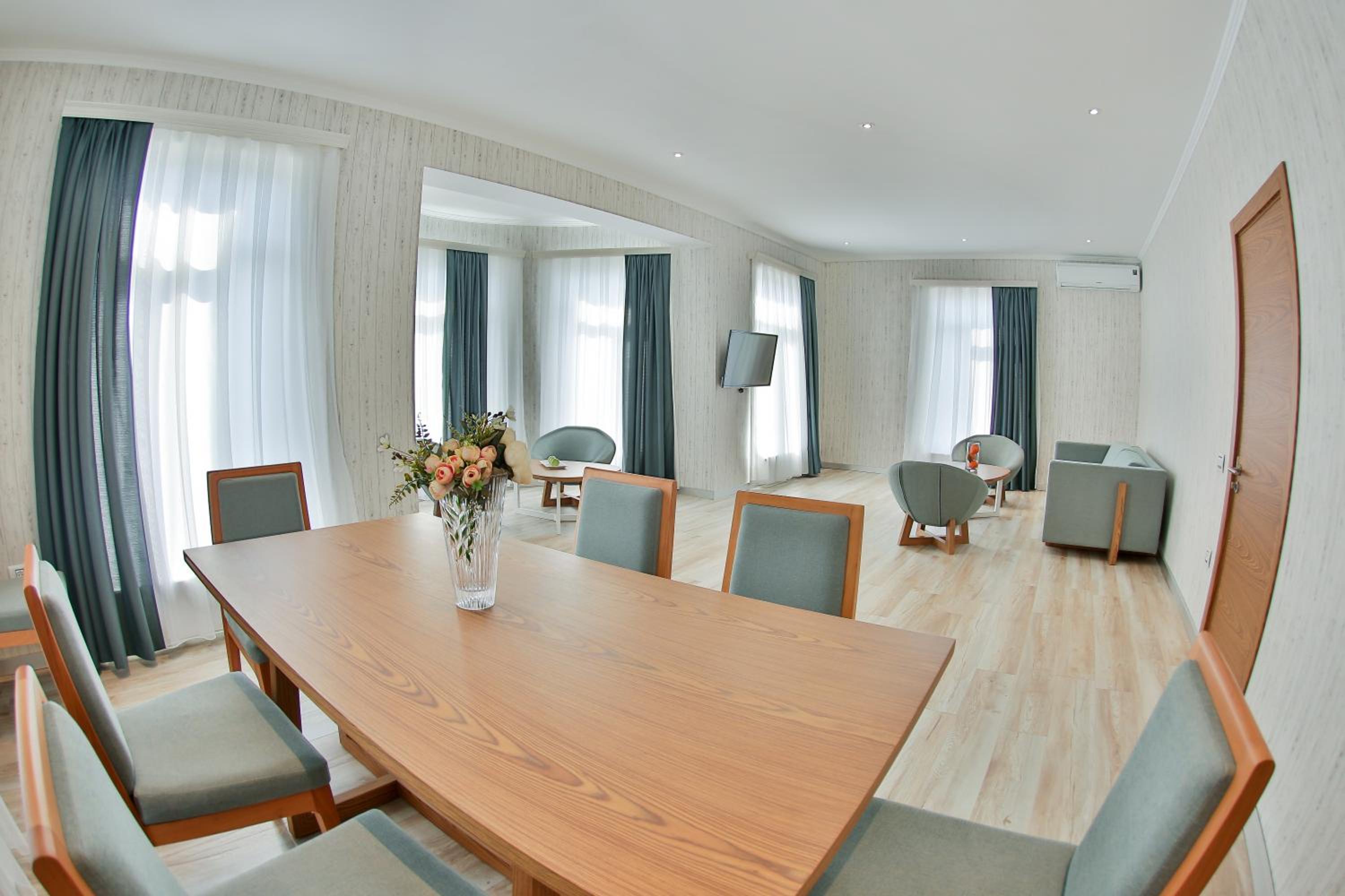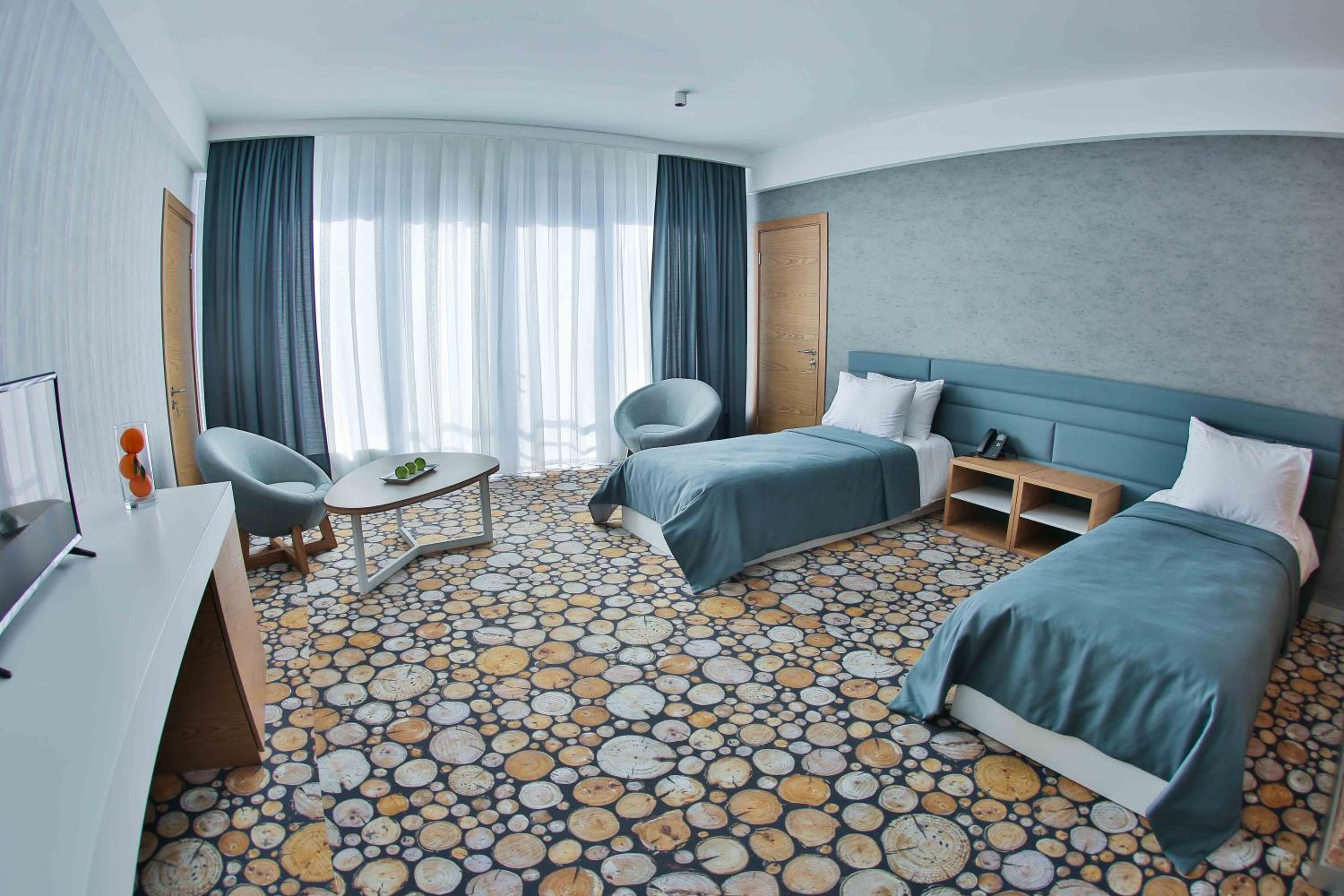 Yurd Hotel in Qax offers a 4-star experience with modern amenities including air conditioning, flat-screen TV, and a safety deposit box. Each room is equipped with a private bathroom and comfortable seating area for a relaxing stay.