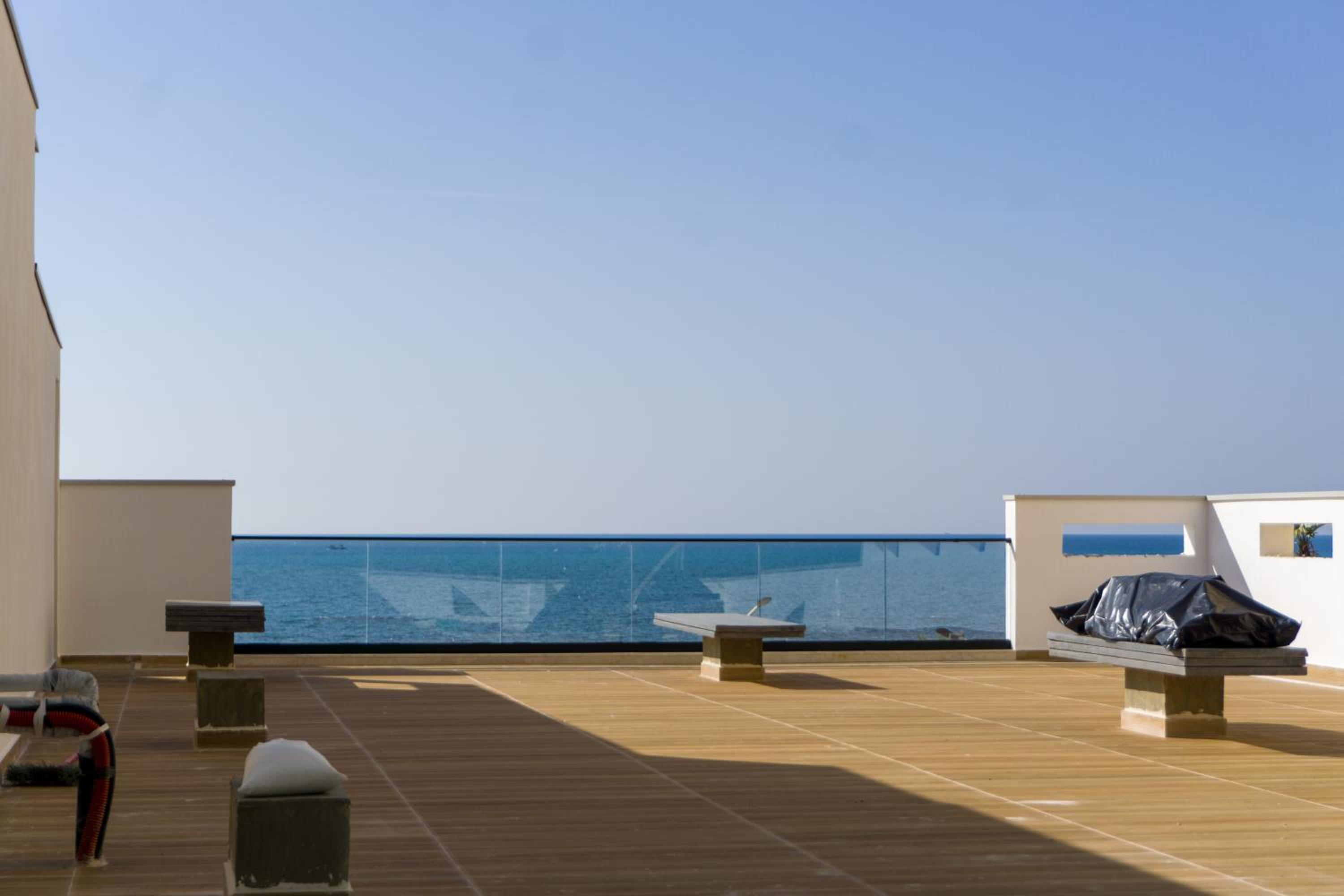 Das Deluxe Zimmer für zwei Personen mit Meerblick war sehr schön! Es gab einen großen Balkon, ein gemütliches Bett und eine Küchenecke. Das Bad war verhältnismäßig groß, die Dusche sehr schön. Alles war sauber und lud zum Wohlfühlen ein. Das Personal war überaus freundlich und hilfsbereit. Das Restaurant Neps unter dem Hotel rundet das Angebot ab. Hier kann man lecker essen und mit einem Frühstück in den Tag starten. Strände befinden sich gleich gegenüber von der Straße und das Zentrum samt Promenade ist fußläufig zu erreichen. Der Blick aufs Meer war das i-Tüpfelchen. Alles in allem sehr zu empfehlen! Oben auf dem Dach gab es zusätzlich eine große Terrasse für alle Gäste.