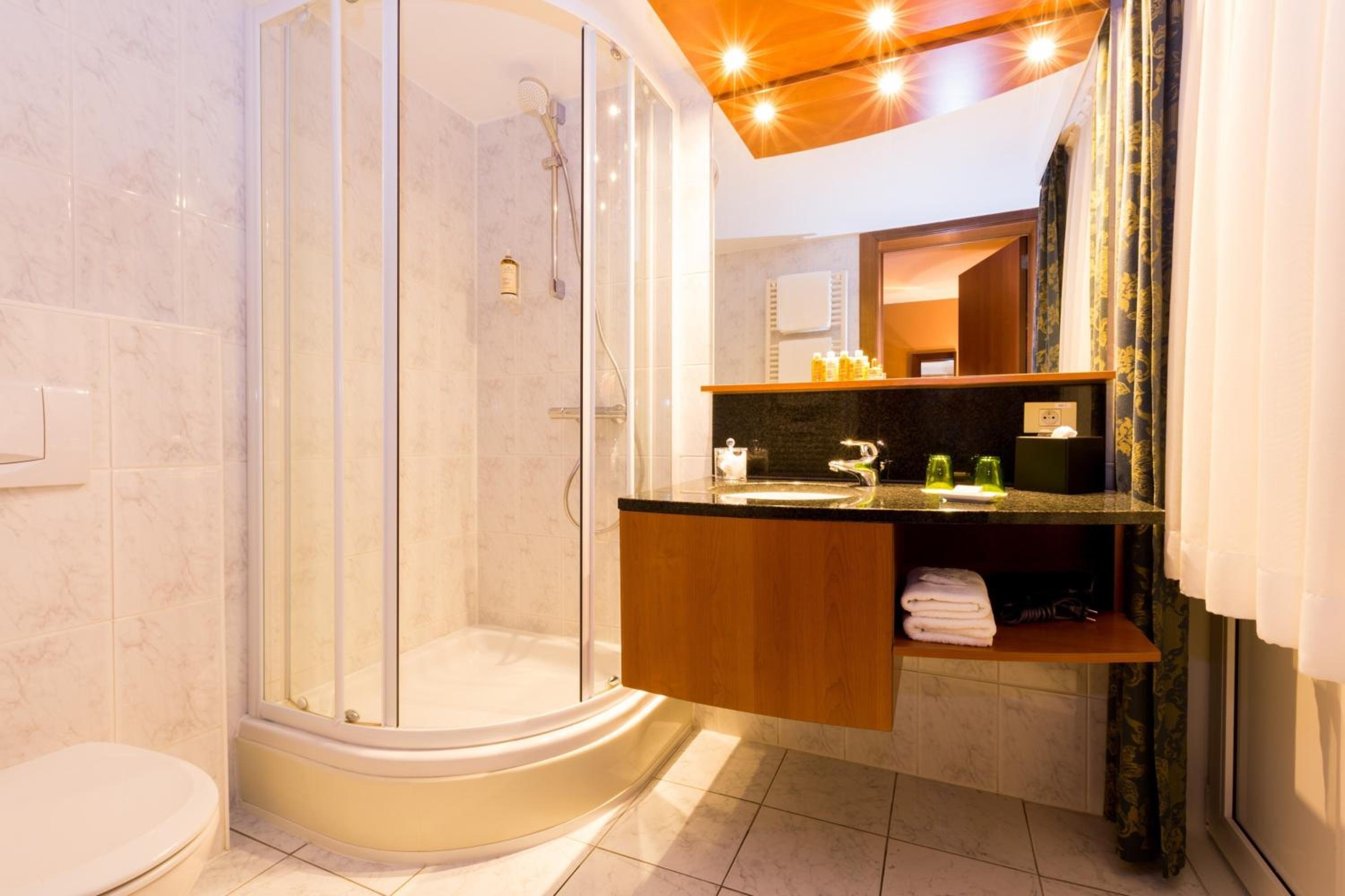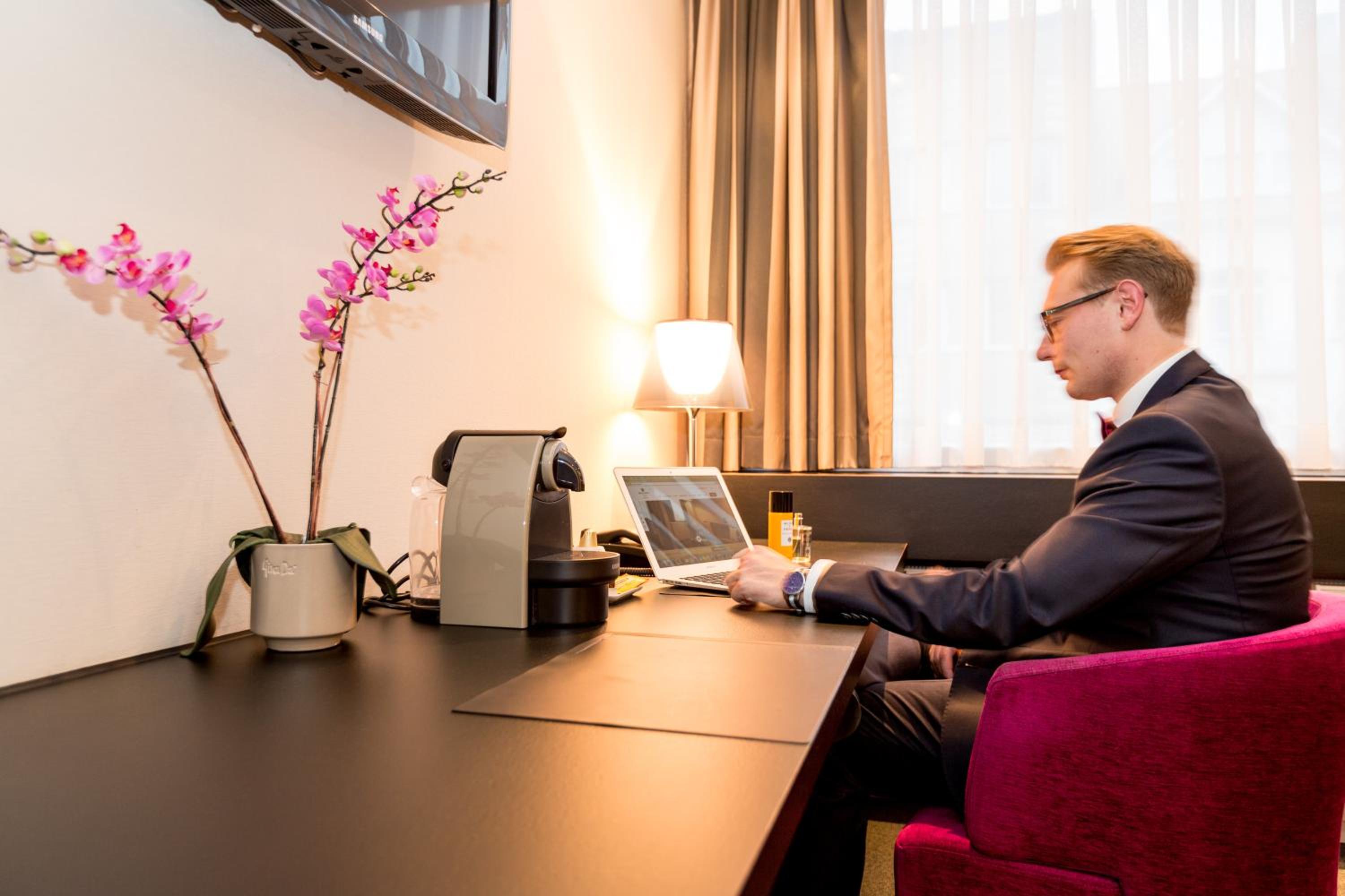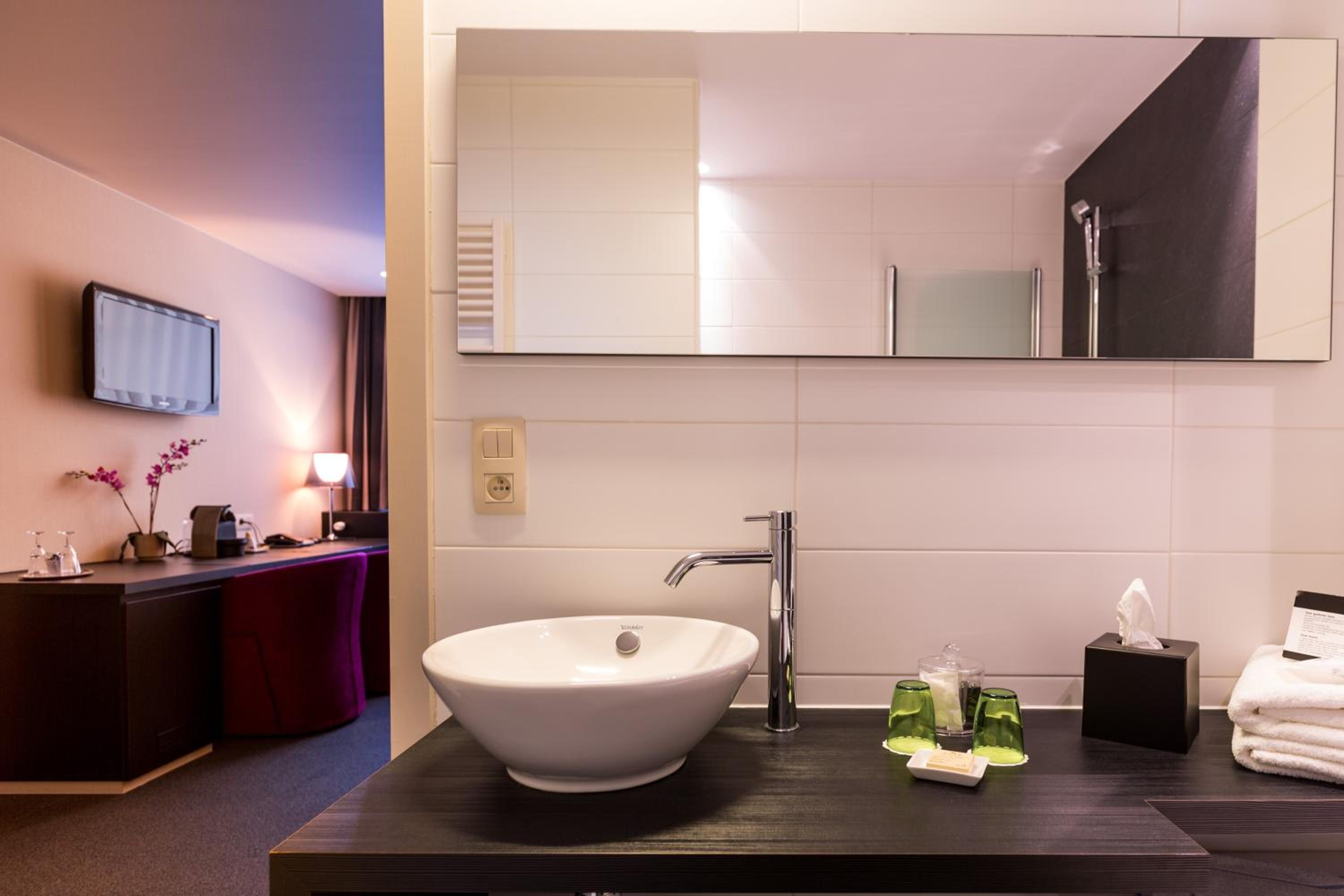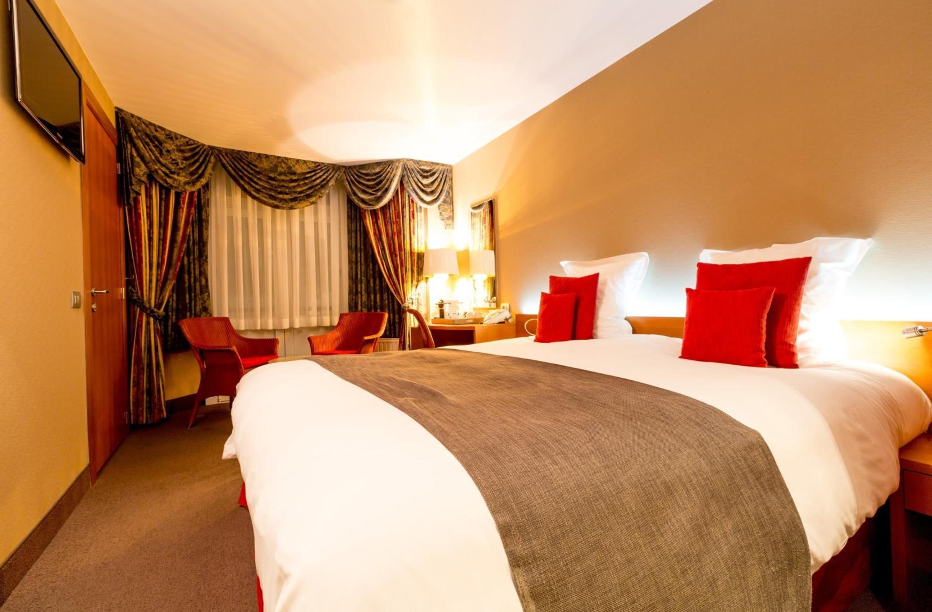 Experience ultimate comfort in our rooms featuring a TV, safe, minibar, and private bathroom, ensuring a pleasant stay throughout.