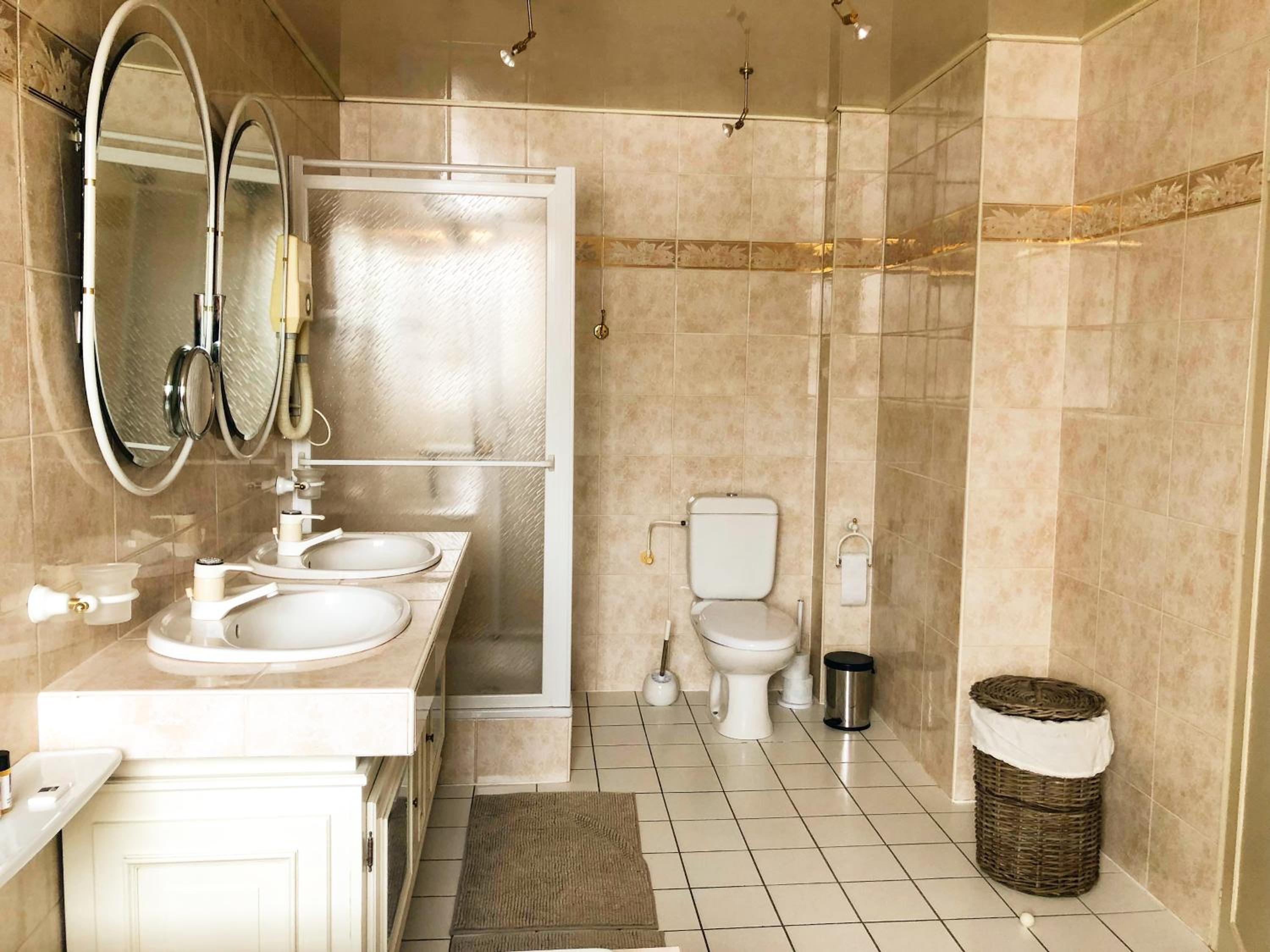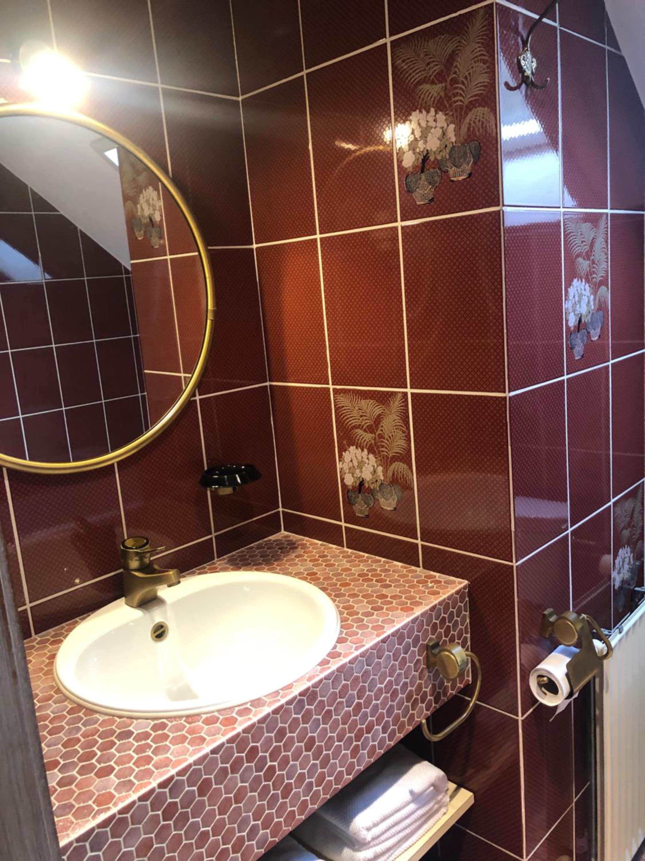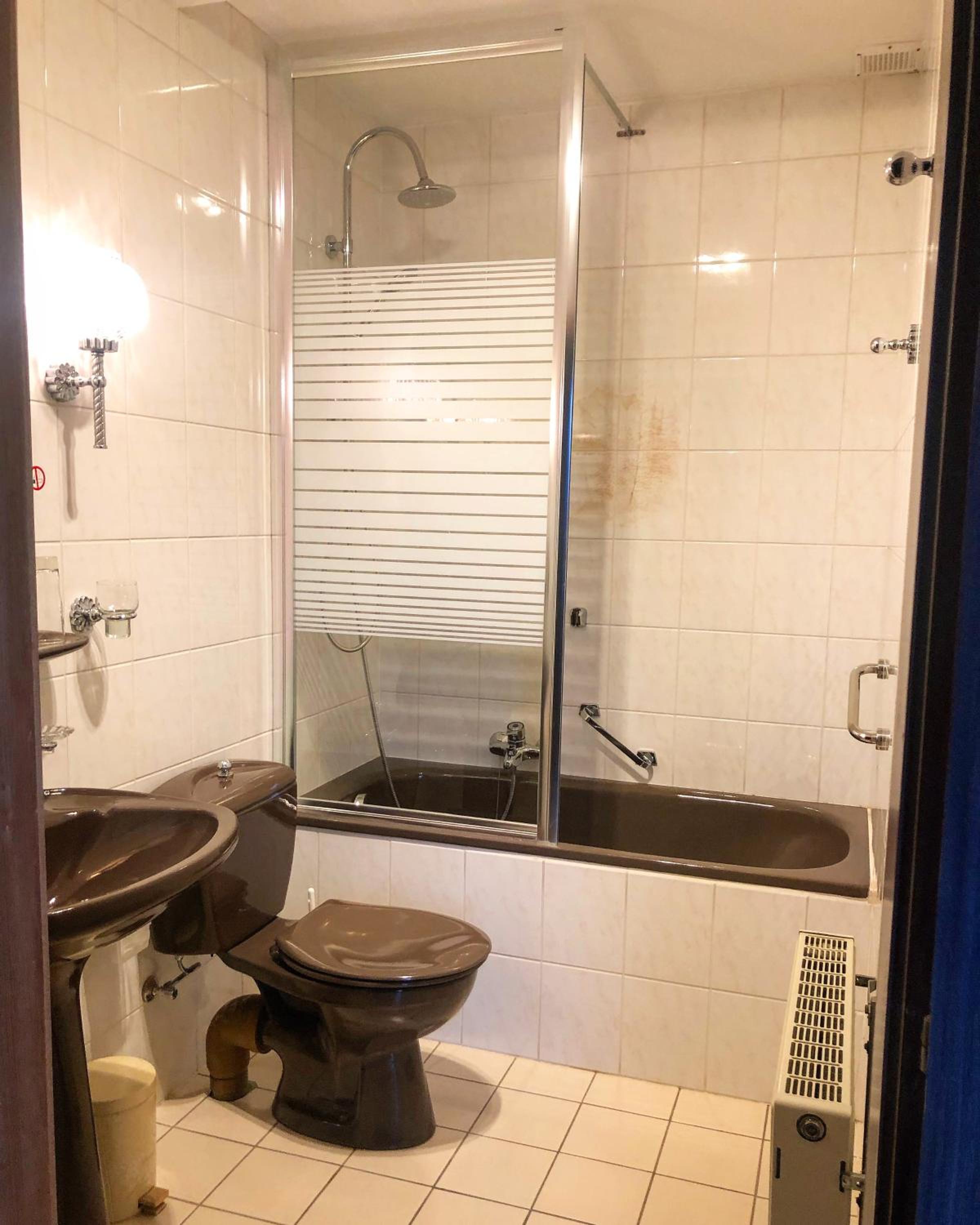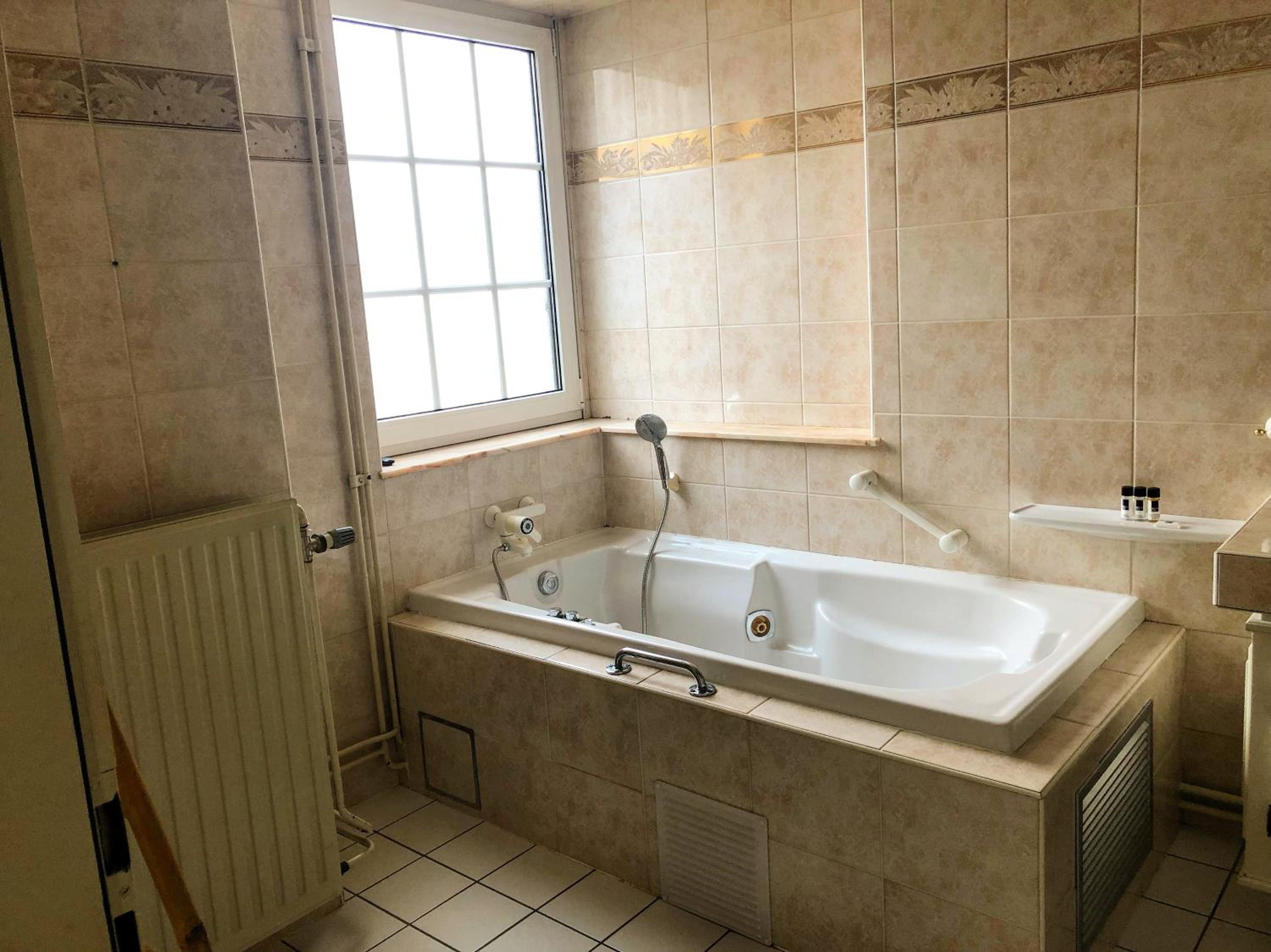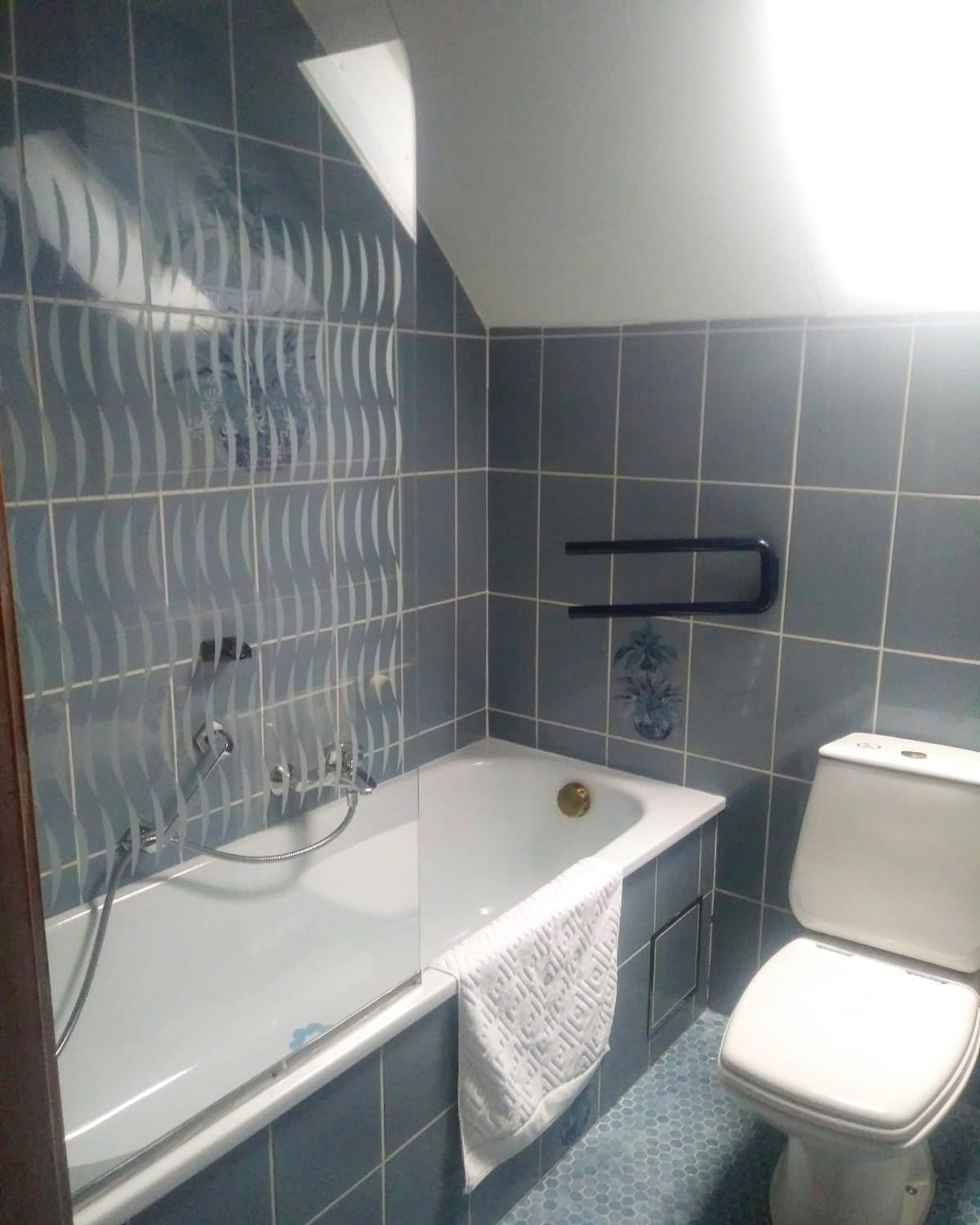 Salle de bain un peu vielle ... autocollant à moitié retiré dans la baignoire ps très propre, eau très très longue à chauffer