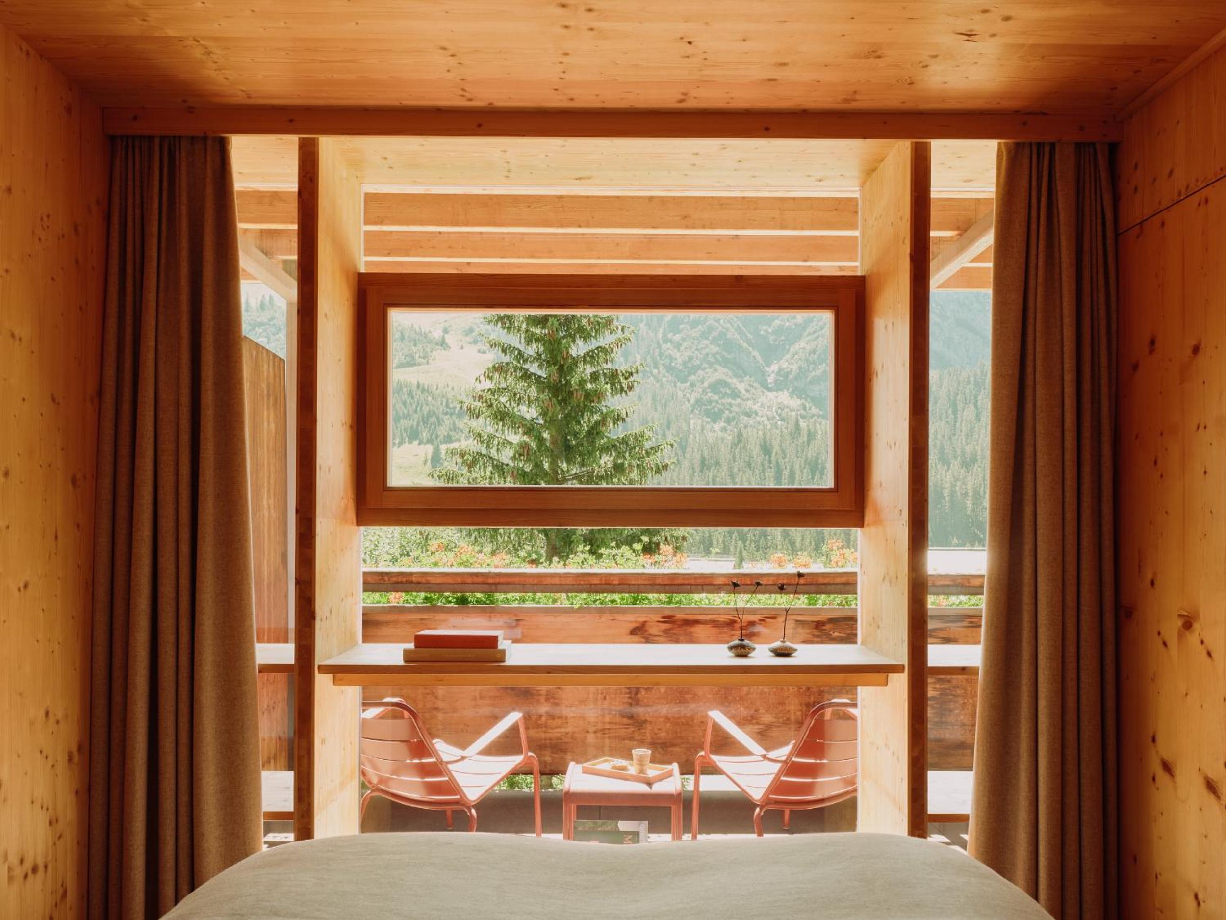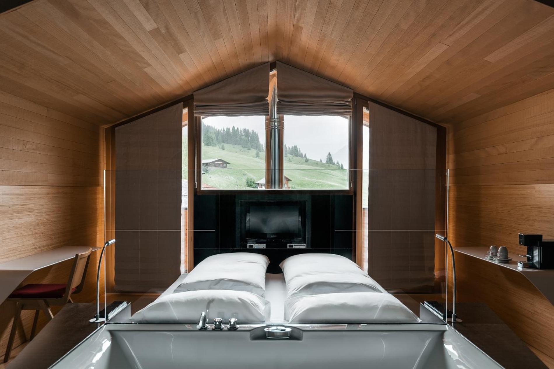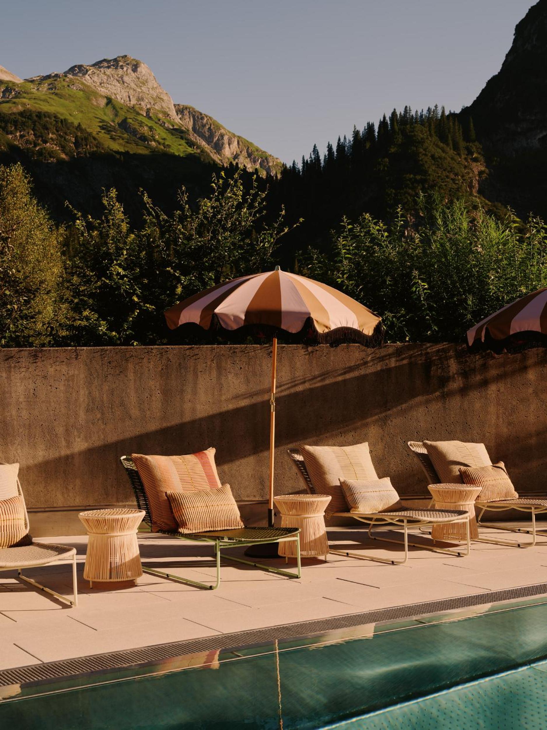 Absolutely stunning location in a valley reachable through a forest from Lech -- magnificent views and fantastic as a base for skiing. We could also park our car during a ski day after checkout. Impeccable service for loading your car & valet. Good facilities, and interesting design. Very "instagrammable", if one cares about that. Great mountain view from the outdoor pool.