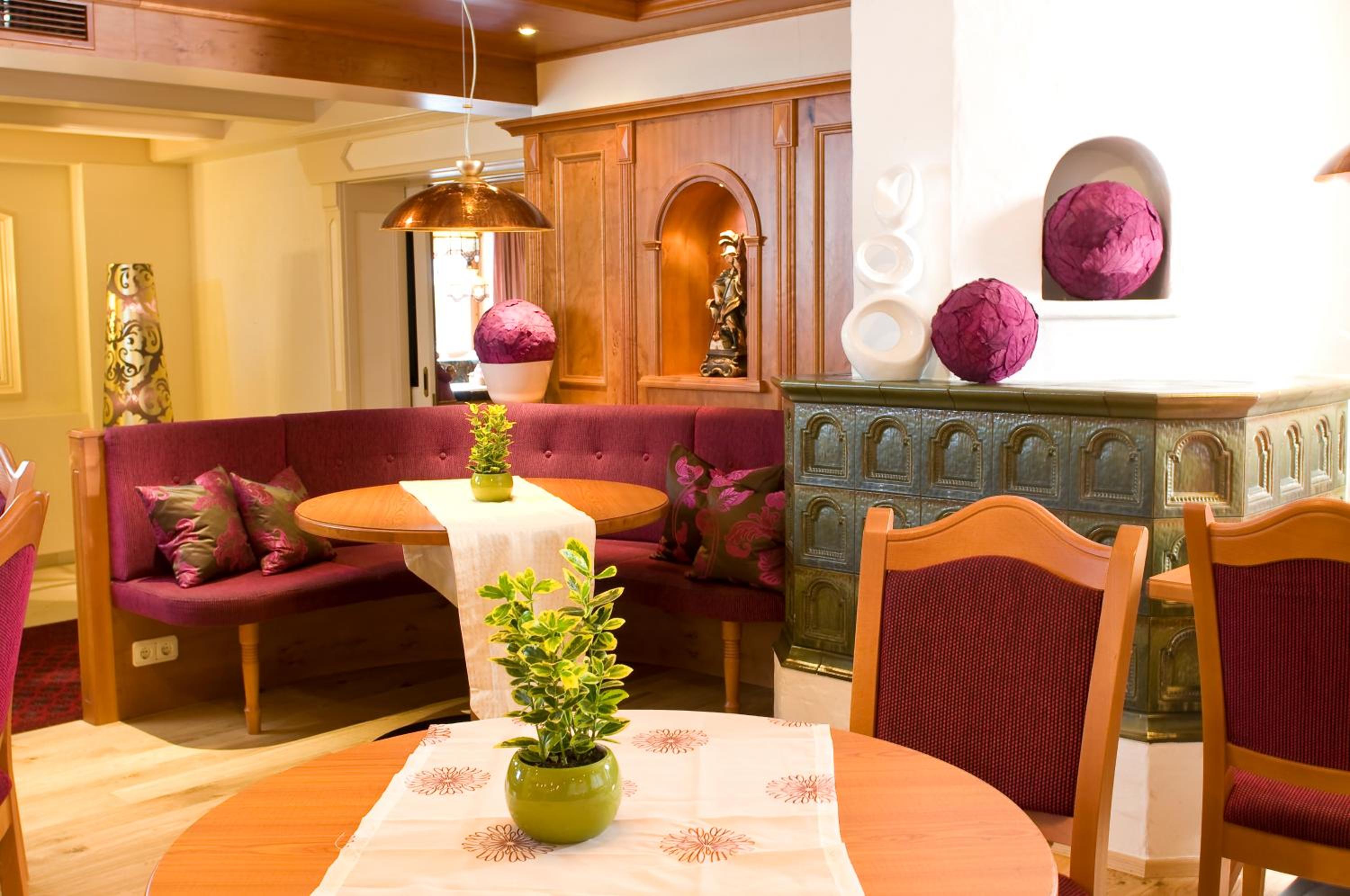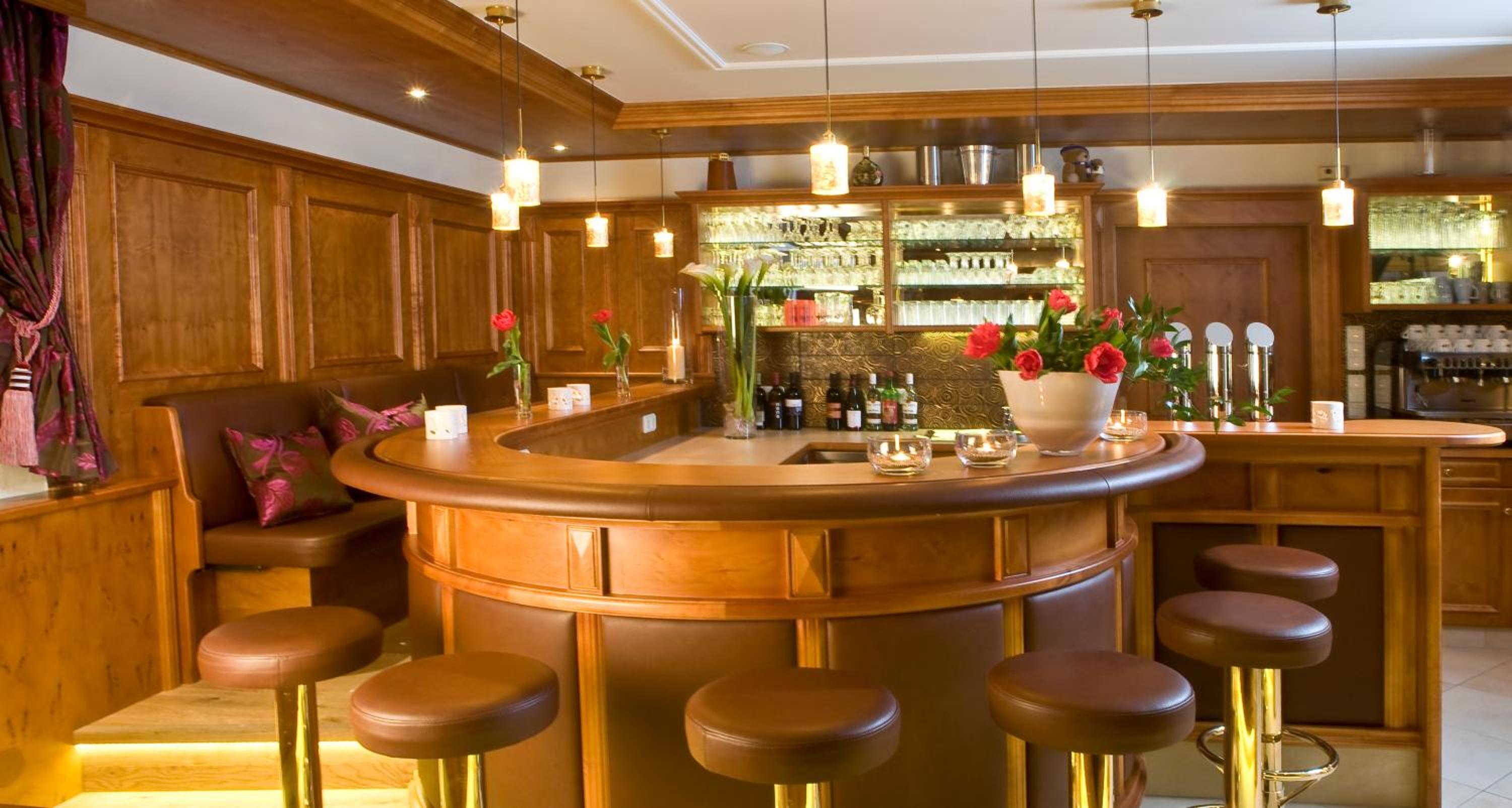 Experience the perfect blend of modern amenities and traditional charm at Hotel Huber Hochland. The bar and dining area exude warmth with wood-paneled walls, tiled stoves, and a cozy fireplace. Guests can also dine al fresco on the terrace and request special diet menus.