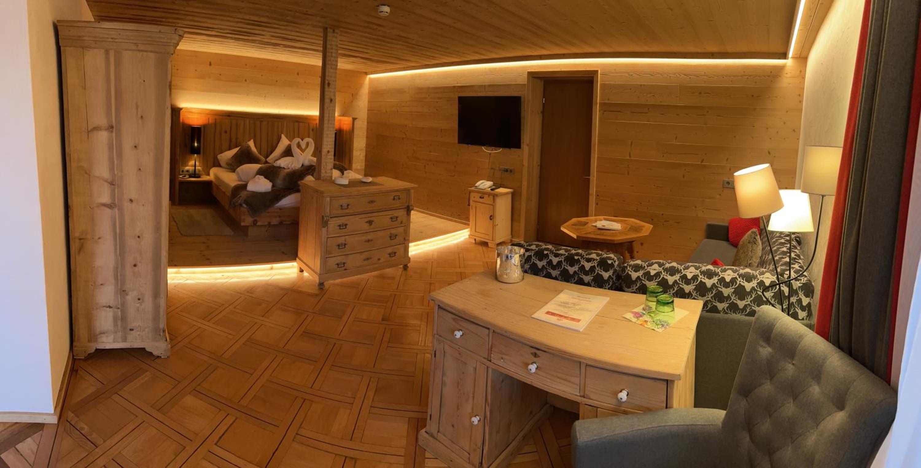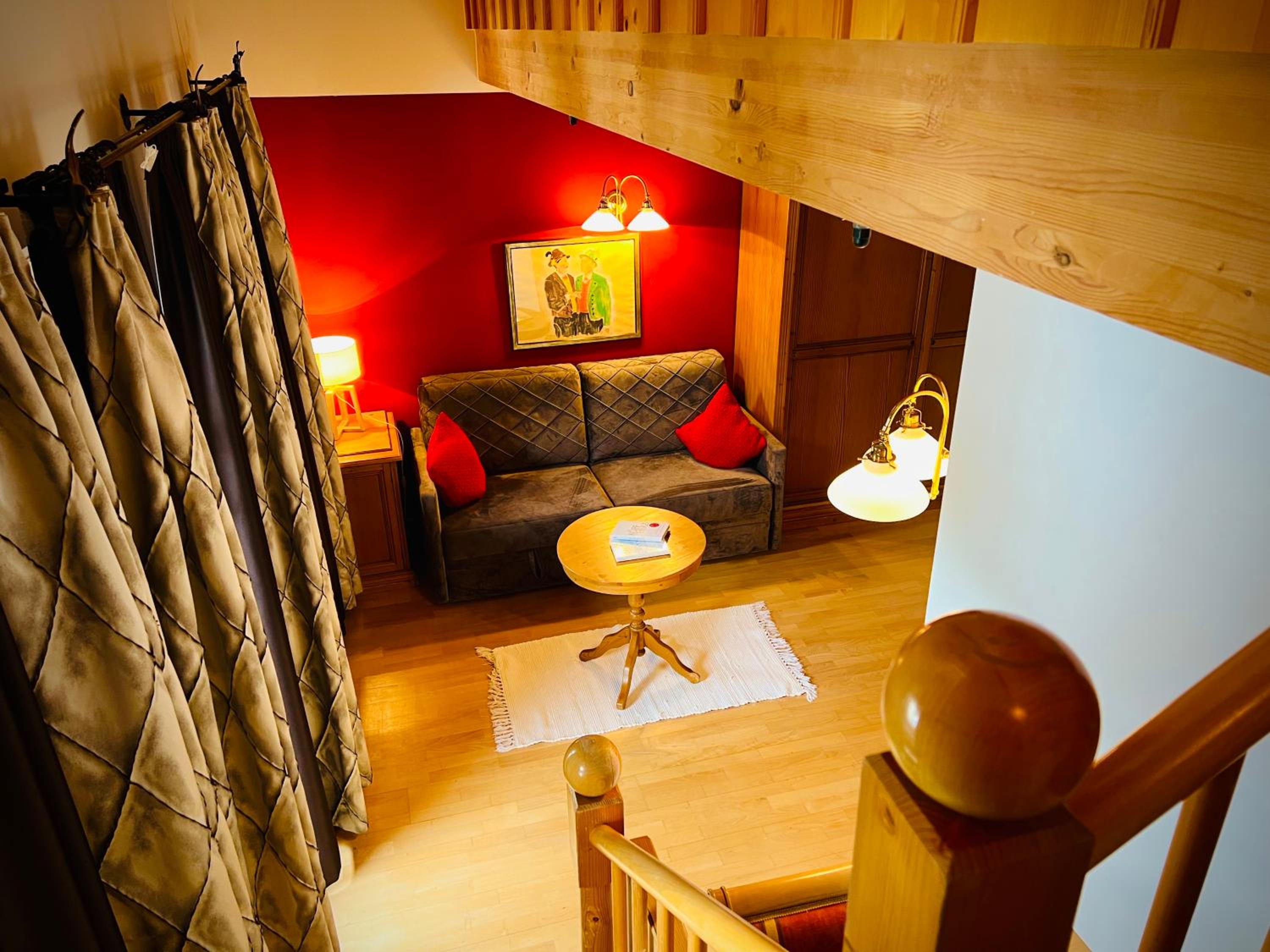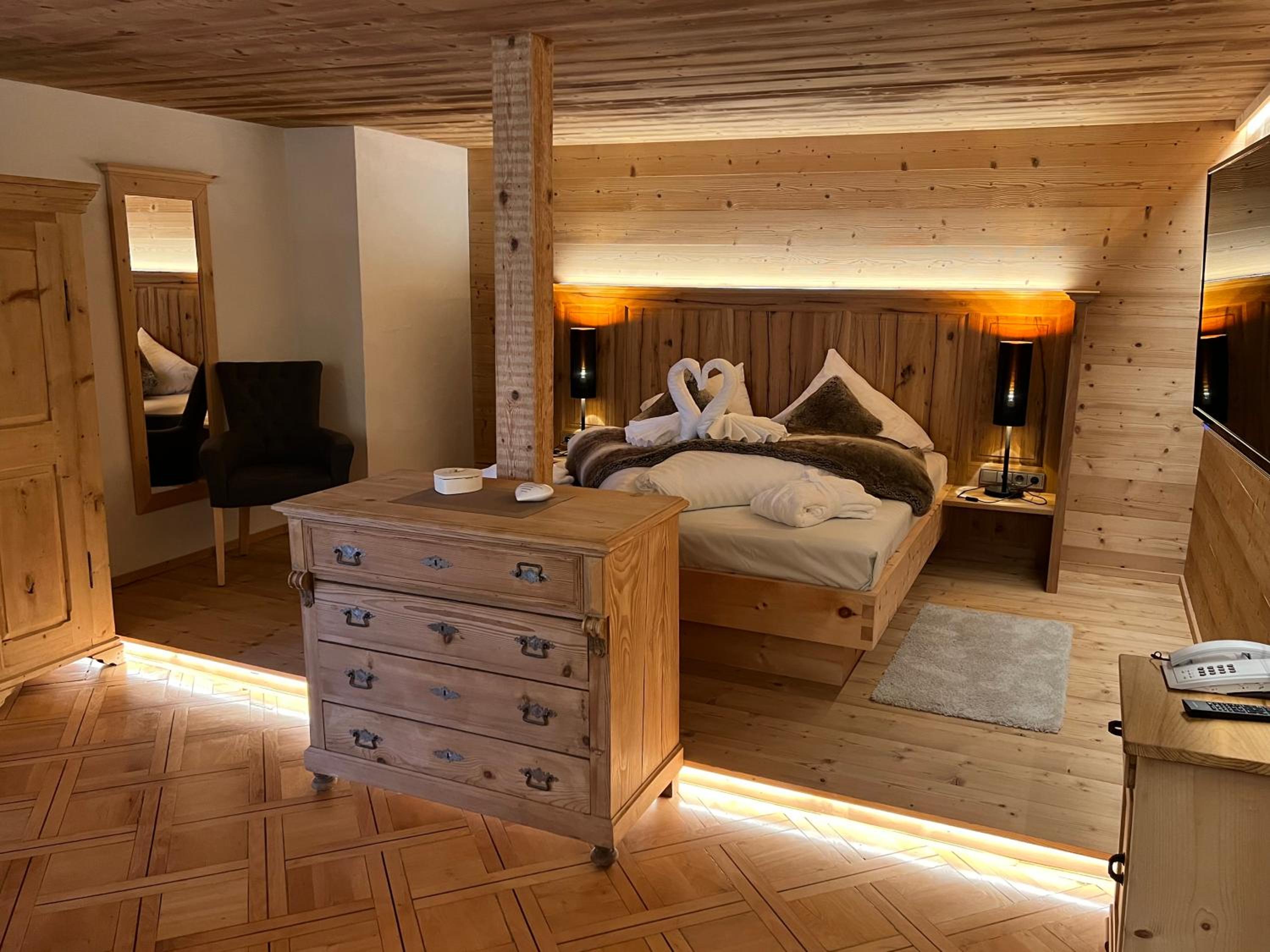 Hervorragendes Essen, freundliche und aufmerksame Bedienung, Zimmer (Maisonette), Möglichkeit auf Zimmerreinigung gegen Getränkegutschein zu verzichten, Saunabereich geschmackvoll eingerichtet