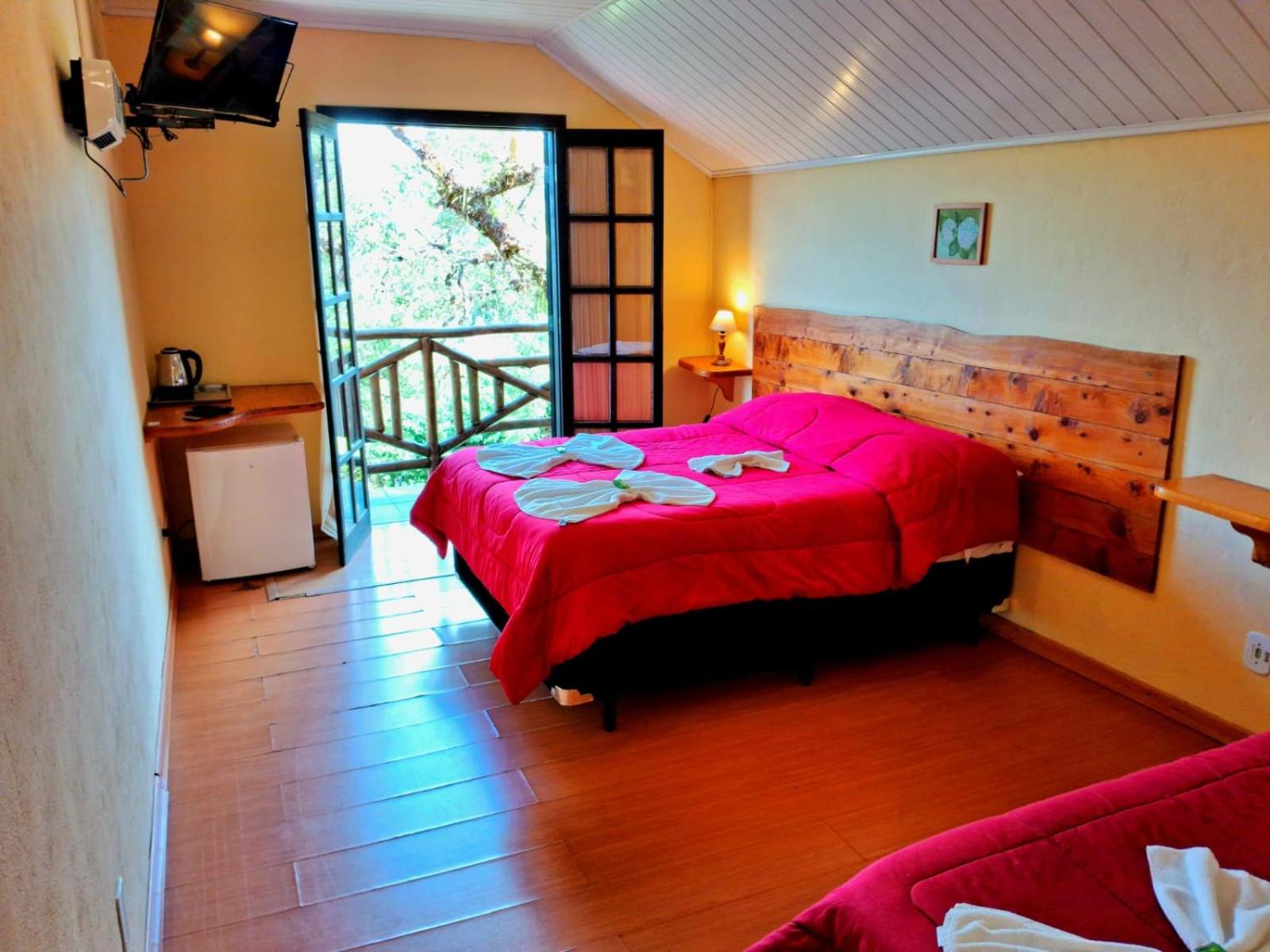 Quarto amplo, varanda com vista, café da manhã muito bom, estacionamento dentro da pousada.