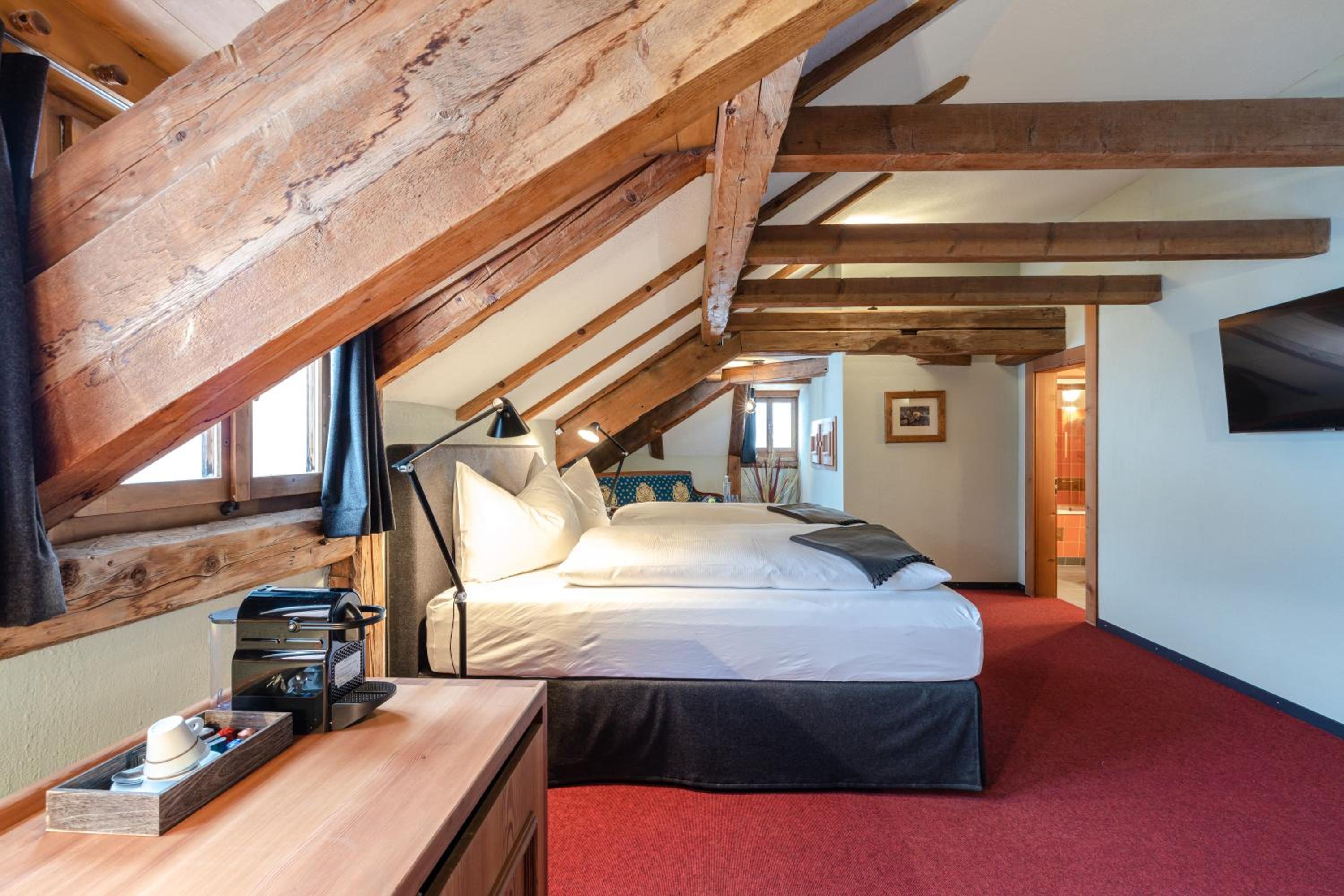Renoviertes historisches Hotel. Sehr freundliches und hilfsbereites Personal. Schönes und grosses Arvenzimmer.