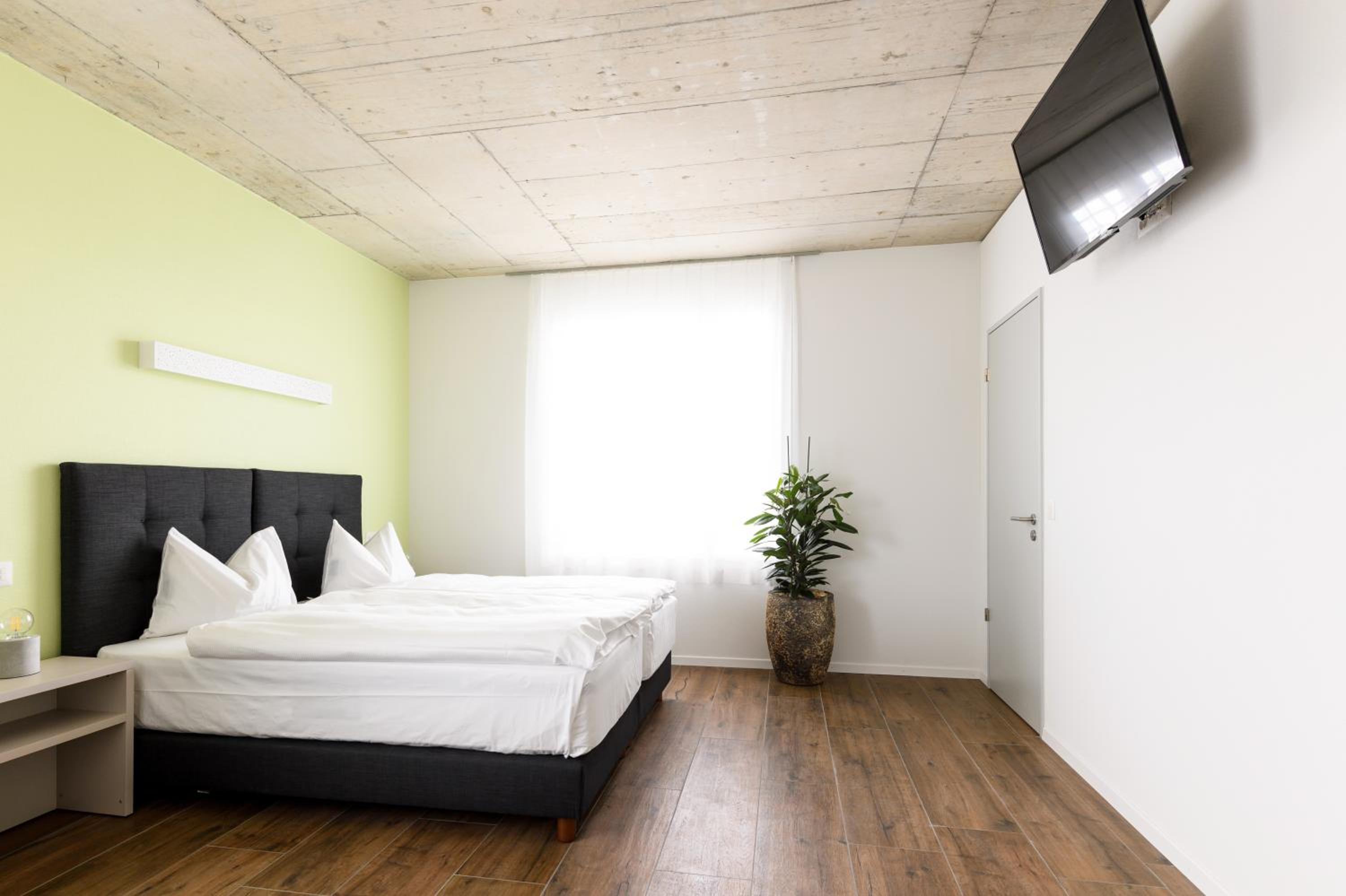 Good size room and shower room-bed comfortable nice views of the hills-quite good choice at breakfast-reasonable for switzerland-suited us for location visiting family-free parking. Friendly personnel