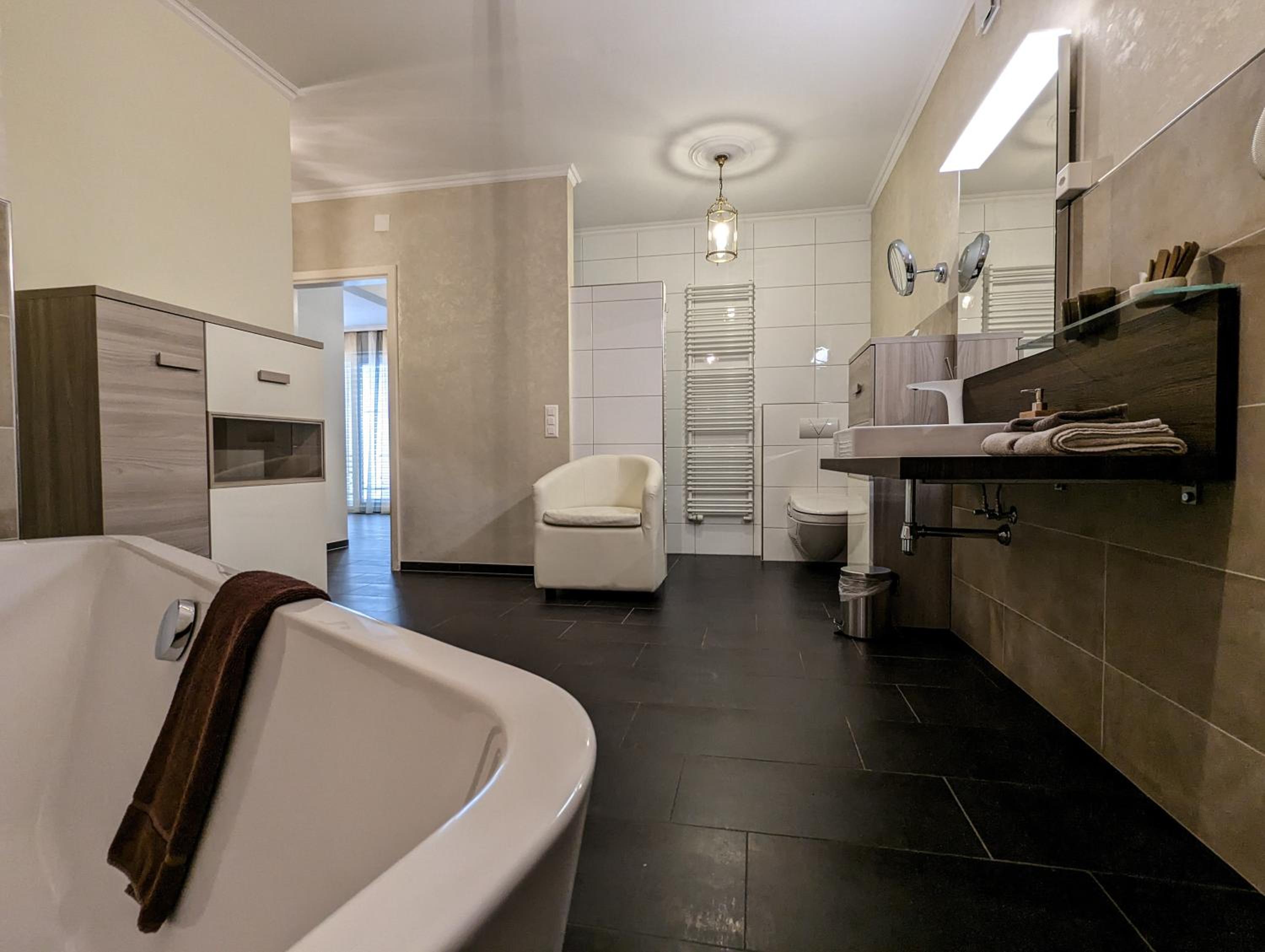 Das Zimmer war sehr geräumig, riesiges Bad sogar mit einem funktionierenden Wasch-WC. Dusche, riesige Badewanne!