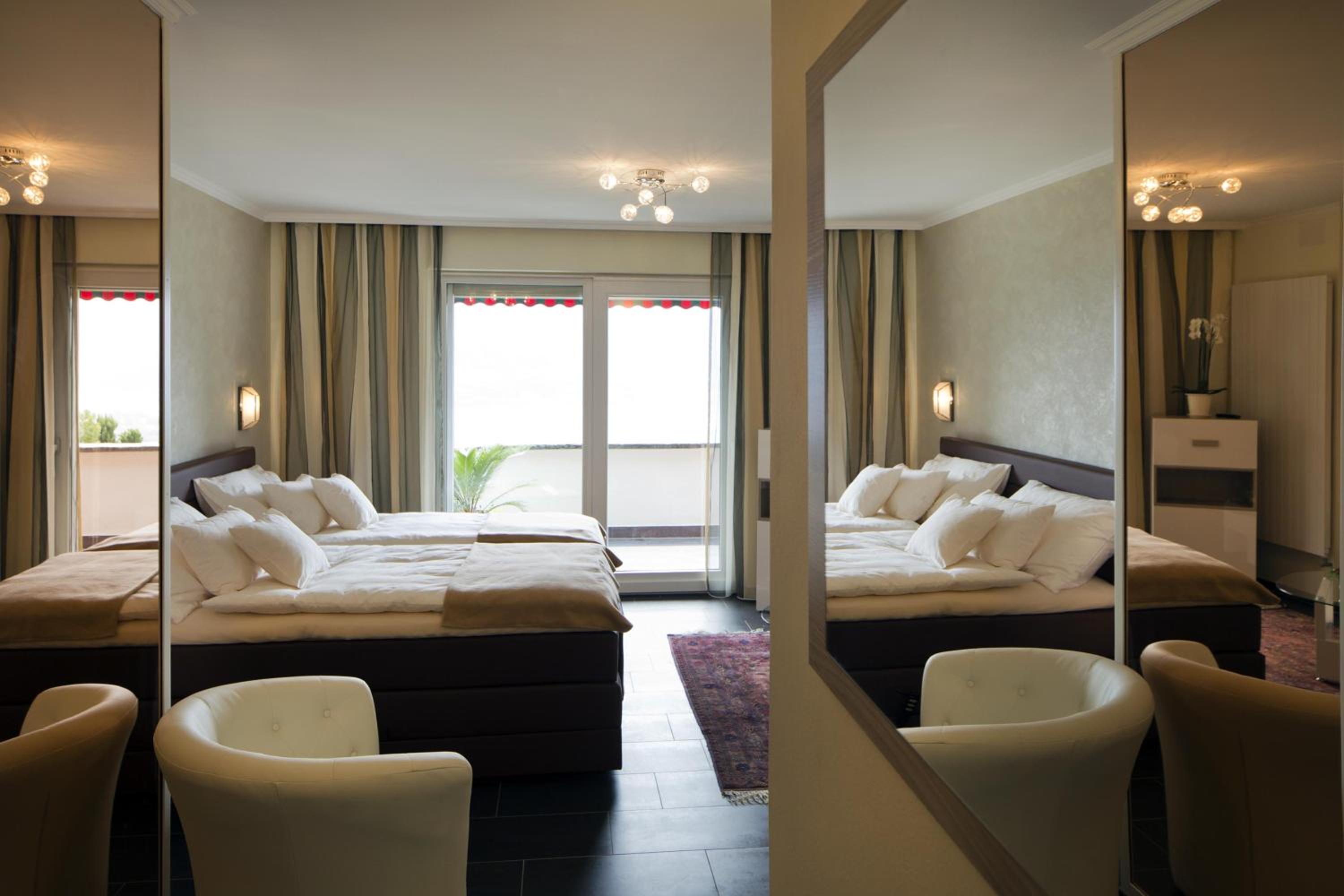 This boutique hotel is in a lovely quiet location overlooking Locarno. The free bus down into town stops right outside & there is a fantastic restaurant next door. The rooms are spacious & well appointed, & our balcony had an amazing view over the lake. The owner & staff were very friendly & helpful. Breakfast buffet was great, with hot options cooked to order. An amazingly relaxing place to stay.