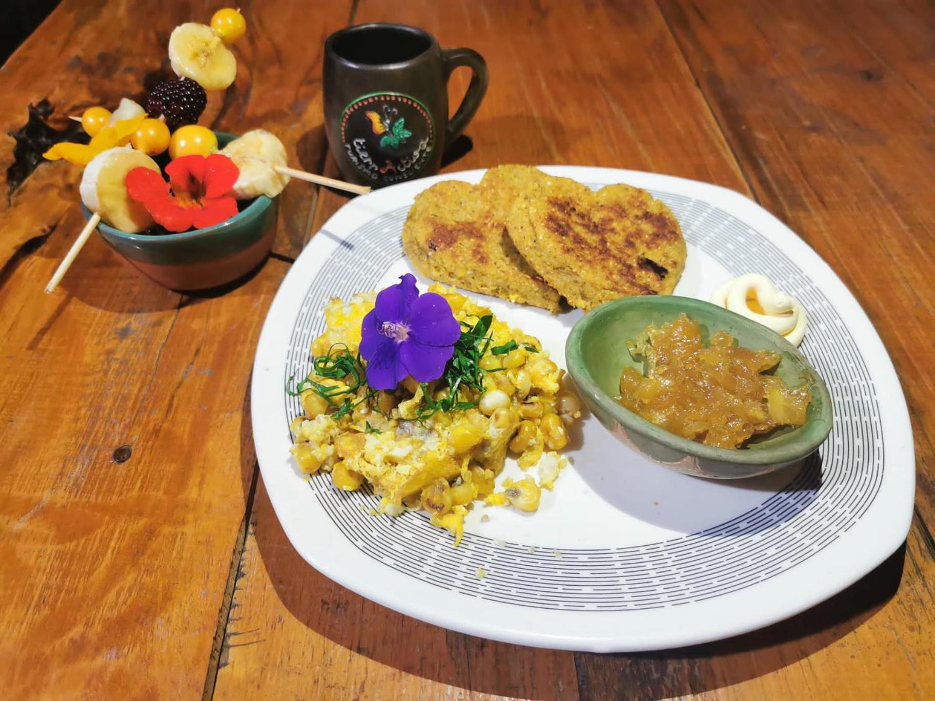Our time at TierrActiva was the highlight of our trip to Colómbia. We were doing some volunteering in the San Agustín area and decided to spend a weekend off at TierrActiva. The hotel was beautiful, impeccably clean, and situated atop the mountain with incredible panoramic views of the surrounding area (there is even a treehouse to enjoy the view from!). Our meals were all absolutely delicious, vegetarian, and created using a wide array of organically grown, indigenous foods from the farm. From the chachafruto that was used to add extra protein to the arepas, to the addition of edible flowers, and the recipes that were 100% created by Yilema herself, you can really feel how much care and love has been put into the experience.