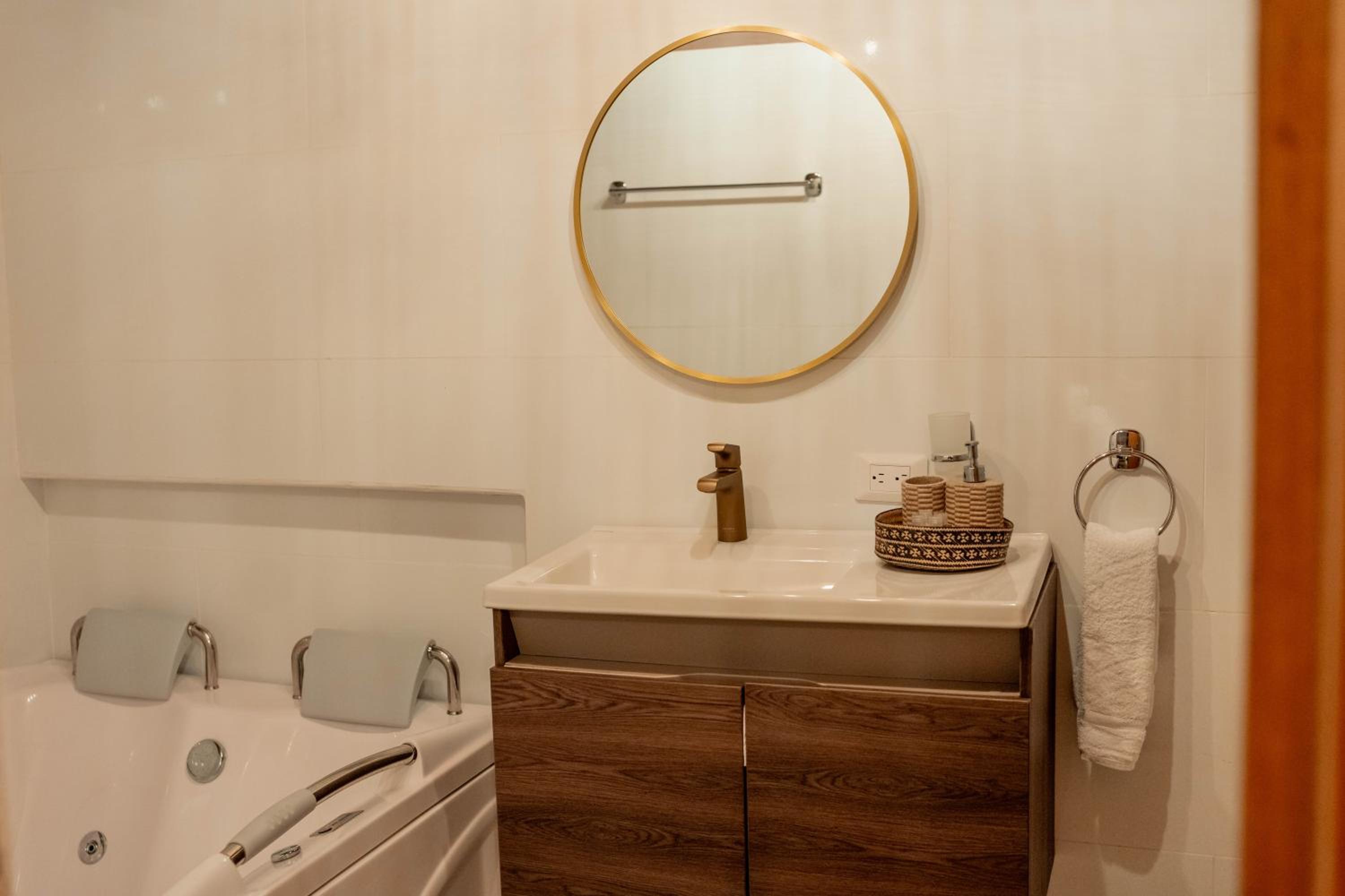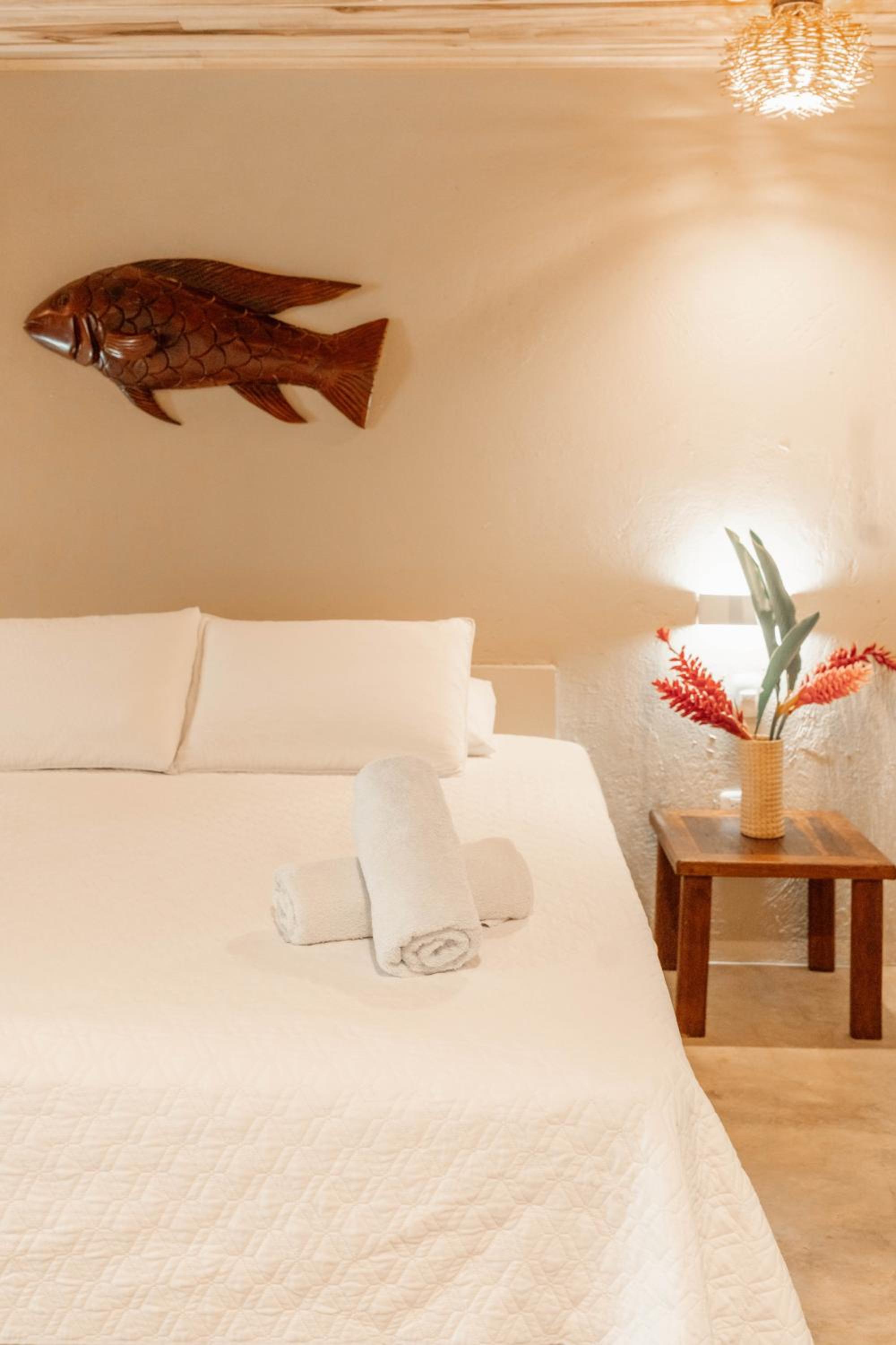 Il Resort è molto carino e il servizio ristorante merita assolutamente una sosta... Colazione alla carta con crêpe e French toast buonissimi, frutta di ottima qualità. Purtroppo nel periodo in cui siamo andati noi era appena passata un'alluvione per cui non abbiamo potuto utilizzare la piscina e l'intero Resort era un po' un cantiere... Questo però non ha compromesso la nostra esperienza e il grande relax nella suite con amaca e terrazzo che abbiamo ricevuto ad un ottimo prezzo. La posizione è molto comoda rispetto al Parco Tayrona e alle spiagge di Los Angeles ( a pagamento, raggiungibile a piedi in pochi minuti) e los cocos (gratuita ma poco segnalata... Comunque di facile accesso a piedi). Letto comodo e bagno spaziosissimo. Erano presenti anche un grande pappagallo e un tenero coniglietto nella proprietà ... Si respirava una bella aria vacanziera! Un plus il parcheggio auto interno