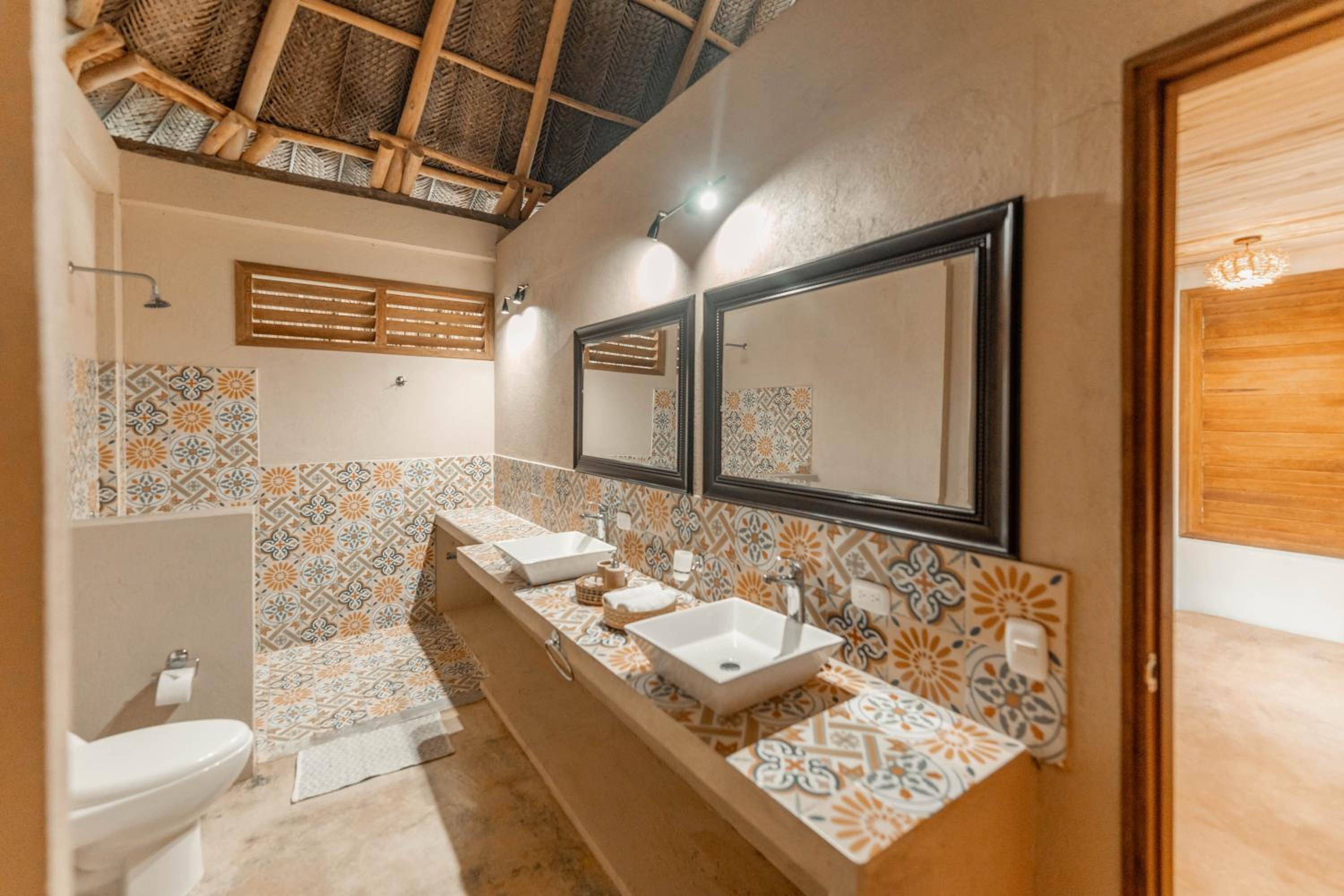 Le bungalow est bien équipé et la salle de bains est très grande.