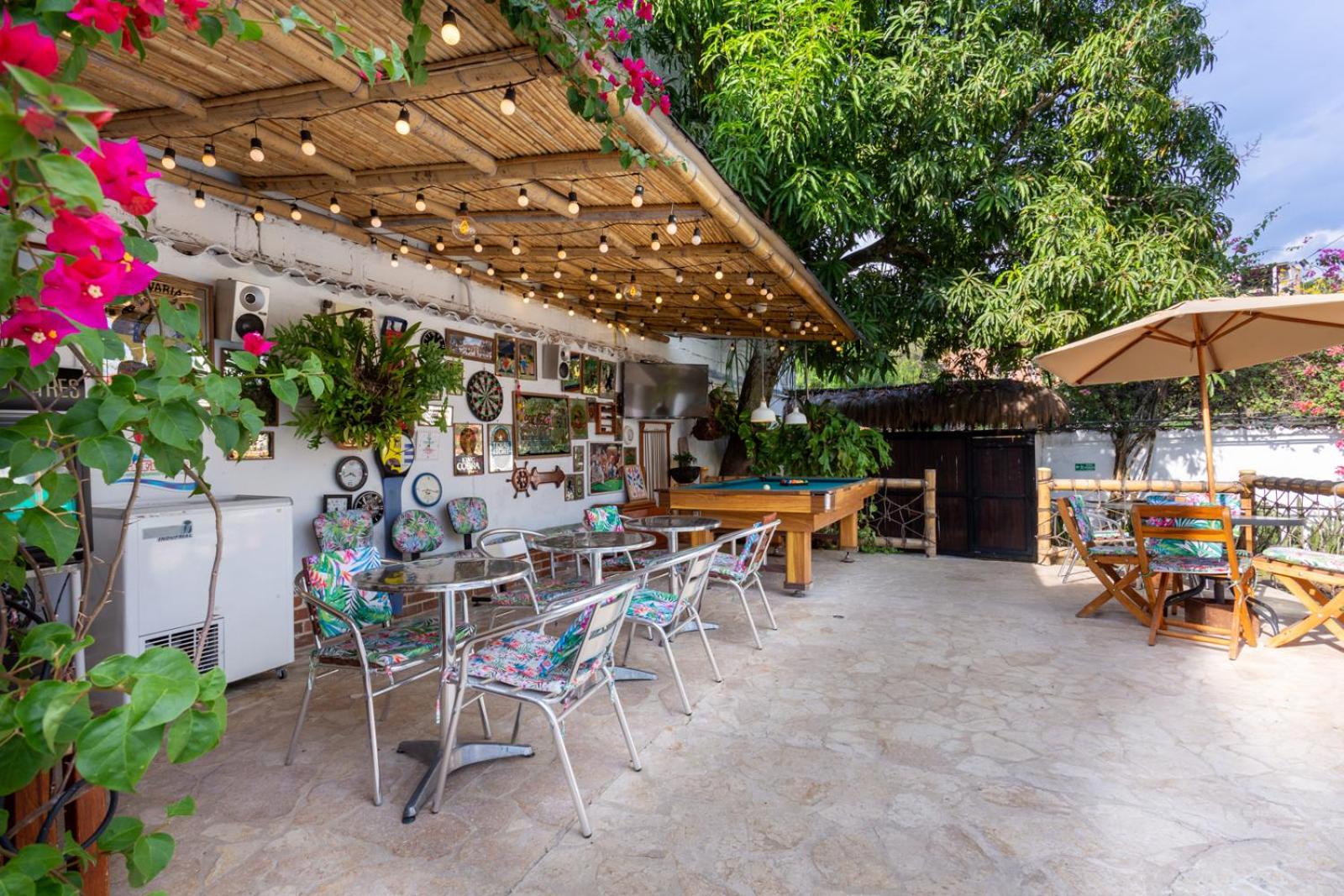 La zona social tiene muchos lugares como sillas , asoleadoras todas con sombrillas para cubrir el sol, la comida rica y la amabilidad del personas y los dueños siempre pendientes.que estuviéramos bien atendidas.