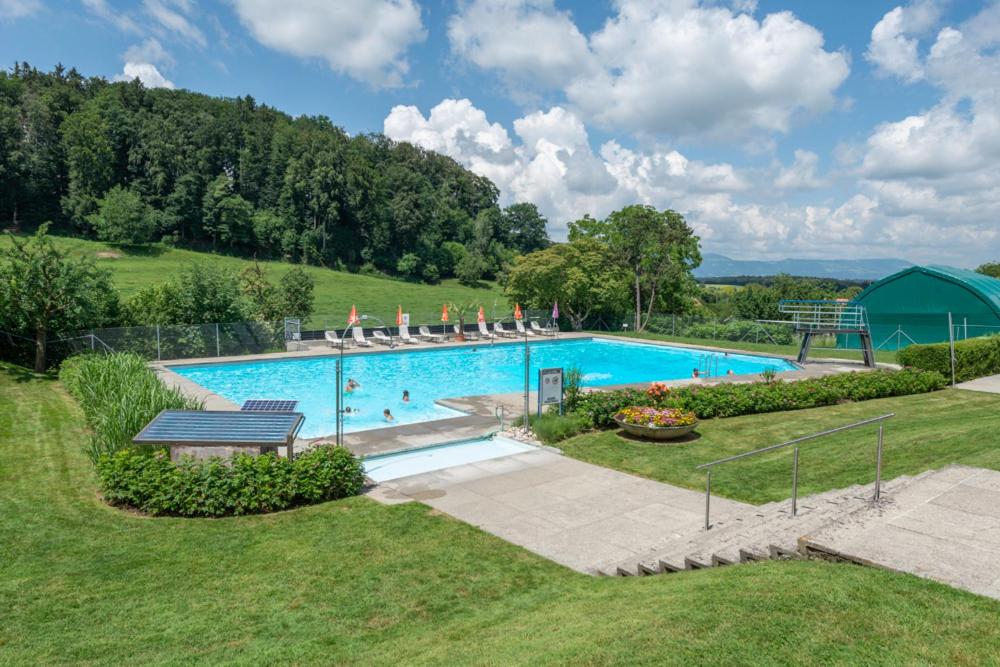 Schöne Lage, mit freiem Zugang zum Freibad als Hotelgast.