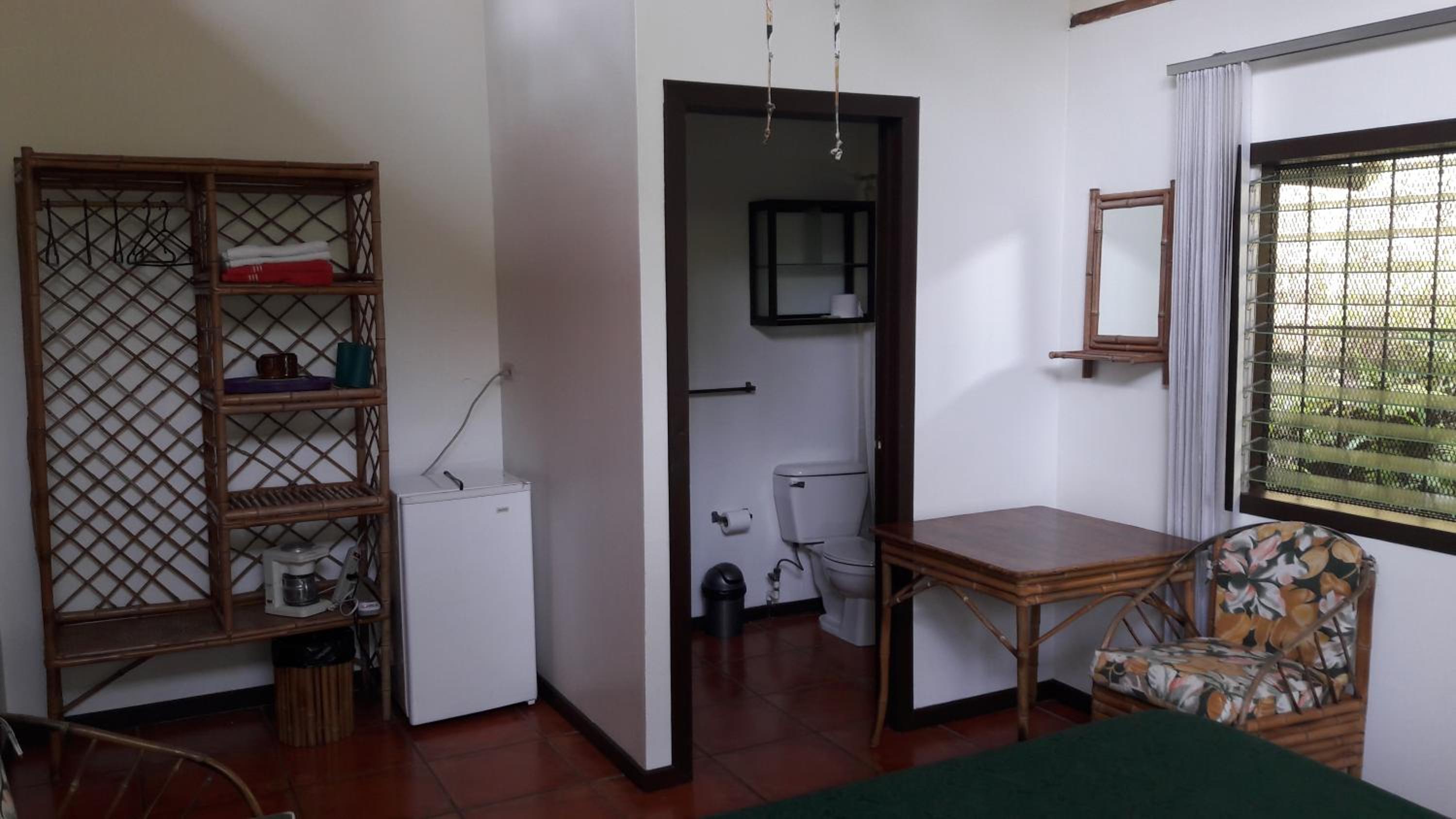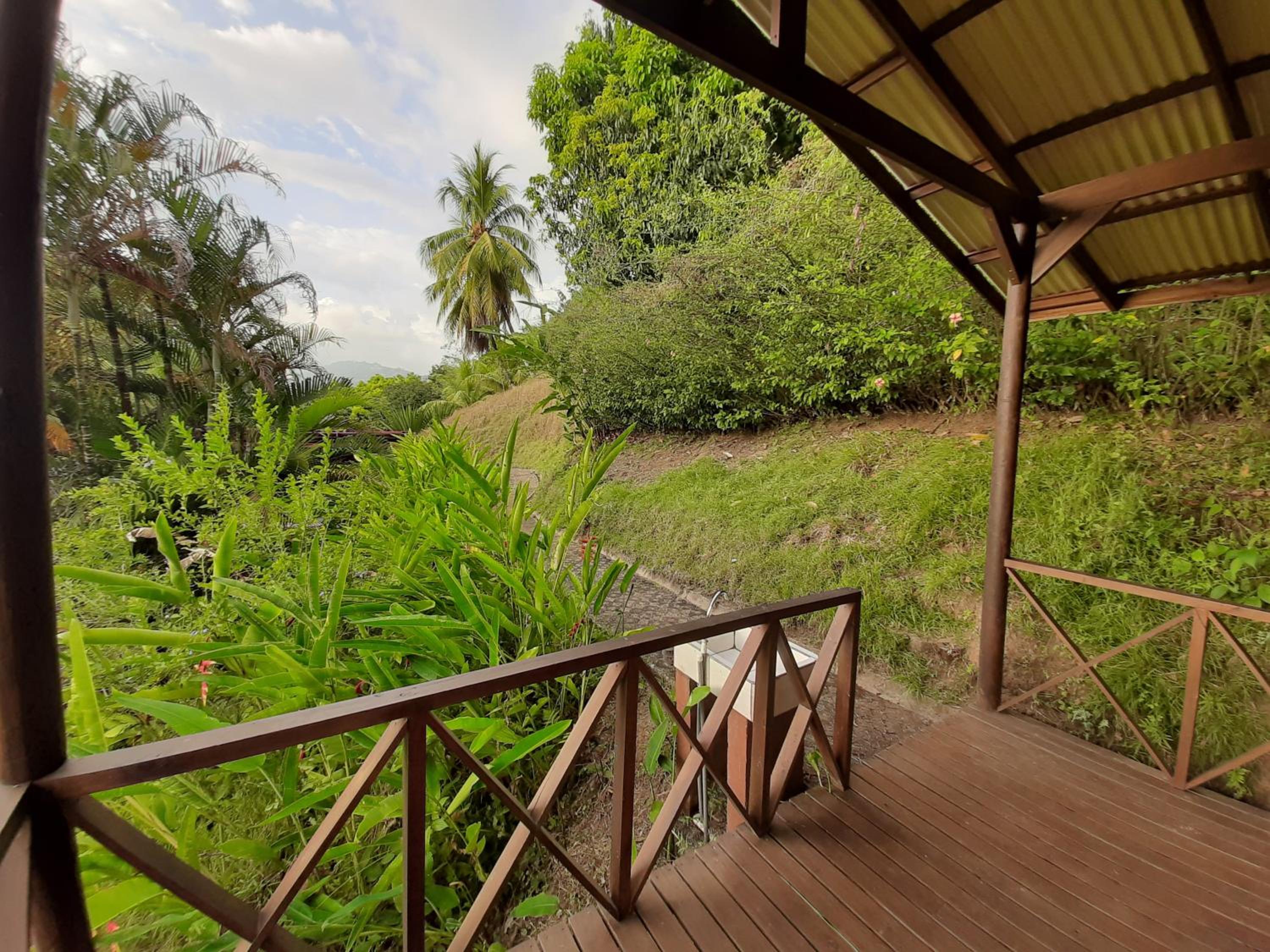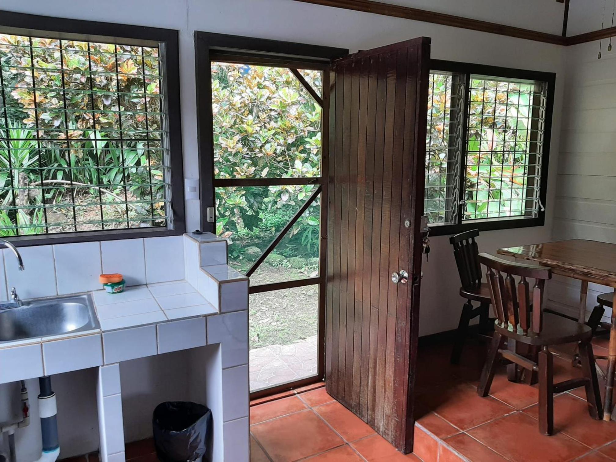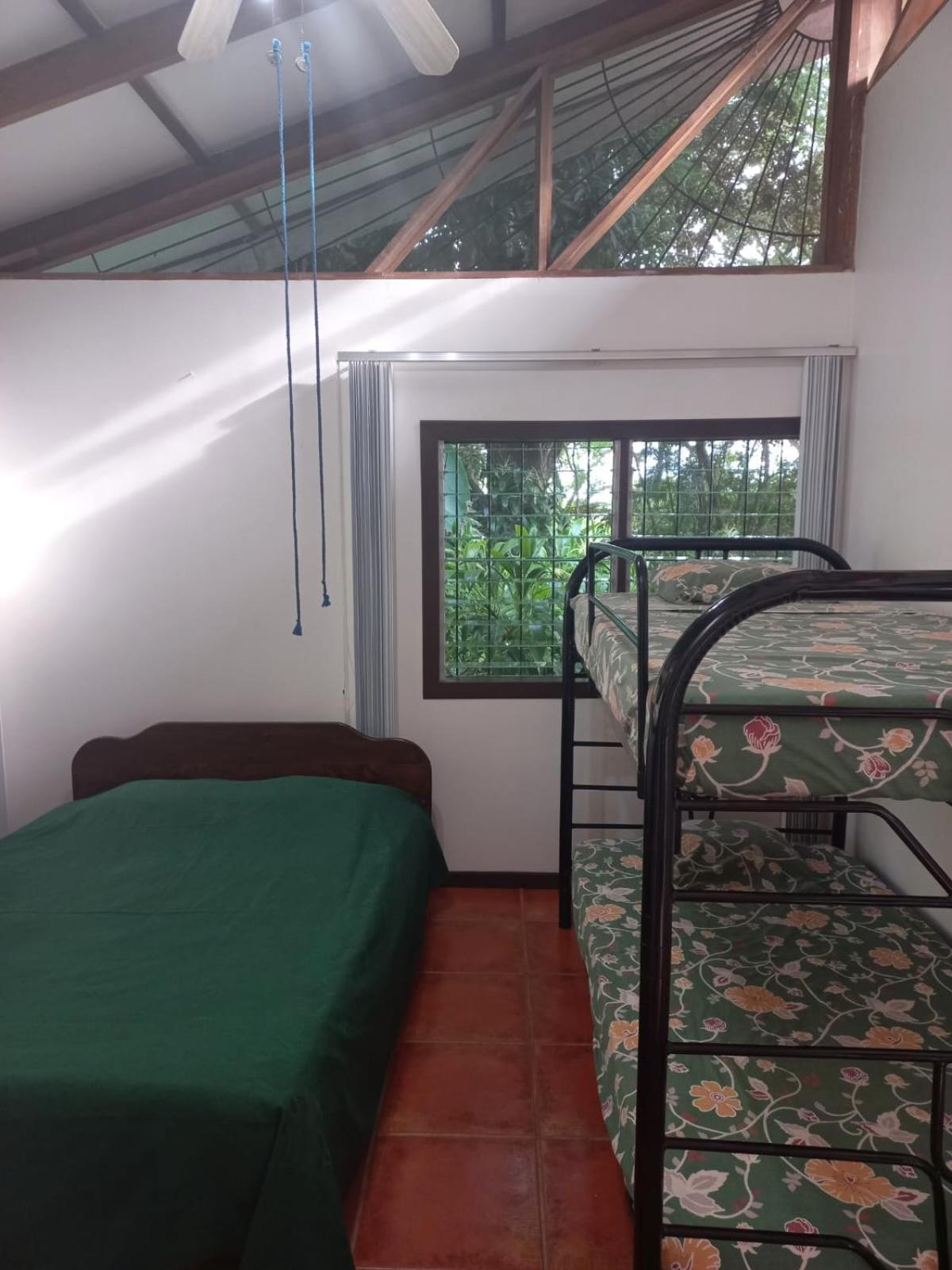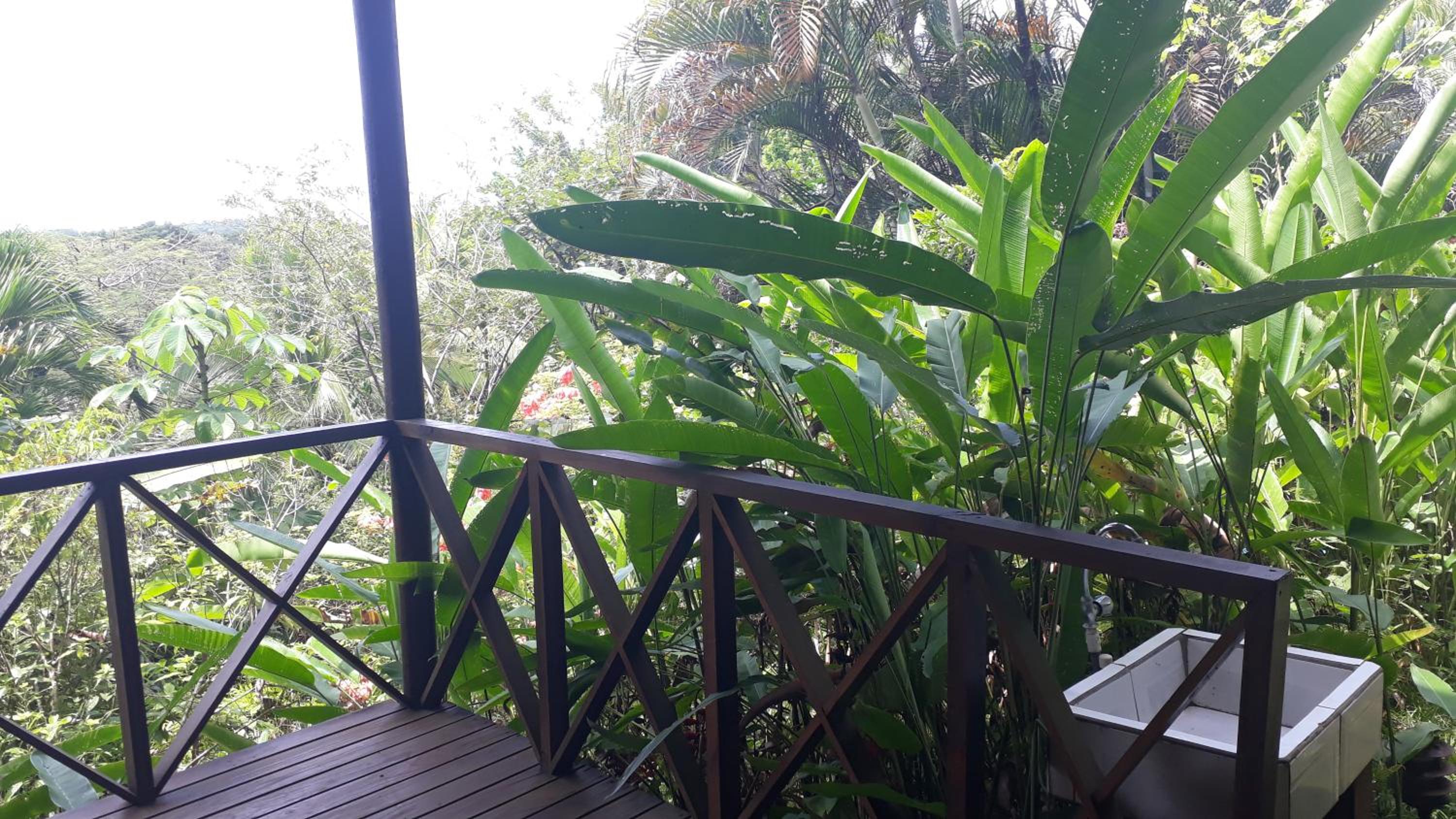 L'environnement ! petits lodges simples et très propres en pleine nature. Bien sûr c'est humide et verdâtre à l extérieur, bien sûr on entend un peu la route, mais les chants des coqs, oiseaux et autres grenouilles l'emporte ! Situation ideale entre le parc des baleines à 20mn et 45mn pour le parc Manuel Antonio. Super petit déjeuner servi en terrasse au milieu de la végétation luxuriante. Très complet et servi avec attention par Bettina. A ceux qui aiment la nature vous y êtes !