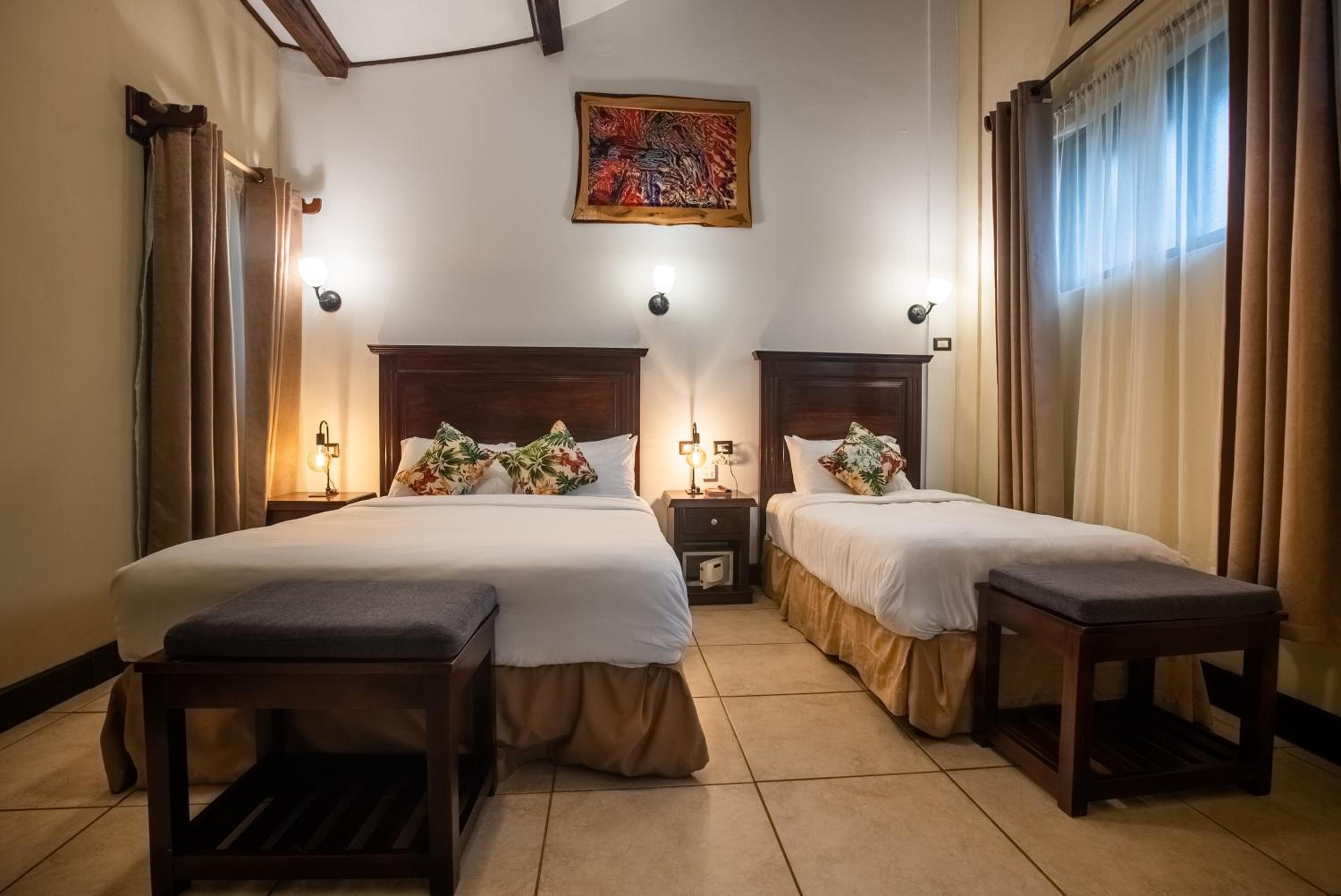 Our room was down a lot of steps and we had a lot of luggage - there was no lift. The property is like a rabbit warren with rooms in all directions. It reminded us of a very grown up, very comfortable hostel. Please don't let that put you off, as we enjoyed our stay. Our room was described as a luxury standard I believe. However it was very small and we had little room to open our suitcases. Arrangements for breakfast could have been explained, as we had to ask other guests. There was a an outside area near to the restaurant that had a stove lit in the evening. Sadly we found it too cold to sit out there as it is very windy and chilly in Monteverde in the evening. The carpark is across the road from the hotel and is locked up at night. It made it difficult to transport luggage backwards and forwards. There is an area down a slope by the hotel where you can stop for a short while, but getting luggage from the car was still tricky.