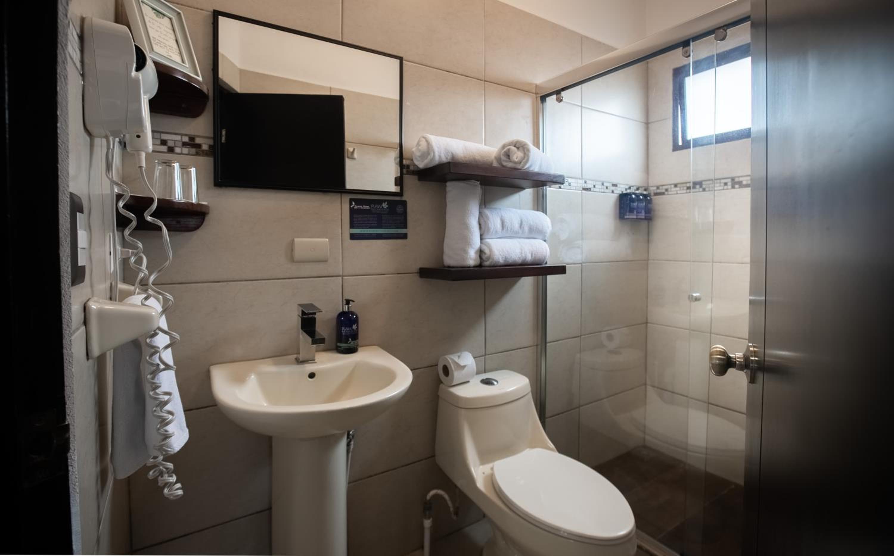 Very friendly and helpful staff, relaxed place to stay with lovely views from the balcony and breakfast room across the green hills towards Monteverde. Tea and coffee available throughout the day. Choice of breakfast options. Did a load of laundry for us ($14). Comfortable room.