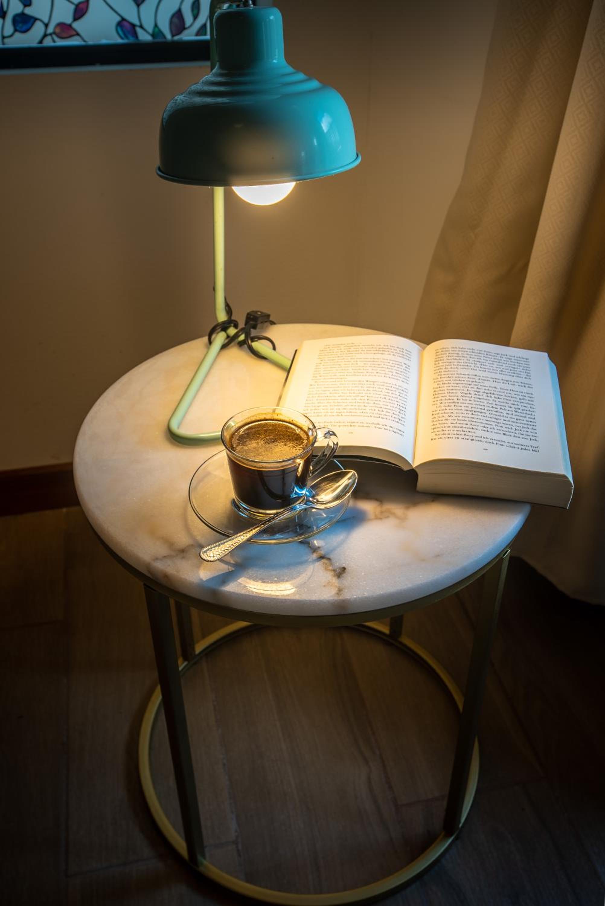 Great welcome from the receptionist when we arrived. She shwoed us to our room and said she could help with any booking that we needed to make too. She showed us to our room which was a nice touch. The bed was comfortable and the shower was really good. Great that they provided all toileteries and a hair dryer. We had a good night's sleep. There was a reading area with sofa outside our room, although it was a little cold there. The communal kitchen was available for guests to use outside of breakfast hours and you werre able to put items in the communal fridge - at your own risk and it was very full. There were restaurants within walking distance, including a very good pizza restaurant, which was almost on the doorstep and would also do a takeaway - which you could eat at one of the restaurant tables. Town was really close by too. We had put some wine in the fridge and played a game after dinner - it was fun. Breakfast - there was a choice and it was freshly made, with table service.