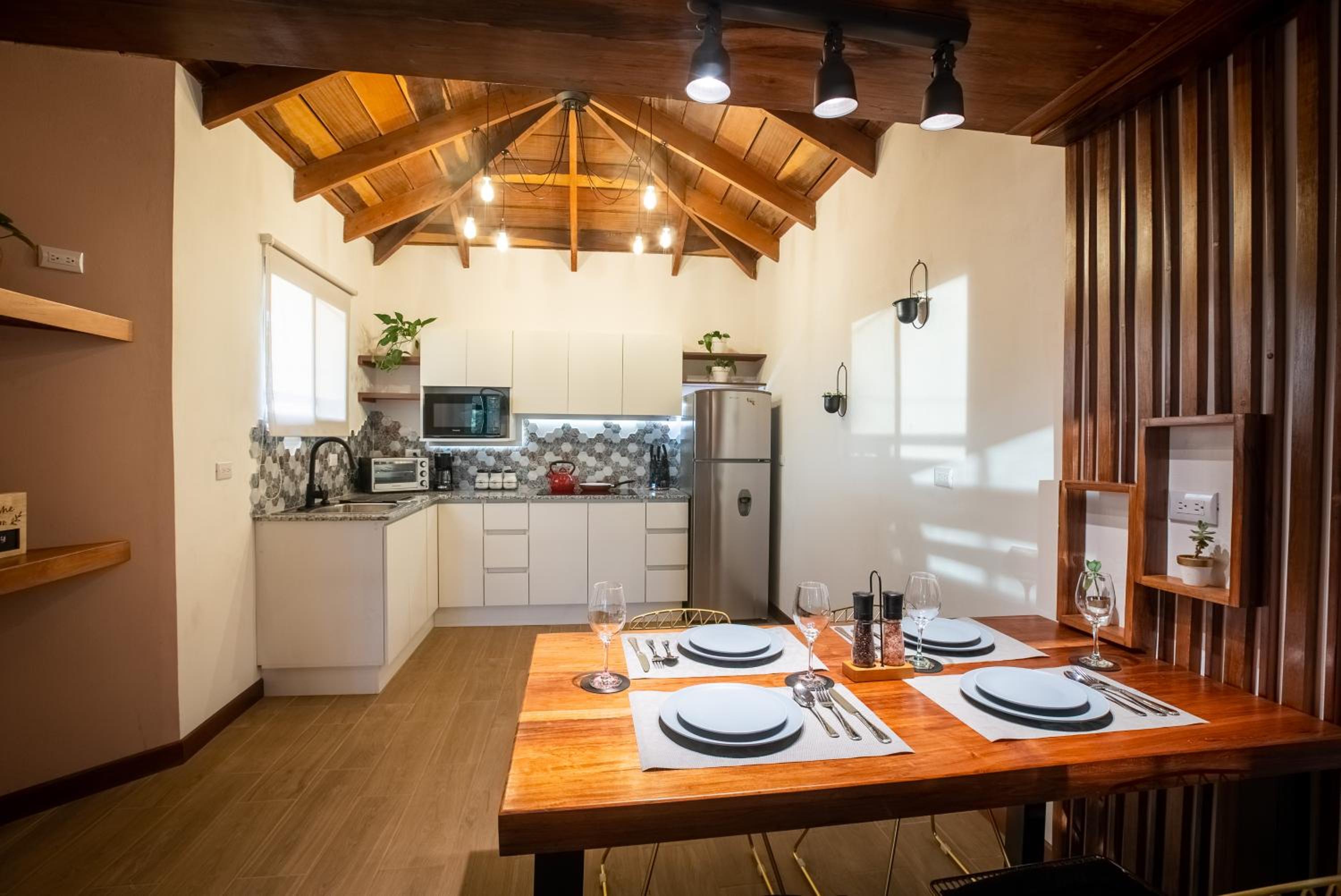 Guests can enjoy the convenience of a communal kitchen with satellite TV, complimentary tea and coffee all day long. The friendly staff is also on hand to assist with organizing excursions to Monteverde Cloud Forest and offering guidance on activities like ziplining.