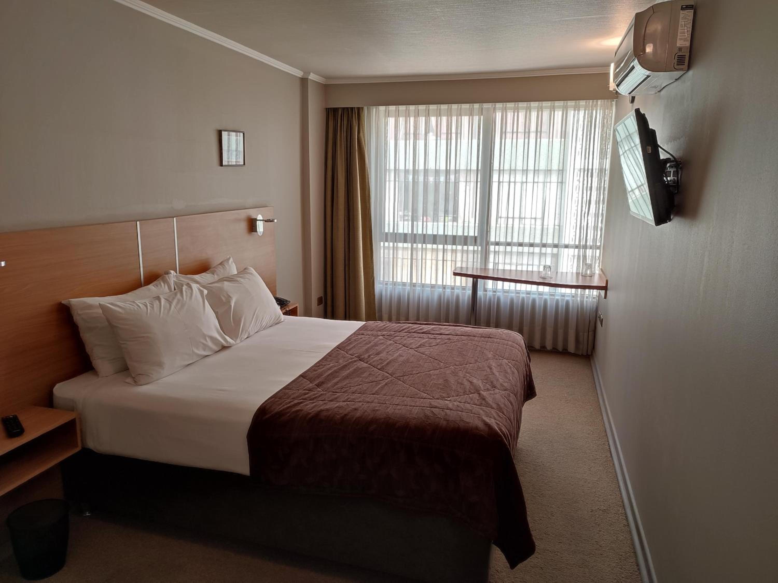 Al llegar la recepcionista no fue del todo amable, me pregunta cuándo hice la reserva y yo no lo recordaba a lo que responde - "le pregunto porque aquí no la tengo" en un tono displicente. El control remoto estaba con pilas descargadas, tuve que bajar a que le cambiaran las pilas. Desayuno ok, aceptable pero poco variado y opcionales (no de pago) huevo o palta, nunca ambos. El aire acondicionado daba justo en frente de la cama, entonces o pasaba mucho frio o mucho calor y no pasaba por un tema de regular la salida, simplemente no se podía, la cama dura por lo que no fue del todo reparador el descanso. La relación precio calidad es válida, porque por lo pagado no es válido esperar más comodidades. El precio Booking no fue respetado, era de USD66 y me cobraron USD71,6 ($65.700 al 05/12/2025). La diferencia de precio no es por el IVA porque los USD66 de Booking ya lo incluía. Si bien no es terrible lo vivido, en mi experiencia es un Hotel que "no está mal por lo pagado", pero que no volvería a ir.