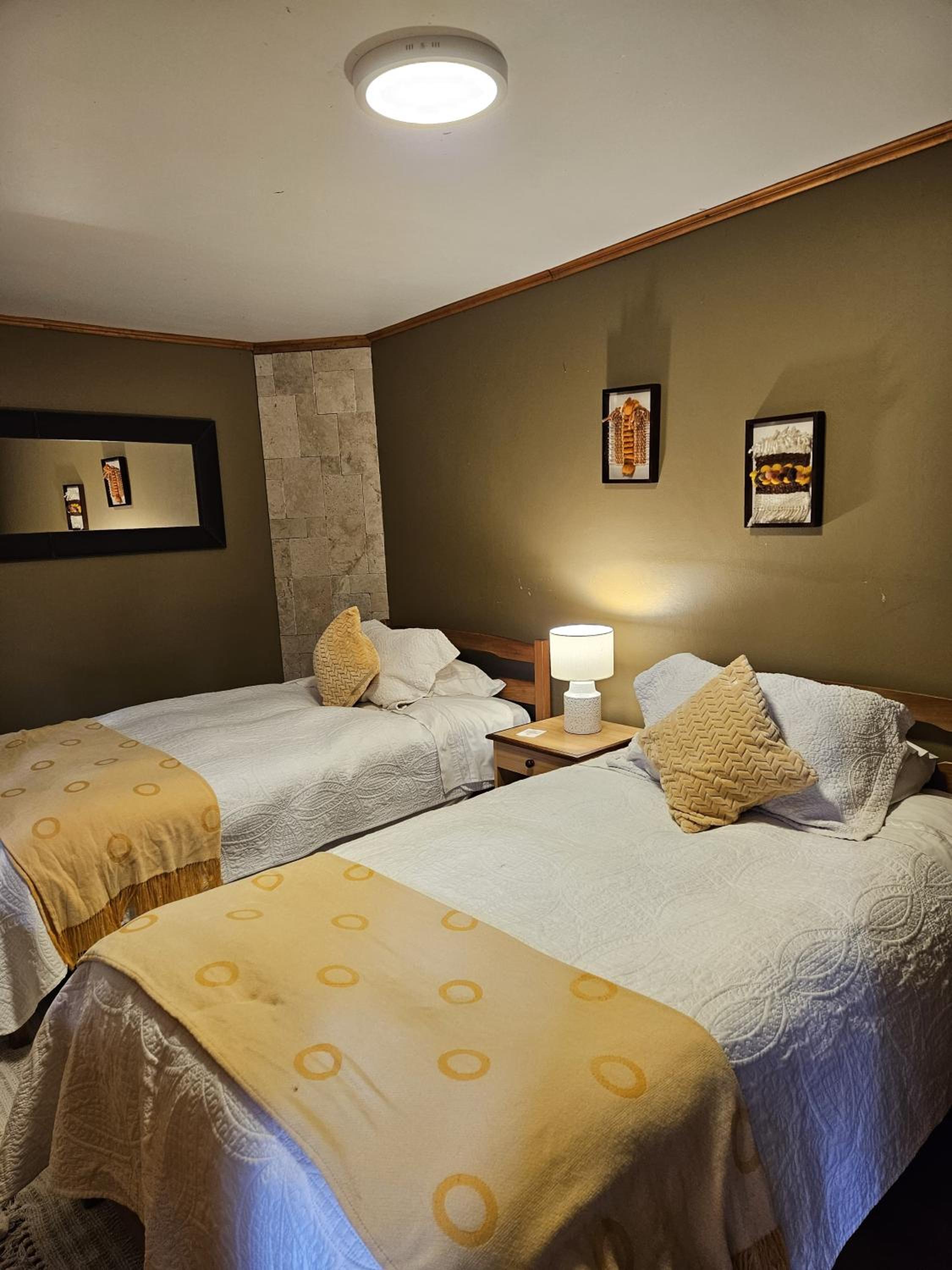 Mucho ruido, había un pájaro que estaba en el patio que era muy ruidoso, al llegar me indicaron que era “indefenso”, al parecer sabían que estaba habitando el jardín. La ropa de cama no era adecuada a la estación, más bien esta habilitada para temperaturas más heladas, es necesario disponer de frazadas o cobertores más ligeros.