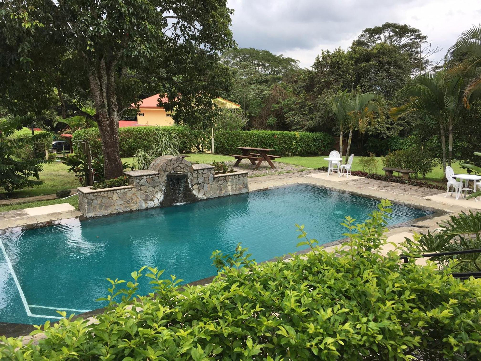 Après une nuit difficile ailleurs, nous avons trouvé le paradis à Hacienda El Rodeo ! Cet endroit est tout simplement merveilleux : une vraie hacienda costaricienne authentique, entourée de jardins magnifiques, avec une piscine superbe et une ambiance ultra reposante. Pas un bruit de route ou de circulation – juste le chant des oiseaux et la tranquillité absolue. Idéal pour se détendre.