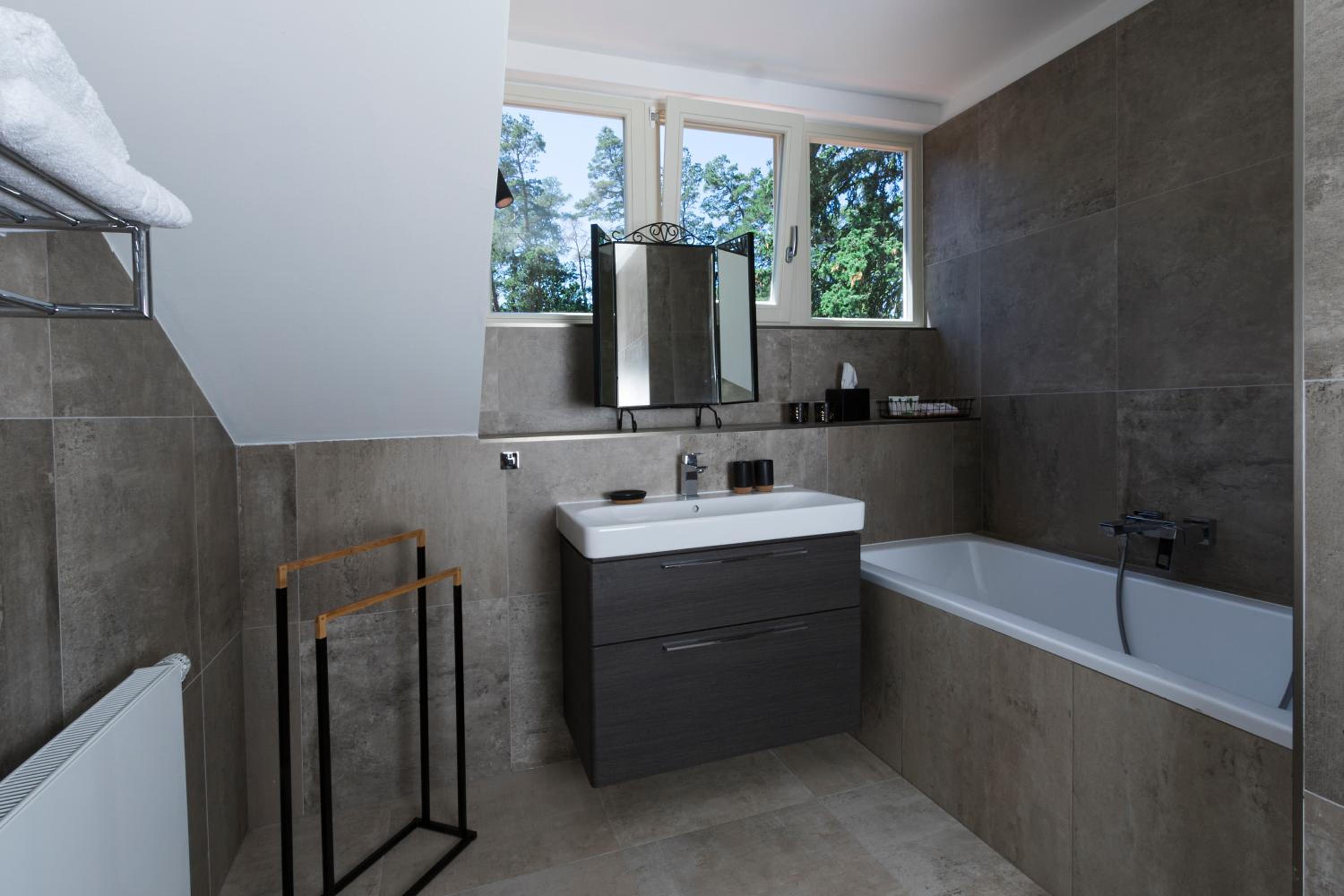 Kamerindeling met bovenetage viel tegen door de steile wenteltrap. Matige constructie en leidt makkelijk tot ongevallen. Badkamer is voldoende.