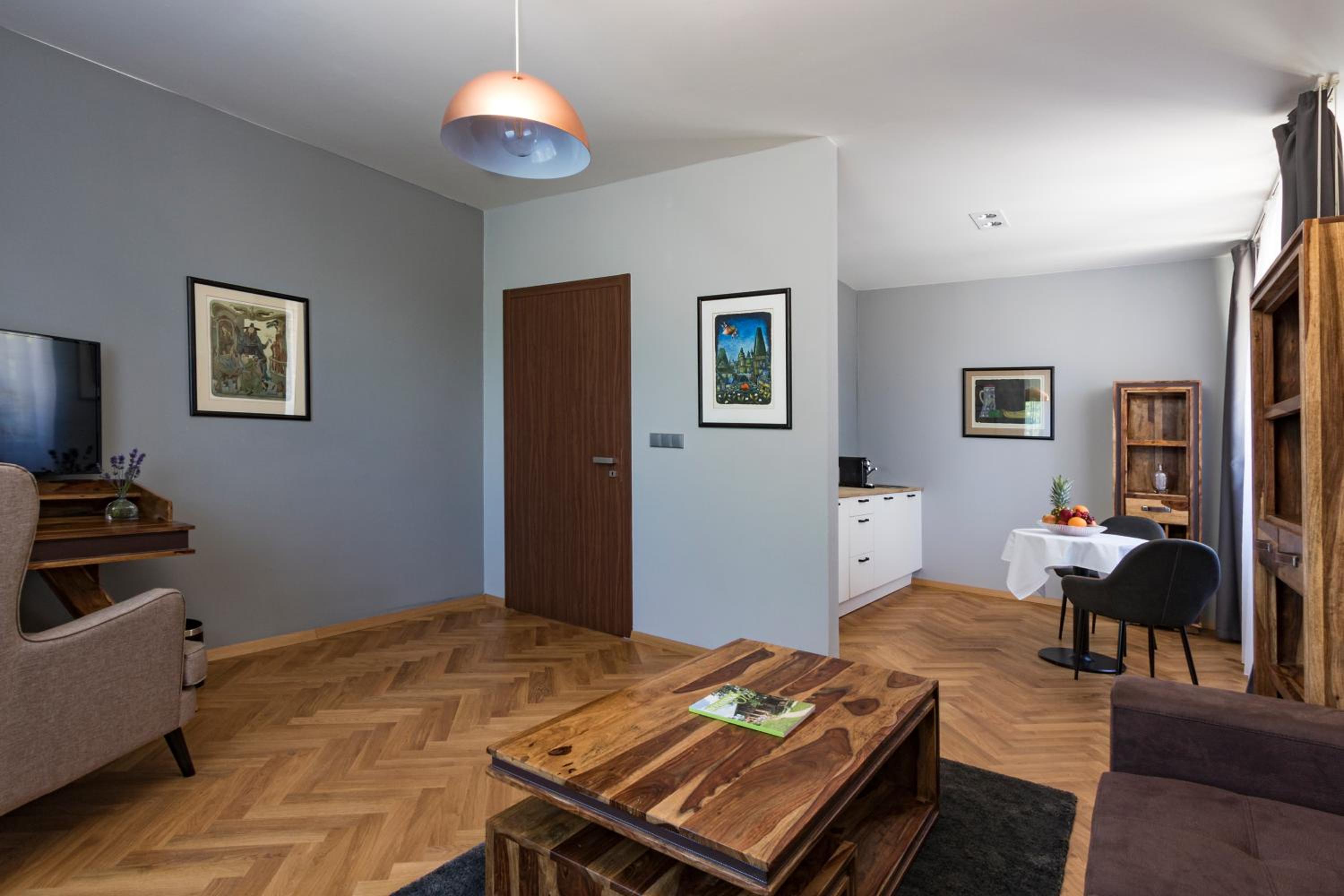 Experience comfort and style at Areal Botanika, offering elegantly designed rooms with modern amenities including private bathrooms, TVs, and cozy seating areas.