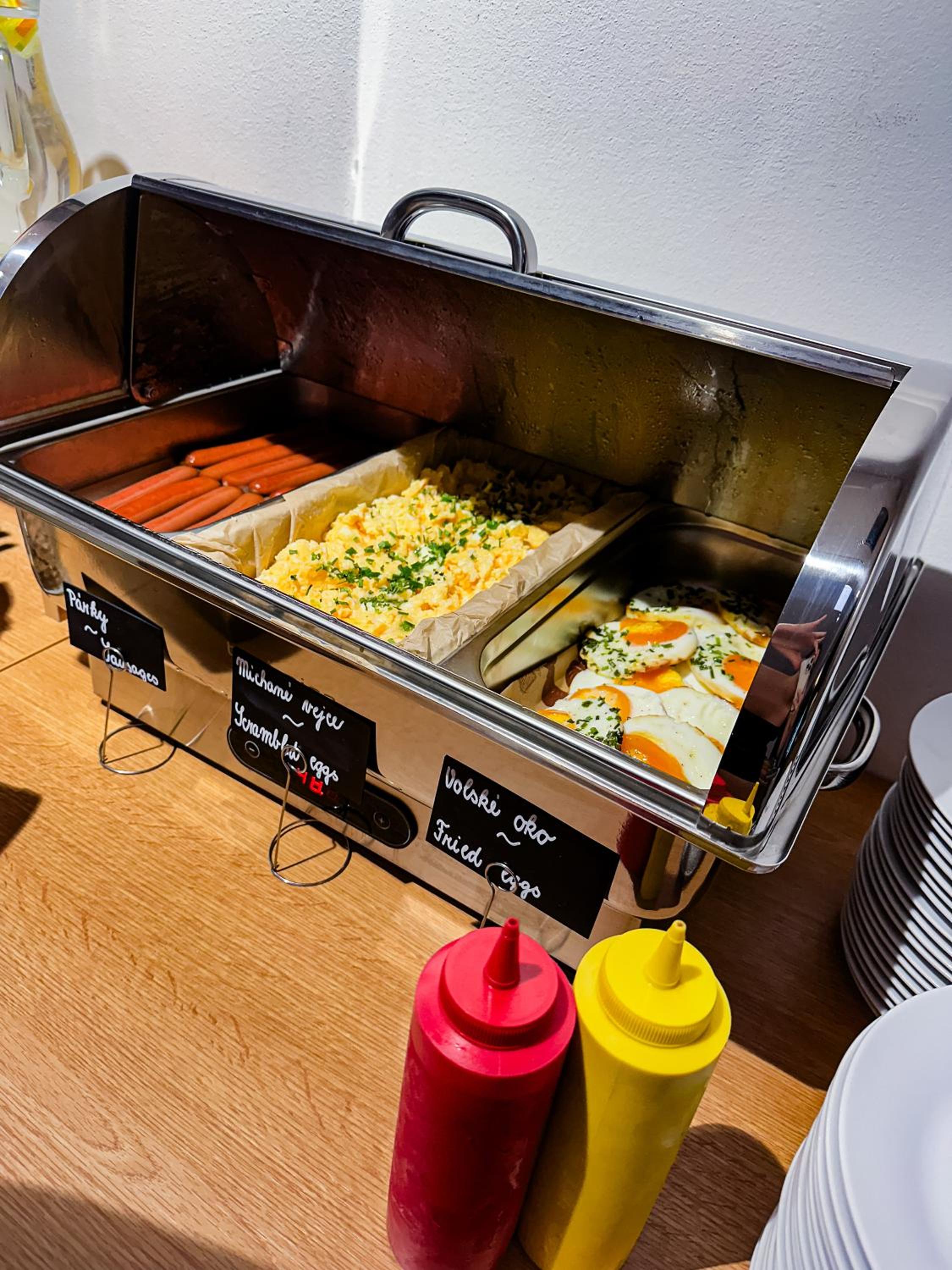 Snídaně o víkendu fajn velký výběr , v pondělí už horší výběr, ale stále docela spokojenost.