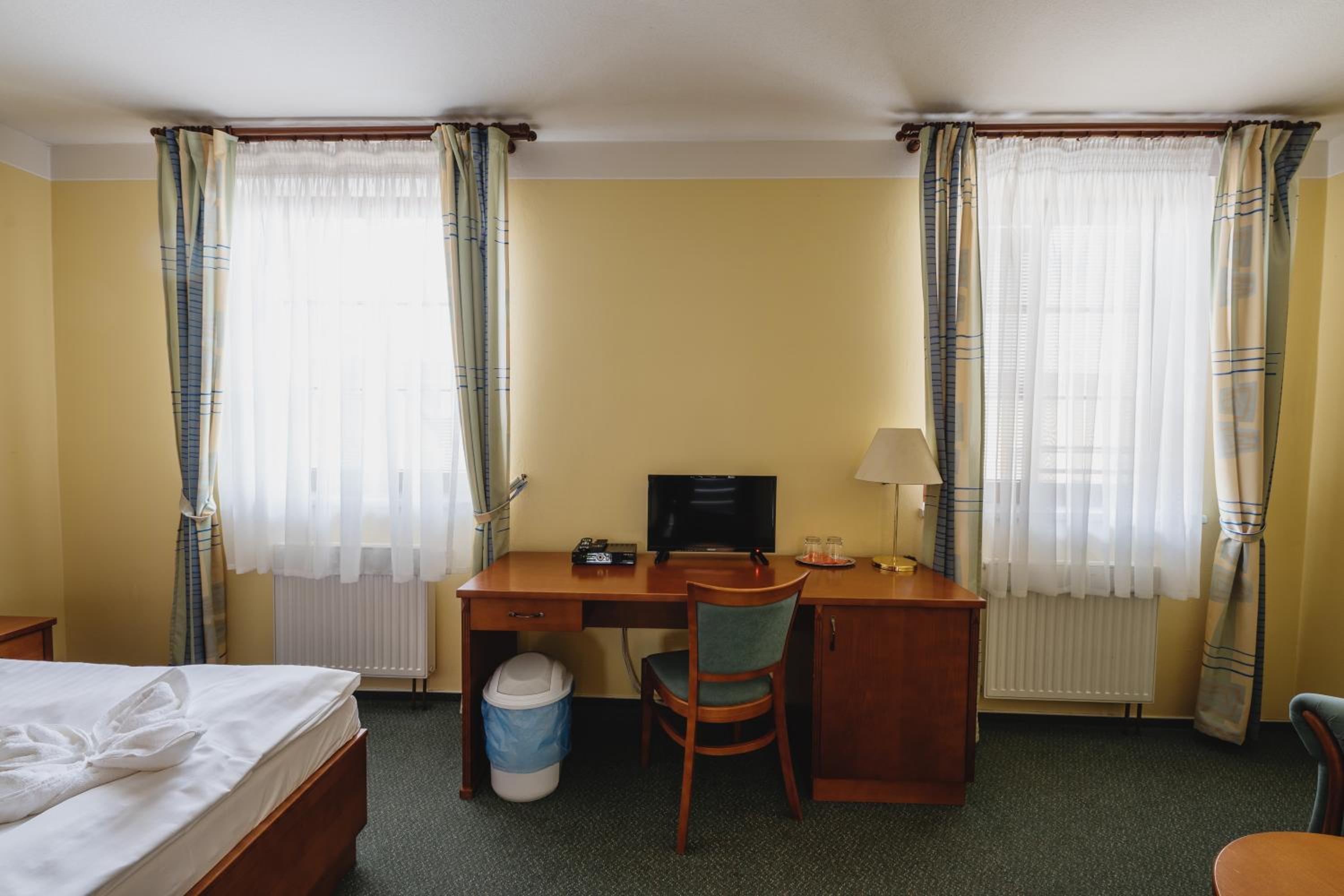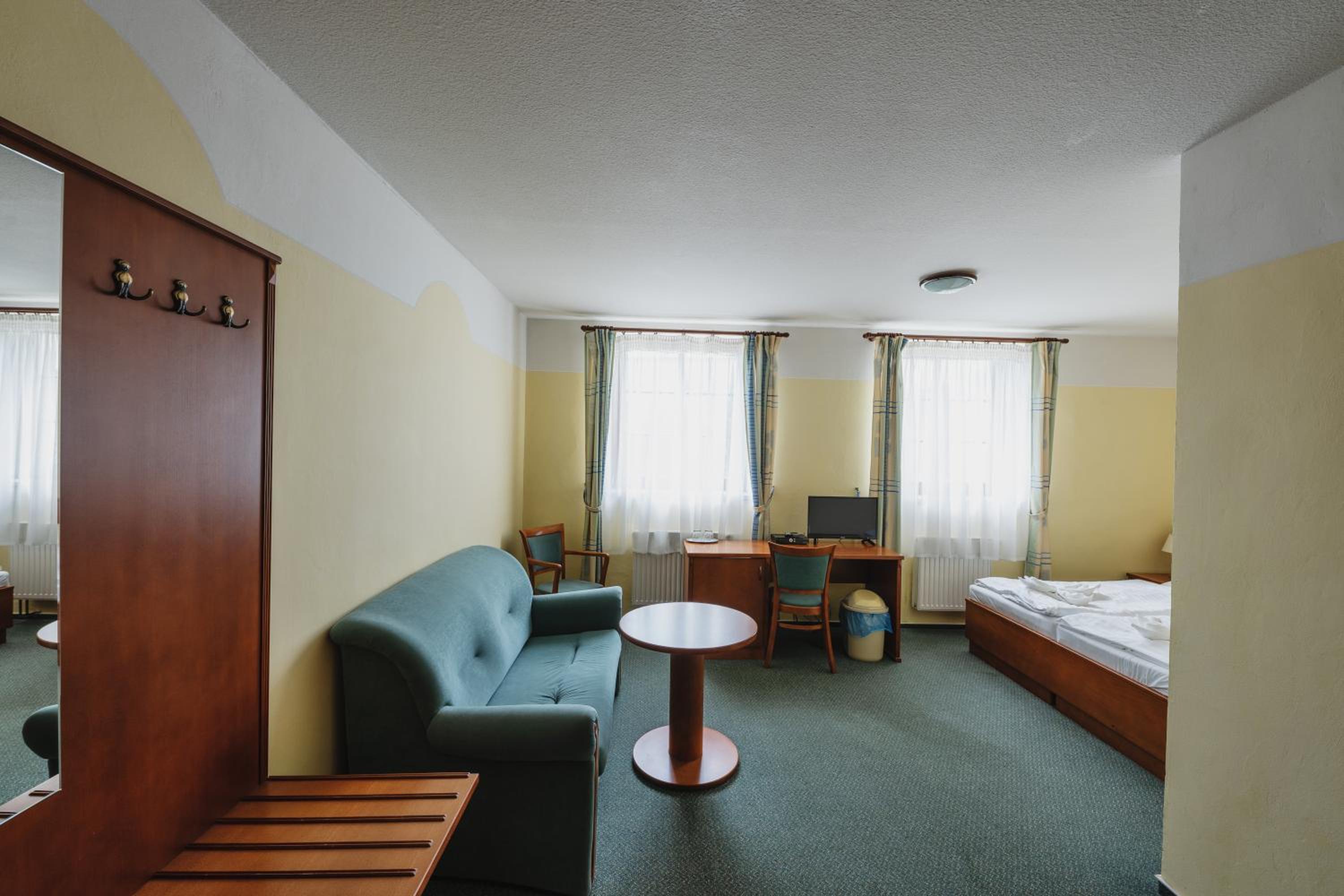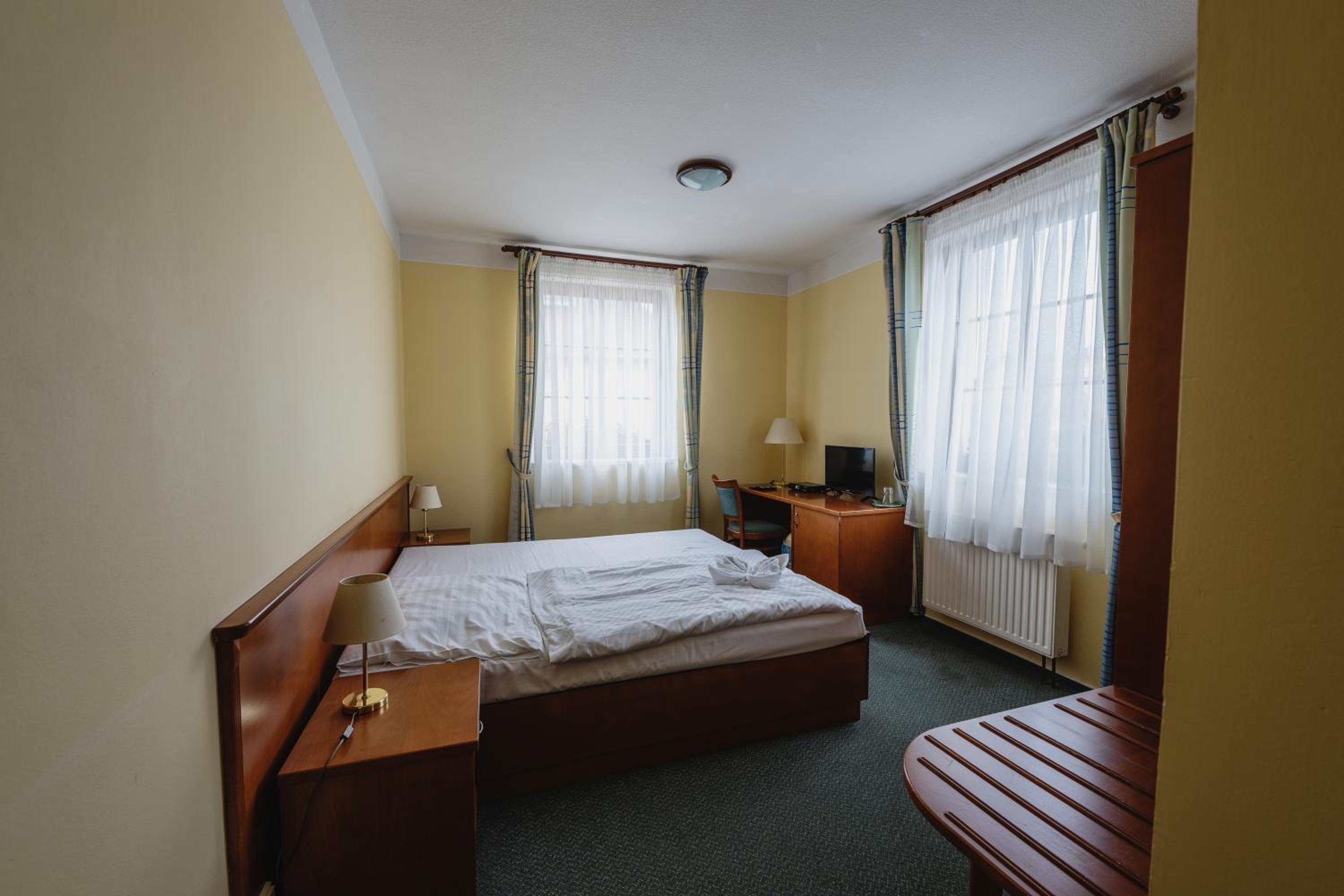 Dobrá lokalita, dostačující vybavení pokoje. Velká výhoda je vcelku levná a chutná restaurace hned v přízemí hotelu.