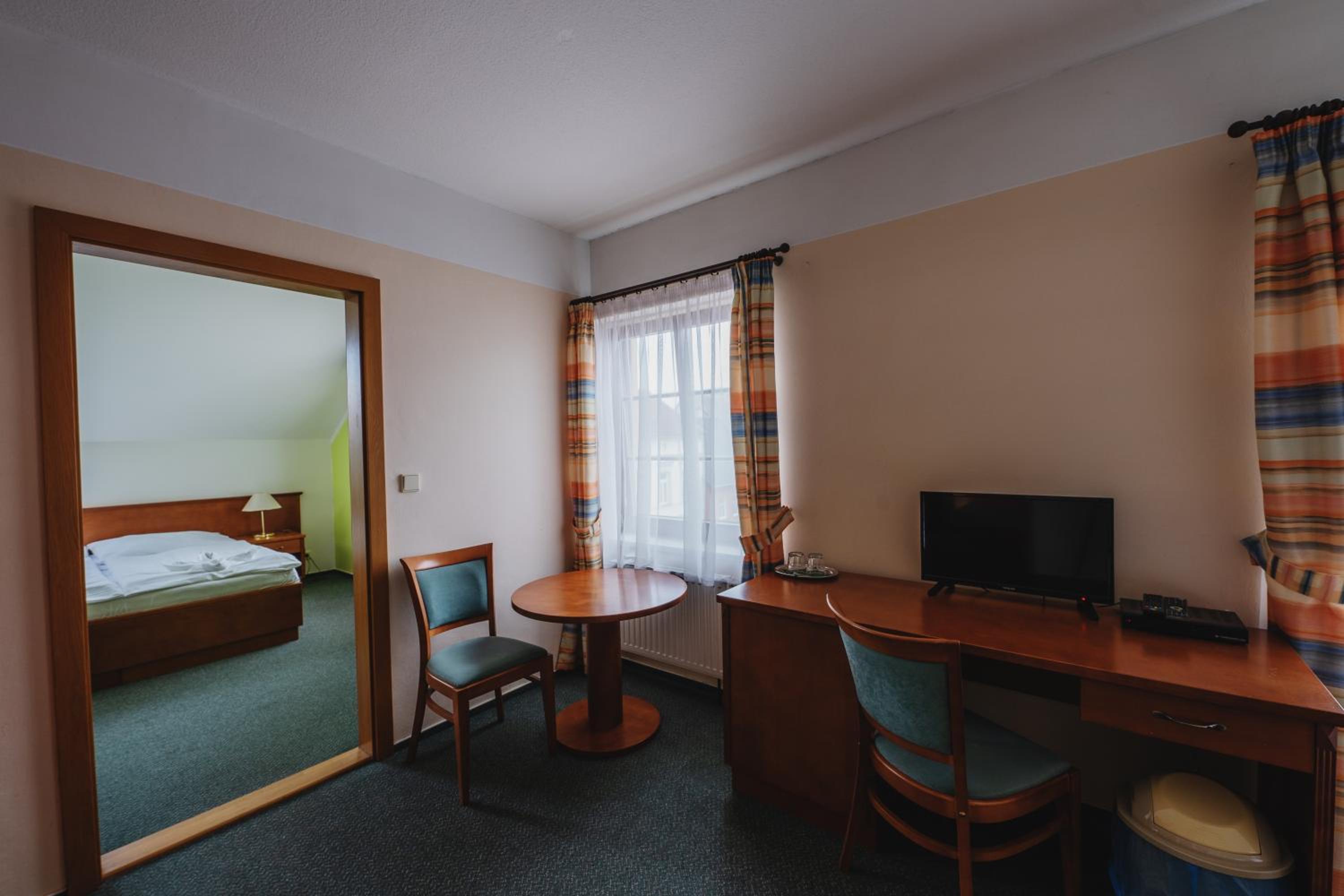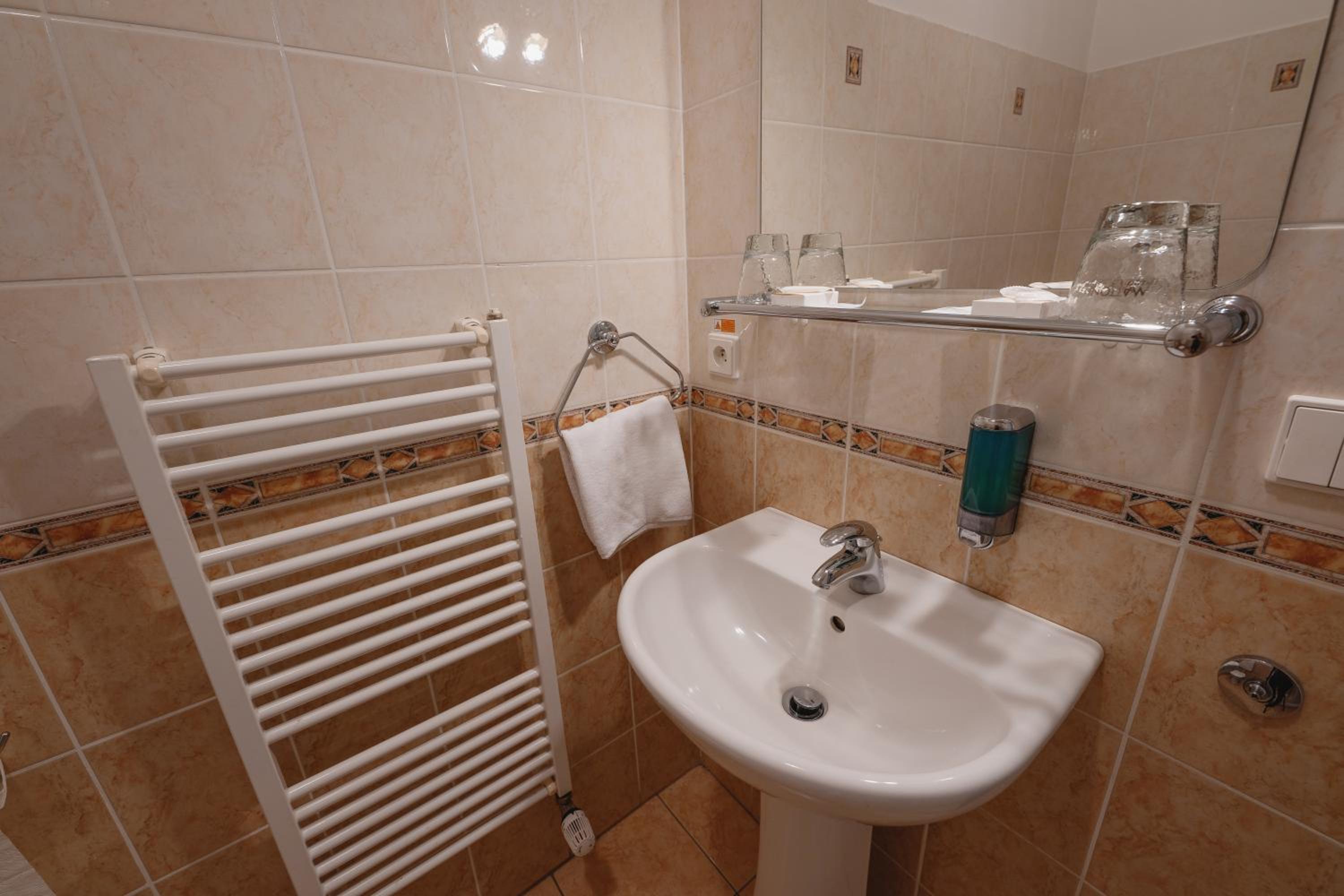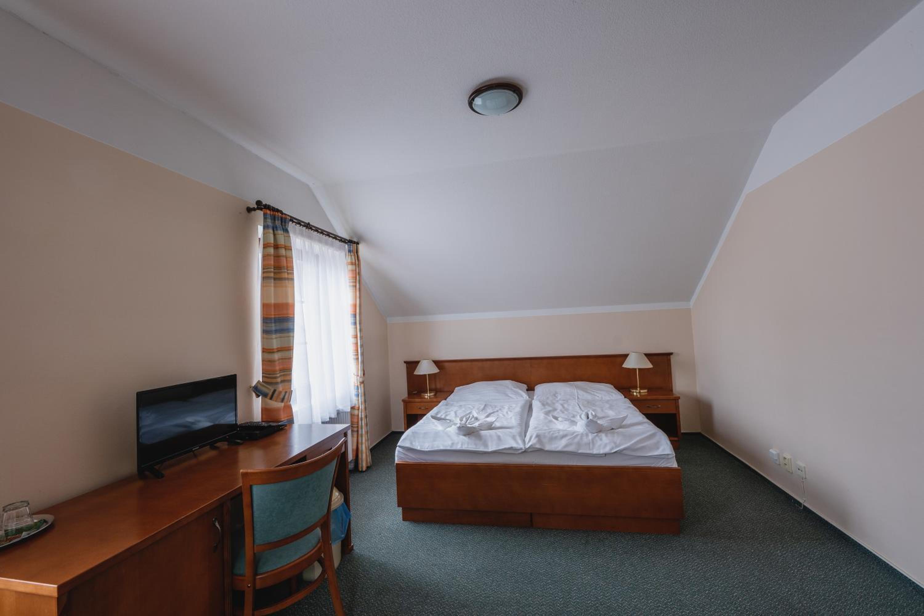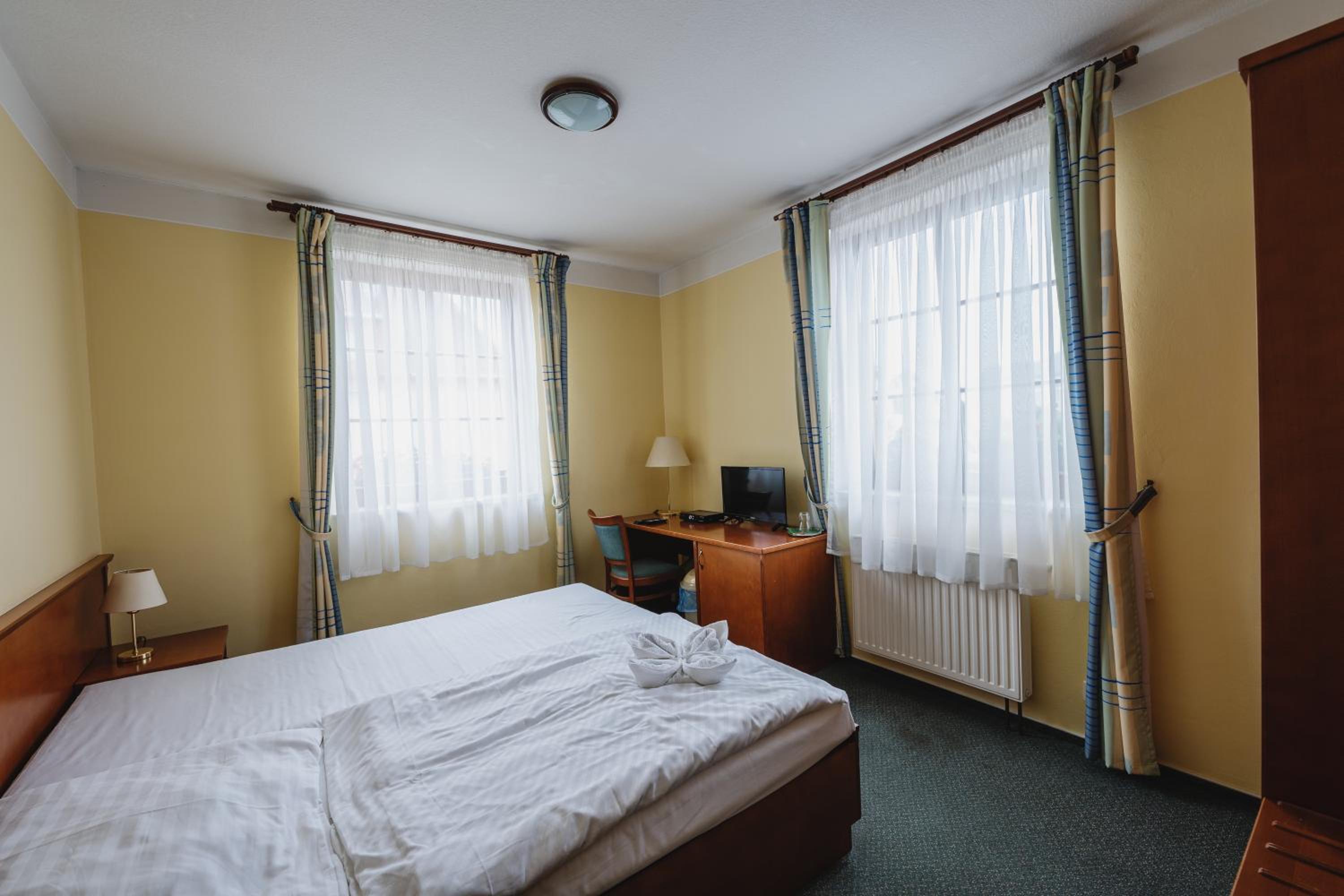 Dobrá lokalita, dostačující vybavení pokoje. Velká výhoda je vcelku levná a chutná restaurace hned v přízemí hotelu.