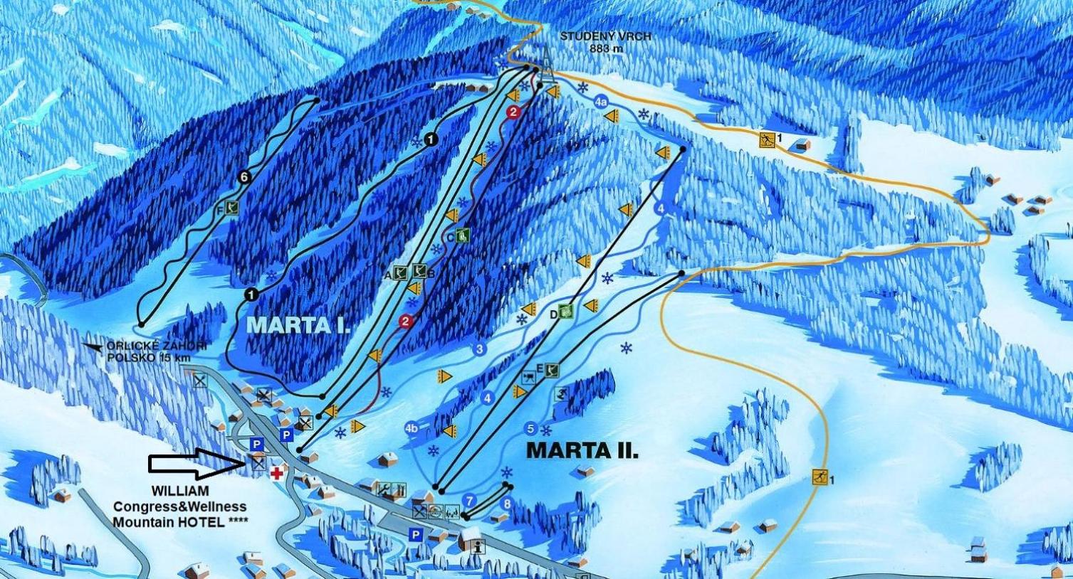 Umístění hotelu blízko sjezdovky. Blízko hotelu je Srub Karolina, kde velmi dobře vaří, kvalita jídla a servisu se nedá s hotelem William Congress & Wellness srovnat.