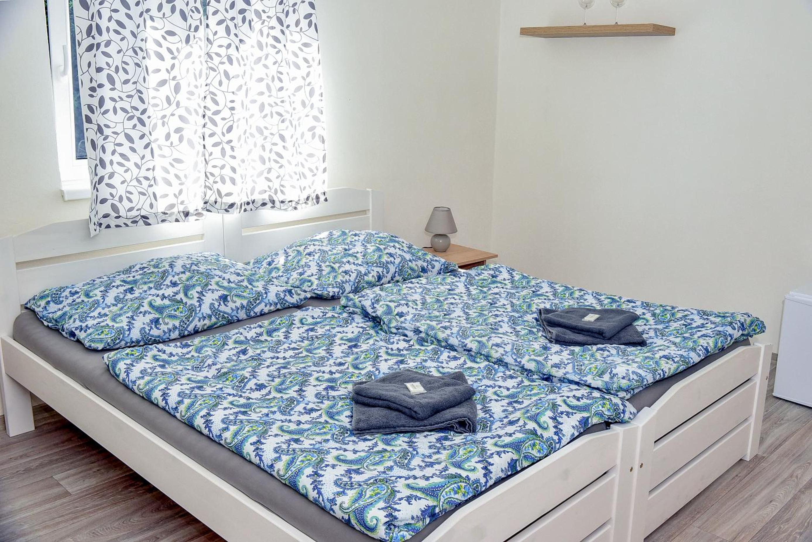 Nepohodlné postele, tvrdé, nízké matrace, ložní prádlo už dávno patří do kontejneru, malinký prostor.
