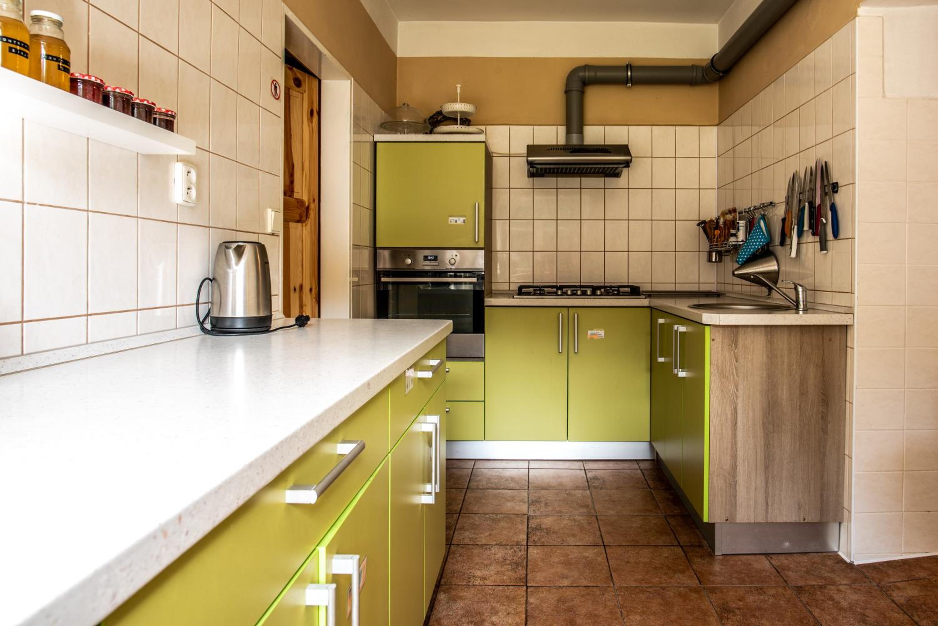Není co vytknout. Skvělá lokalita, apartmán i společná kuchyň plně vybaveny. Pro děti je k dispozici dětský koutek, kde je spousta hraček a společenských her. Prostorná zahrada s pískovištěm, se skluzavkou a my nejvíce ocenili plochu s brankami na kopaní